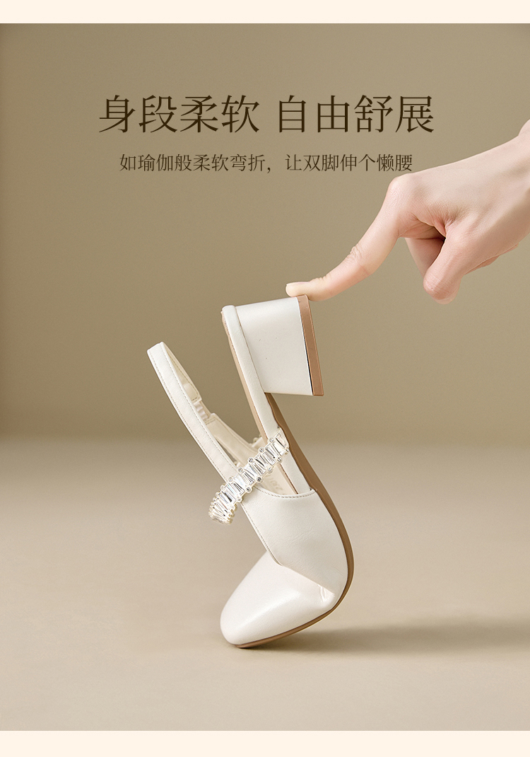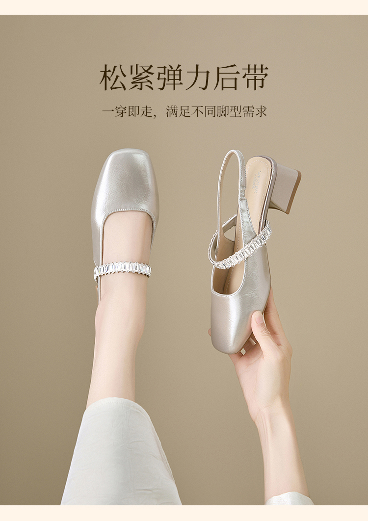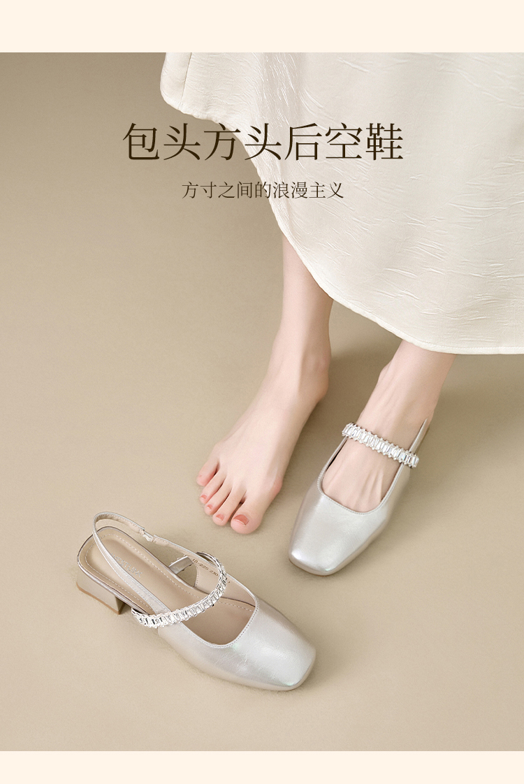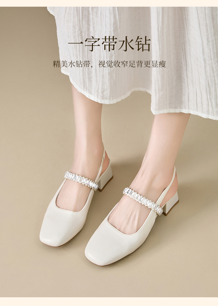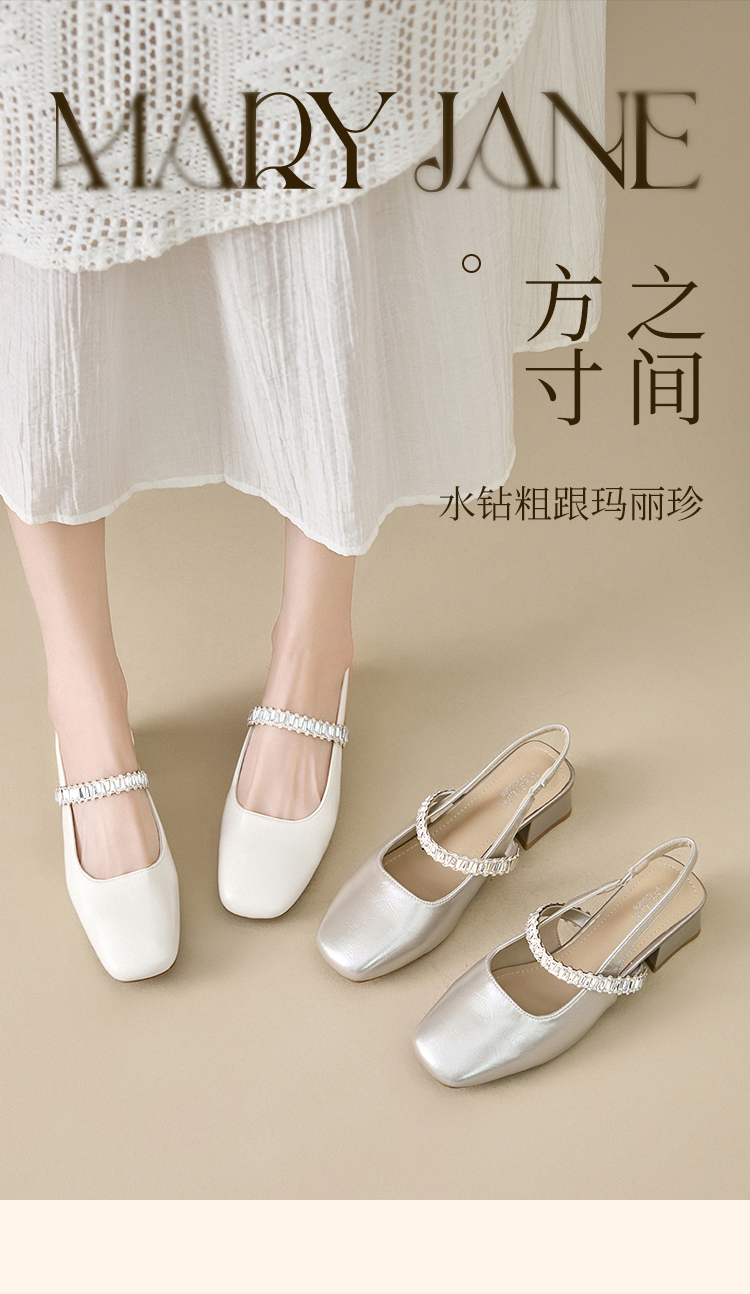 西遇法式玛丽珍鞋女新款夏秋季水钻包头凉鞋后空中跟粗跟单鞋V1456896
