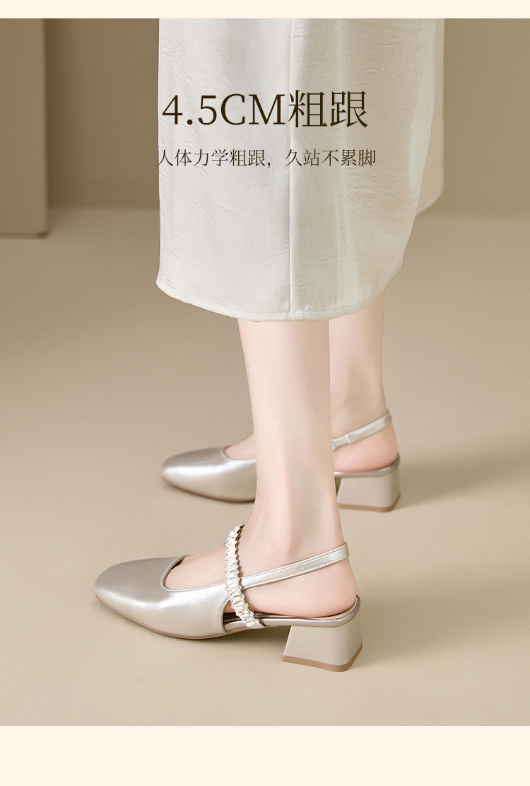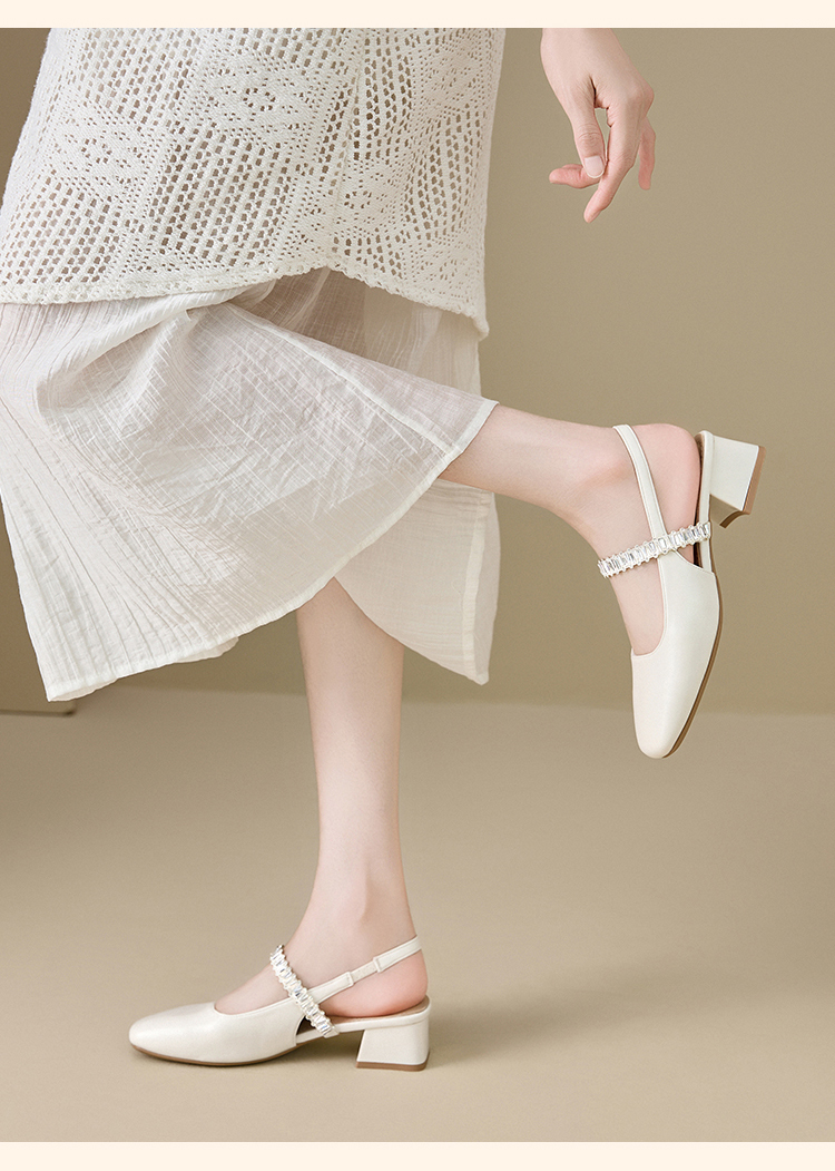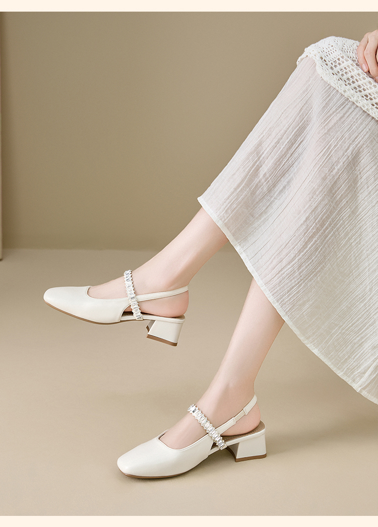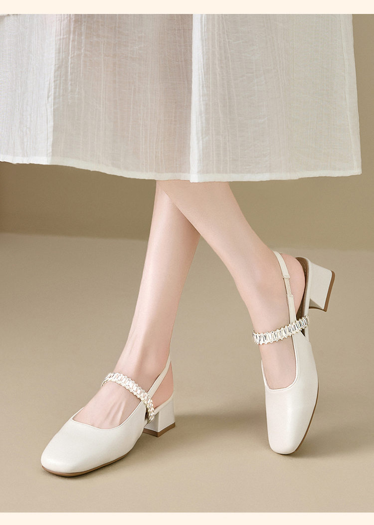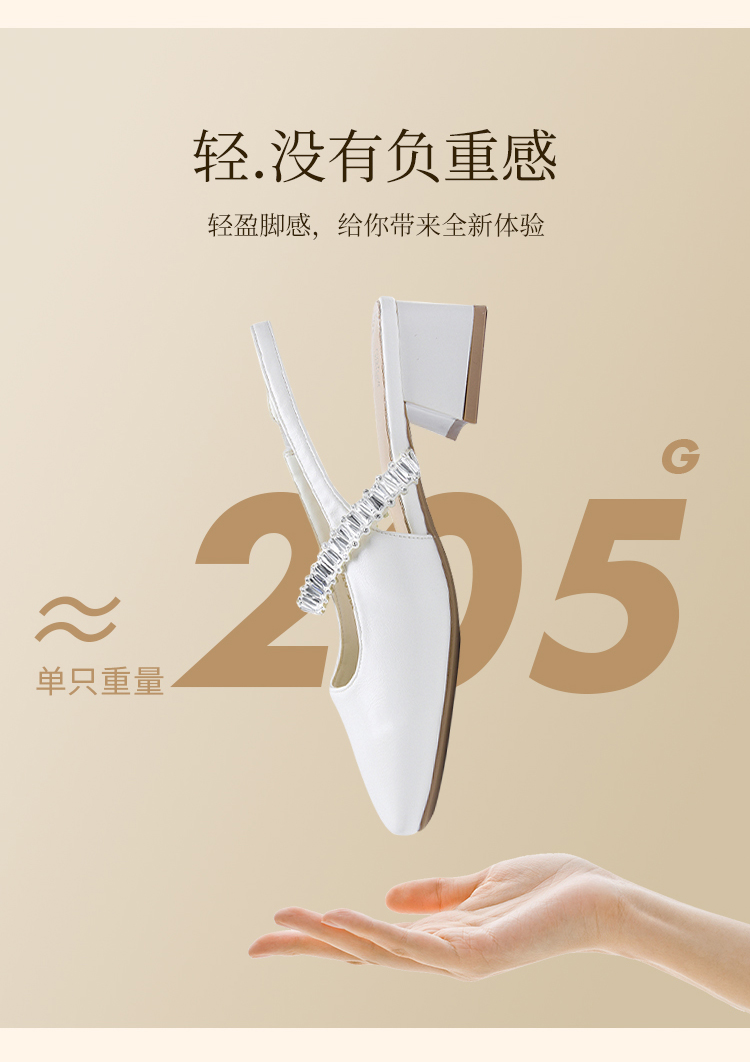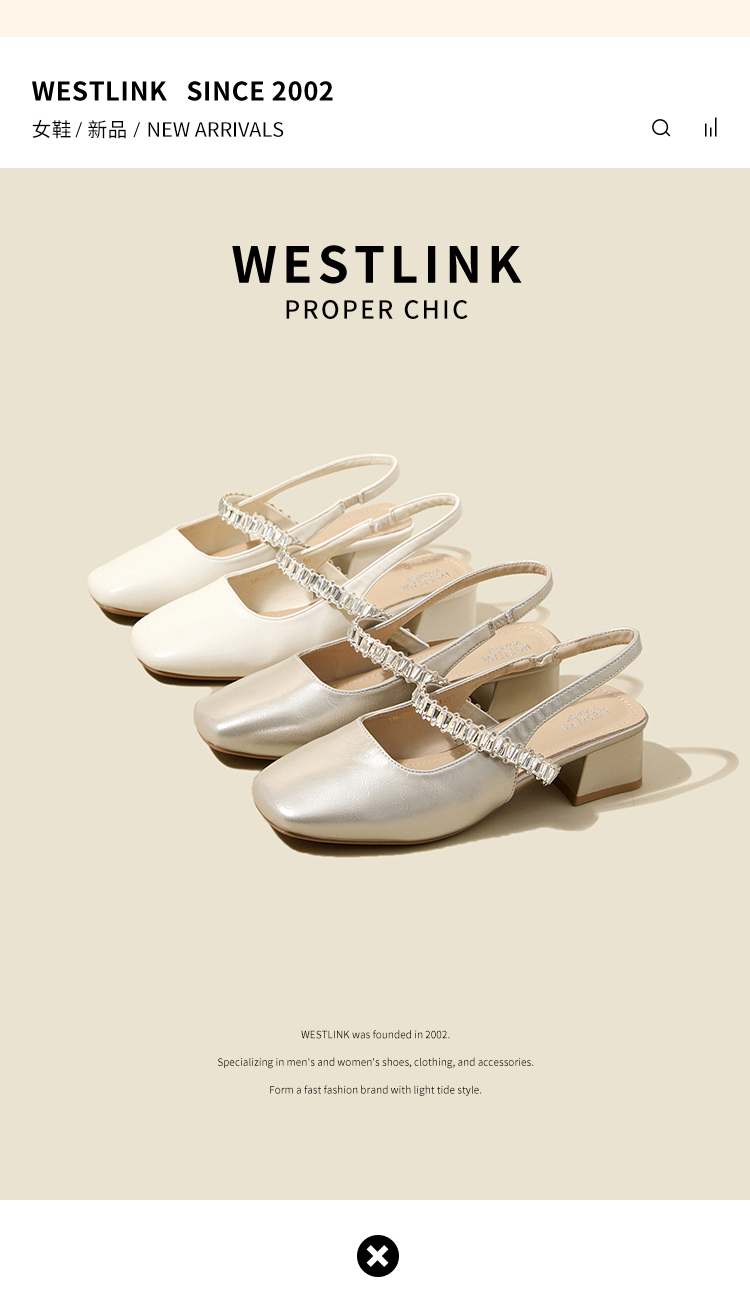 西遇法式玛丽珍鞋女新款夏秋季水钻包头凉鞋后空中跟粗跟单鞋V1456896