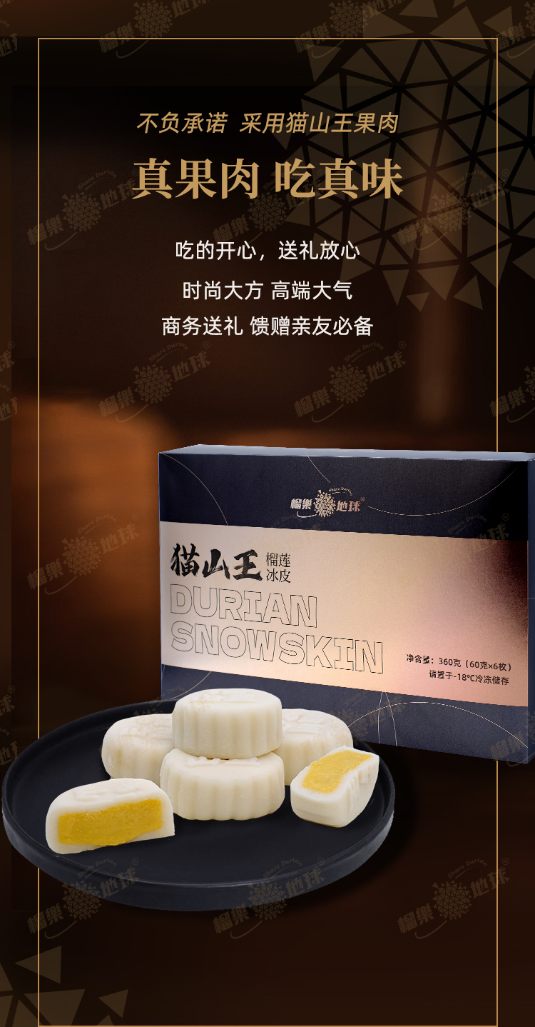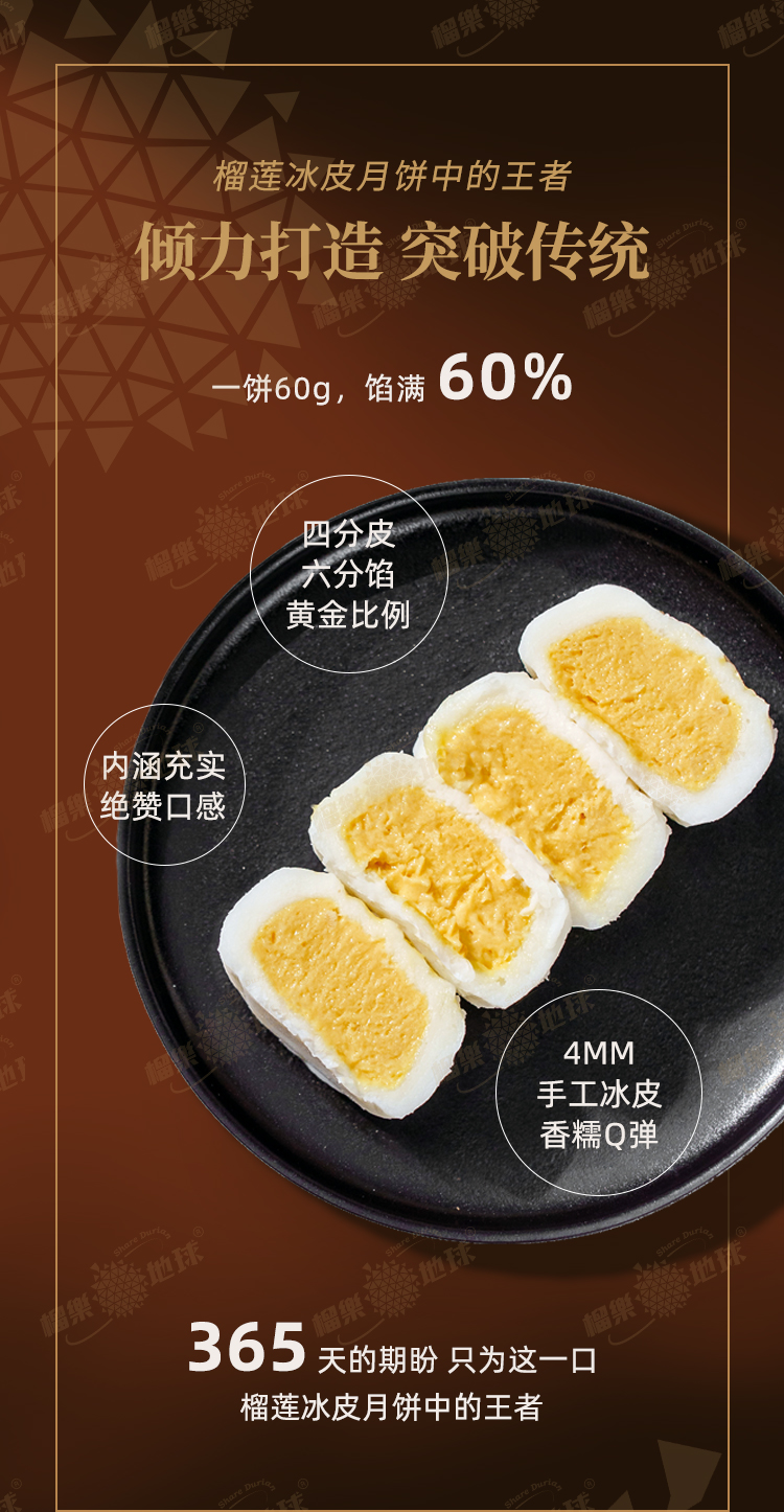 榴樂地球 | D197猫山王榴莲冰皮月饼360g/6粒装