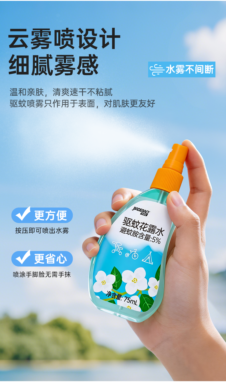 夏日炎炎,蚊虫肆虐?别怕,有这款花露水来救你!它就像你的私人驱蚊小卫士,轻轻一喷,有效驱蚊,让你免受蚊虫叮咬的困扰。温和配方,清爽不刺激,给你一整个夏天的安心守护。无论是户外游玩还是居家休息,带上它,尽情享受无蚊夏日!