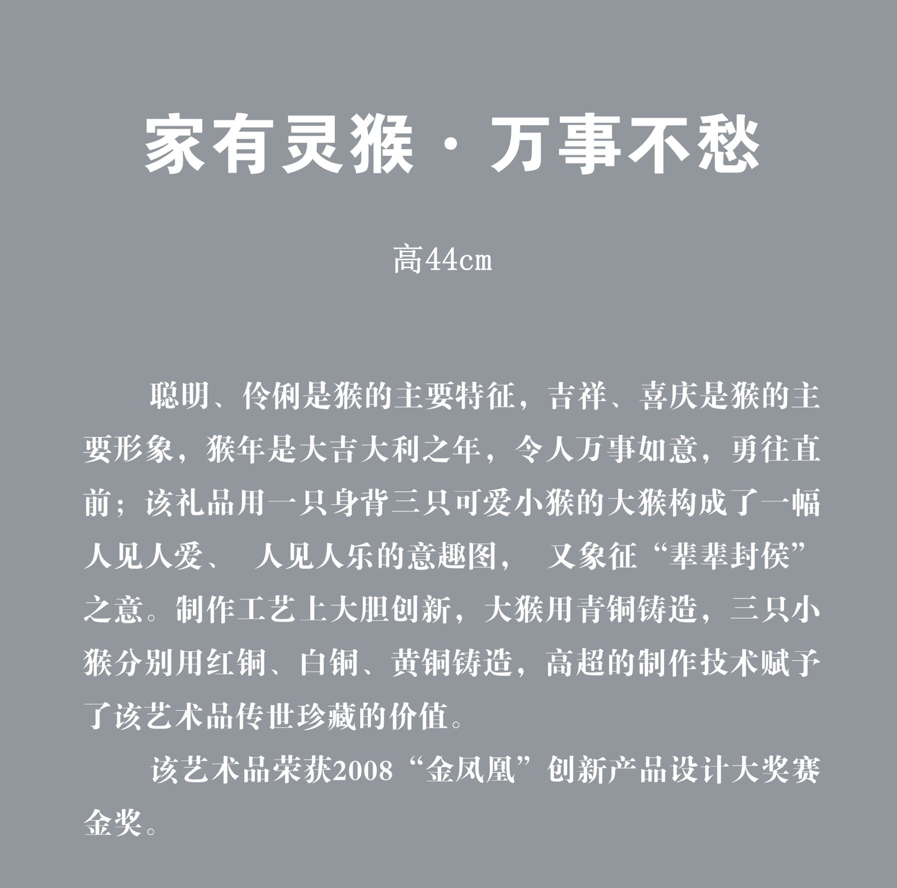 宇达青铜摆件 十二生肖猴《家有灵猴 万事不愁1#》创意装饰 家居工艺摆件 高44cm
