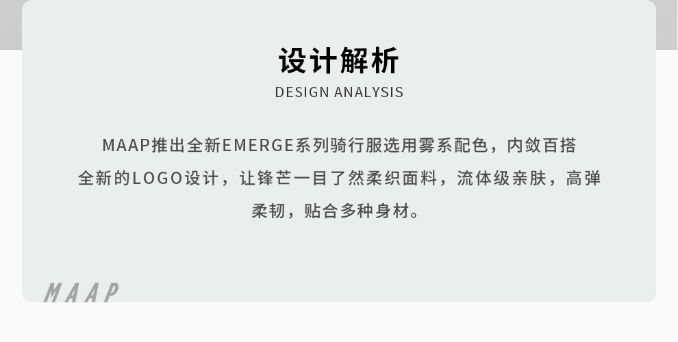 - MAAP作为澳洲功能性骑行服,其出色的时尚设计元素为骑行生活增添色彩。MAAP在为专业车手提升性能表现方面也毫不妥协。
