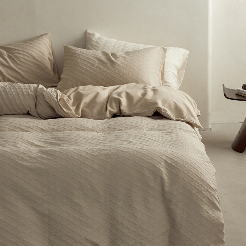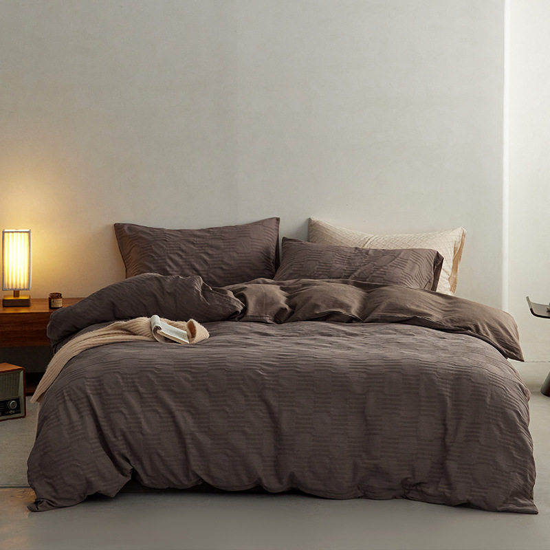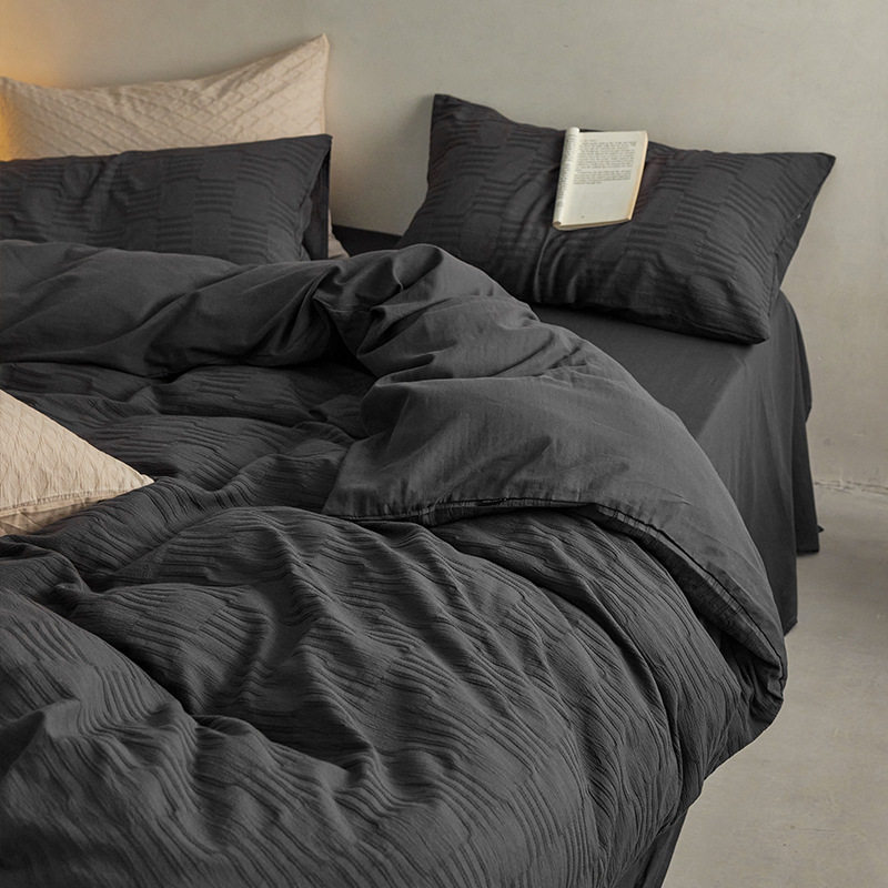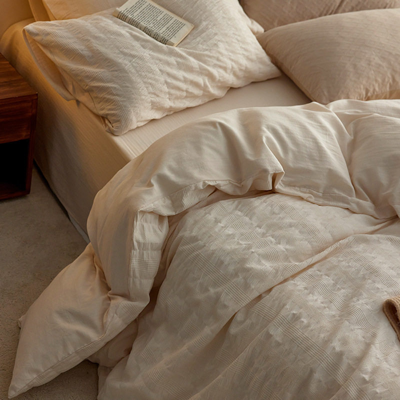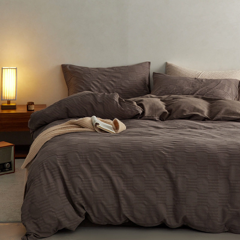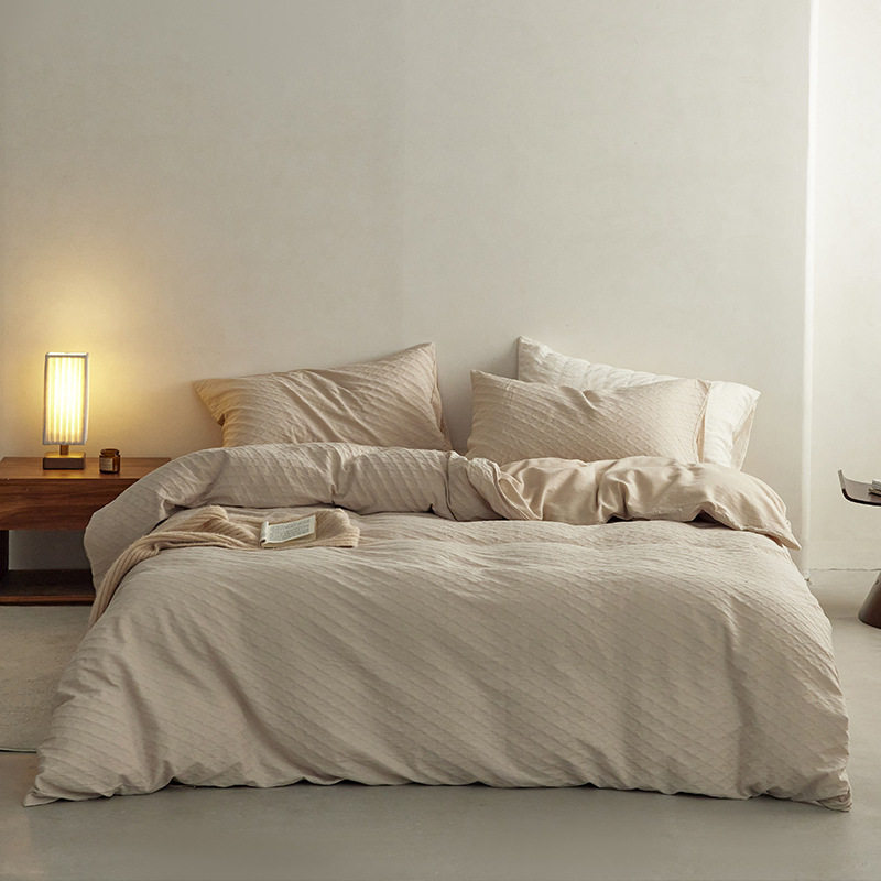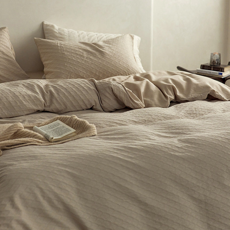 日式无印西川全棉提花水洗四件套良品纯色柔软亲肤床品套件裸睡