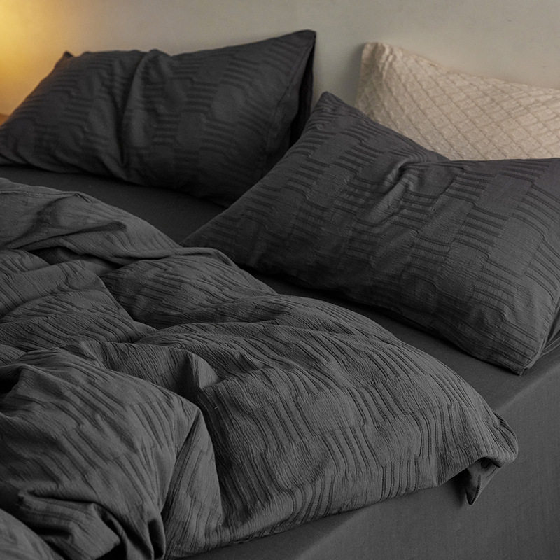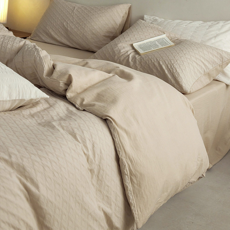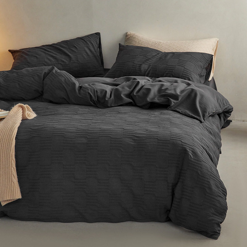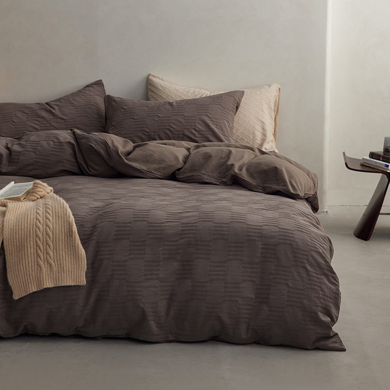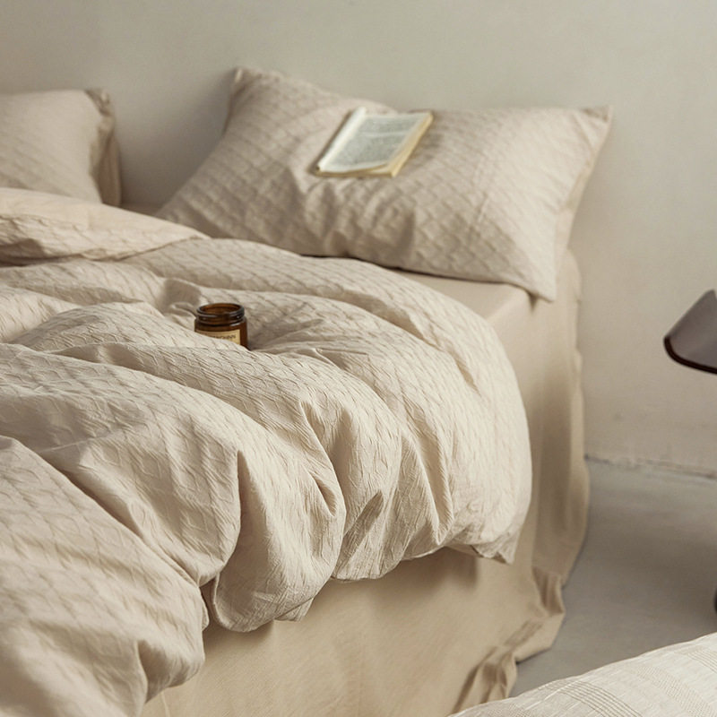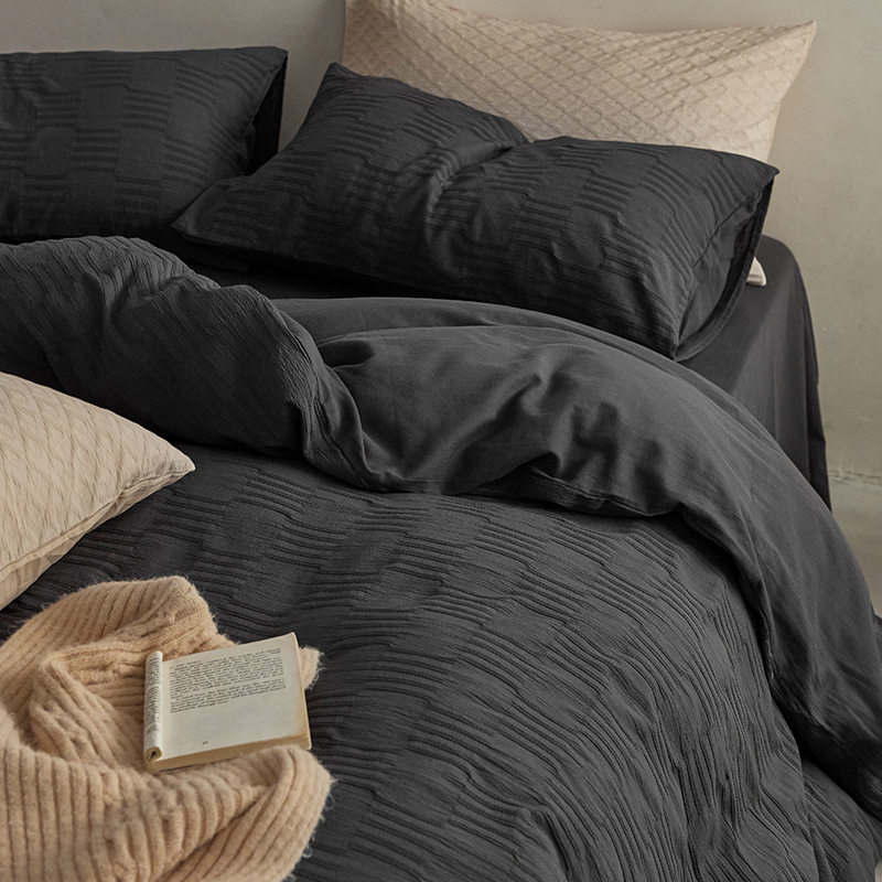 日式无印西川全棉提花水洗四件套良品纯色柔软亲肤床品套件裸睡