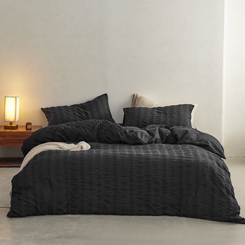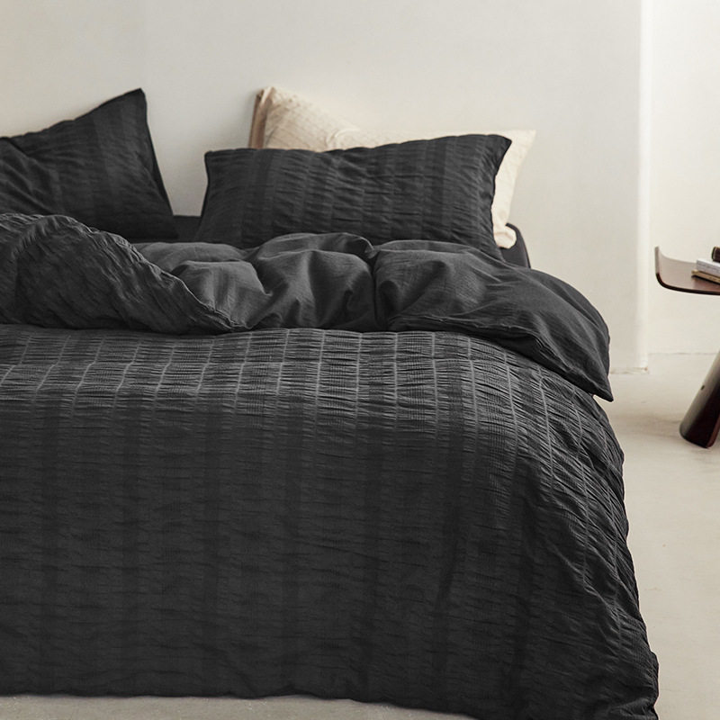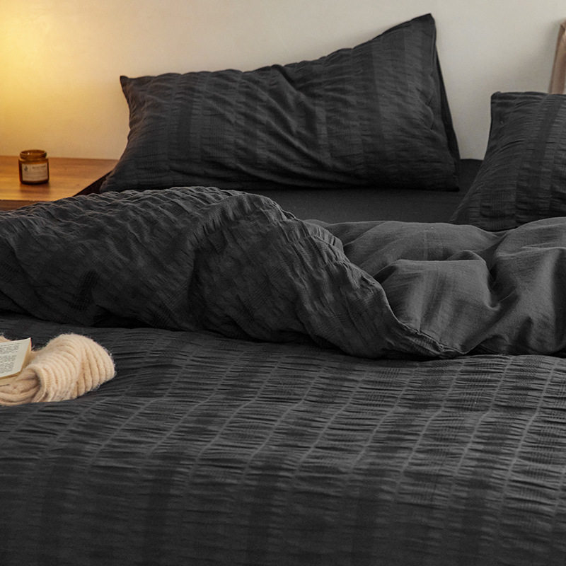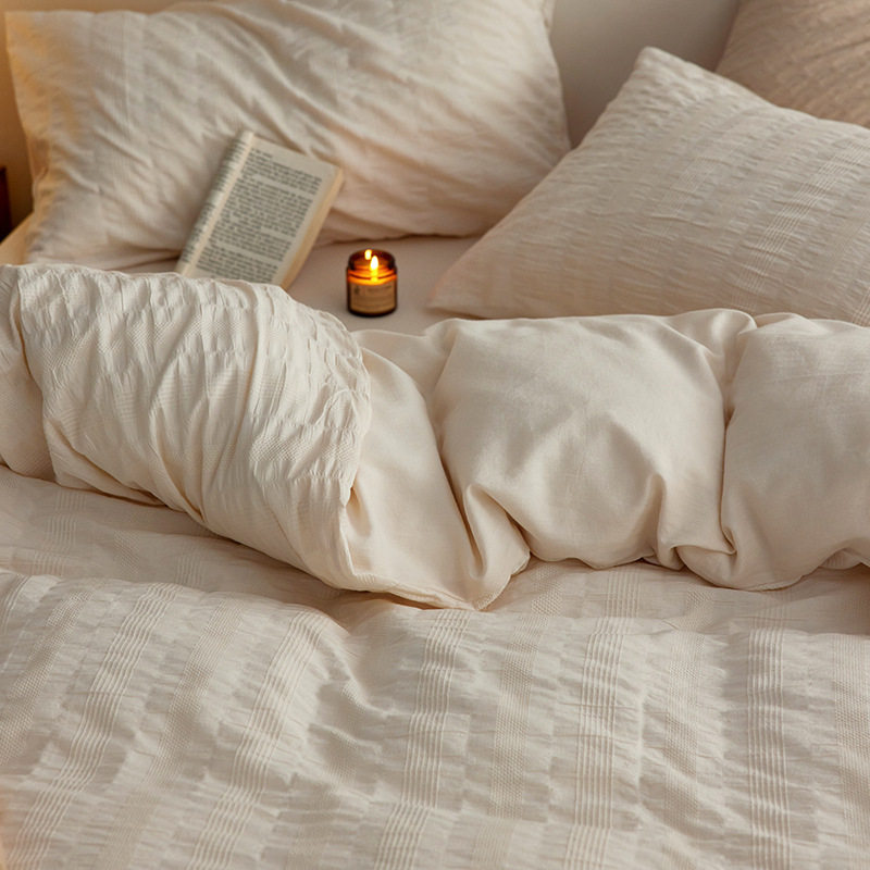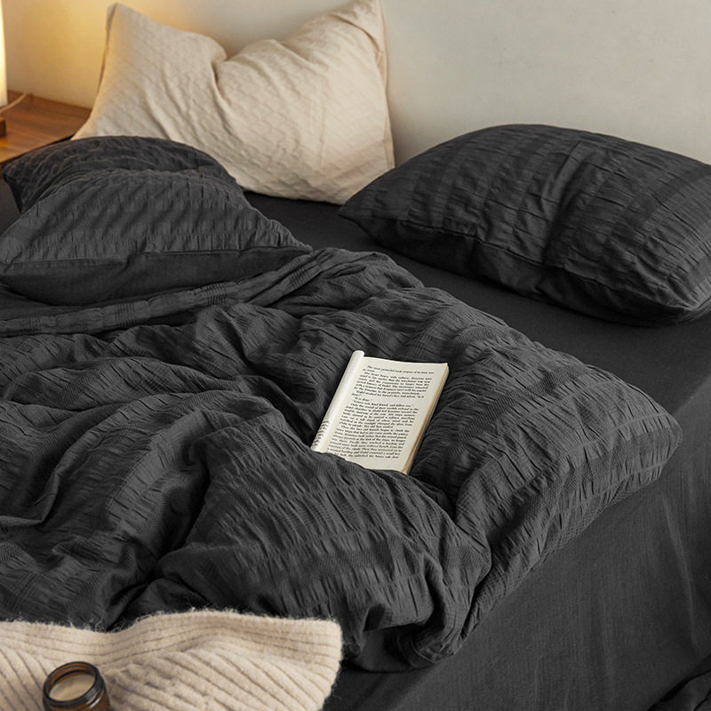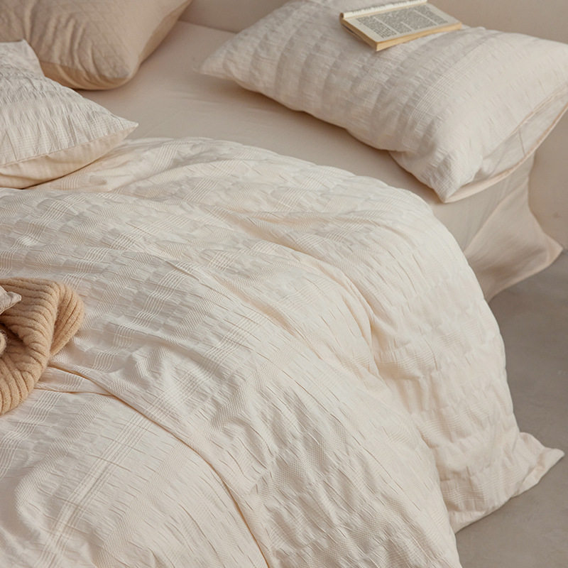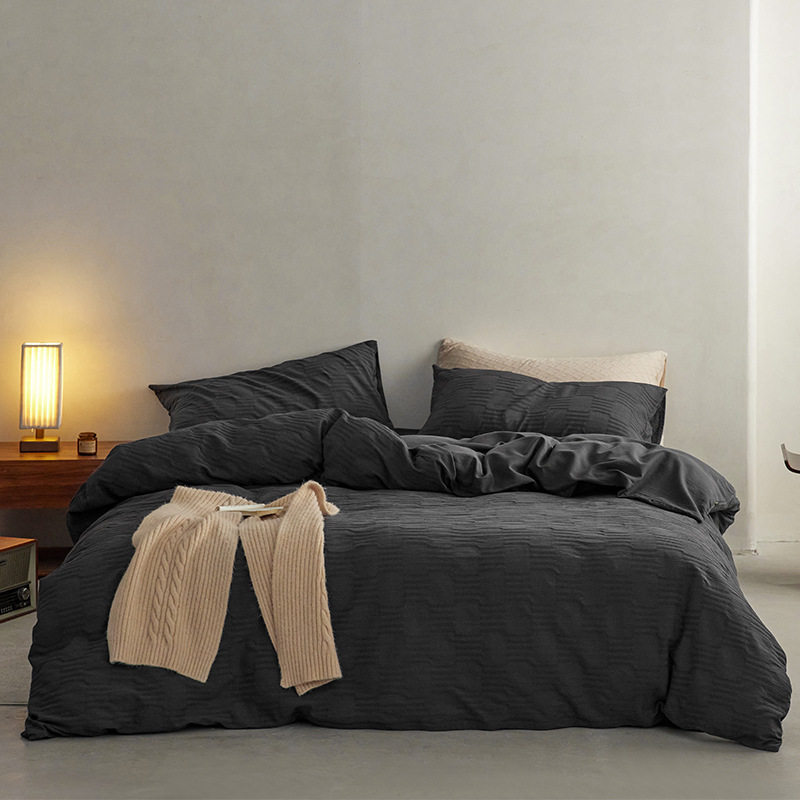 日式无印西川全棉提花水洗四件套良品纯色柔软亲肤床品套件裸睡