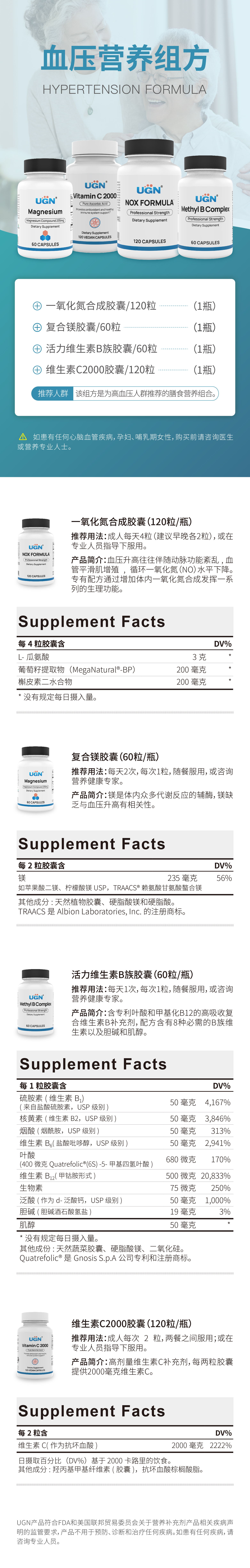 UGN血压营养组方×1个月(一氧化氮合成胶囊*1瓶、复合镁*1瓶、活力维生素B*1瓶、维生素C胶囊*1瓶)