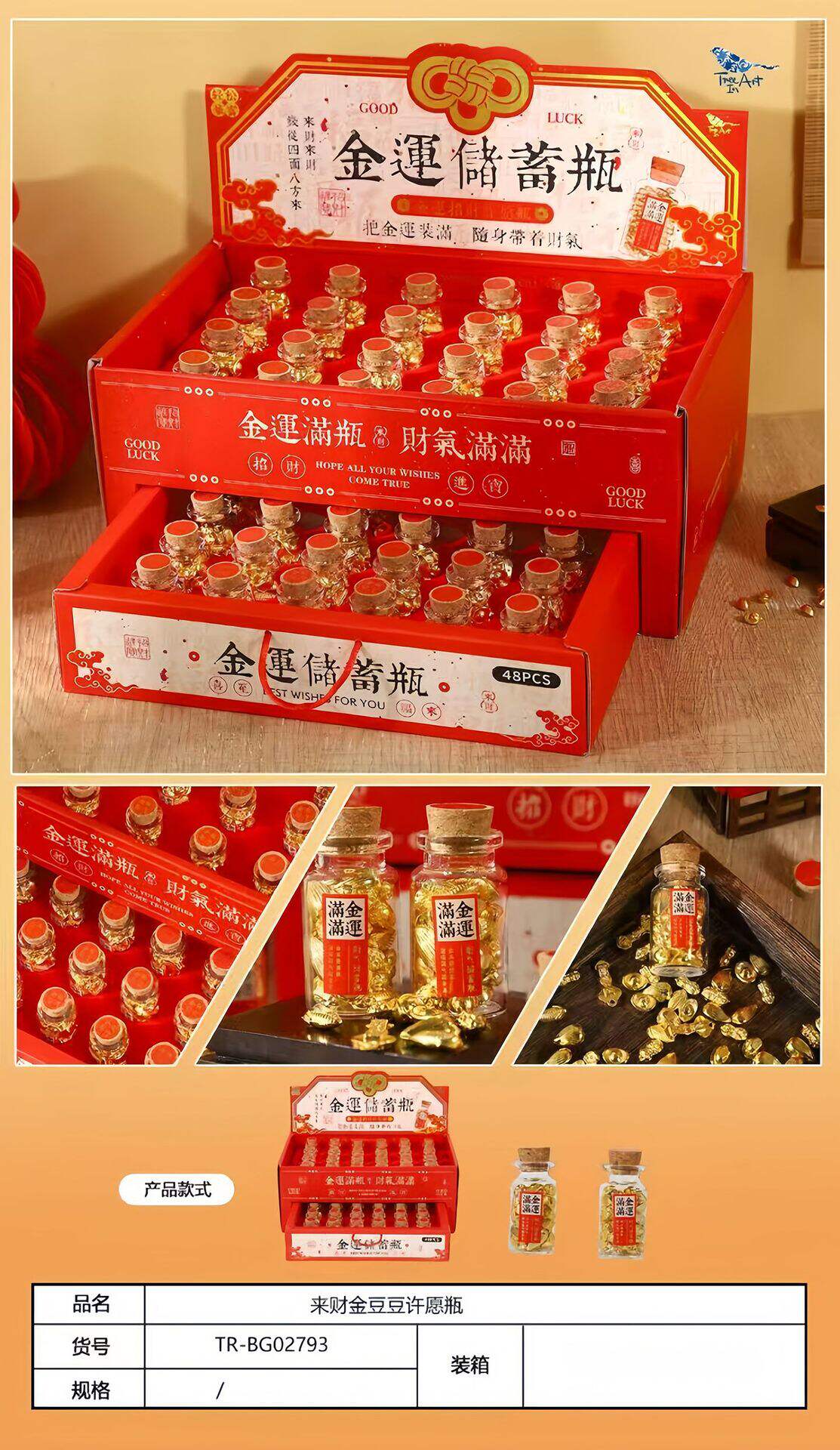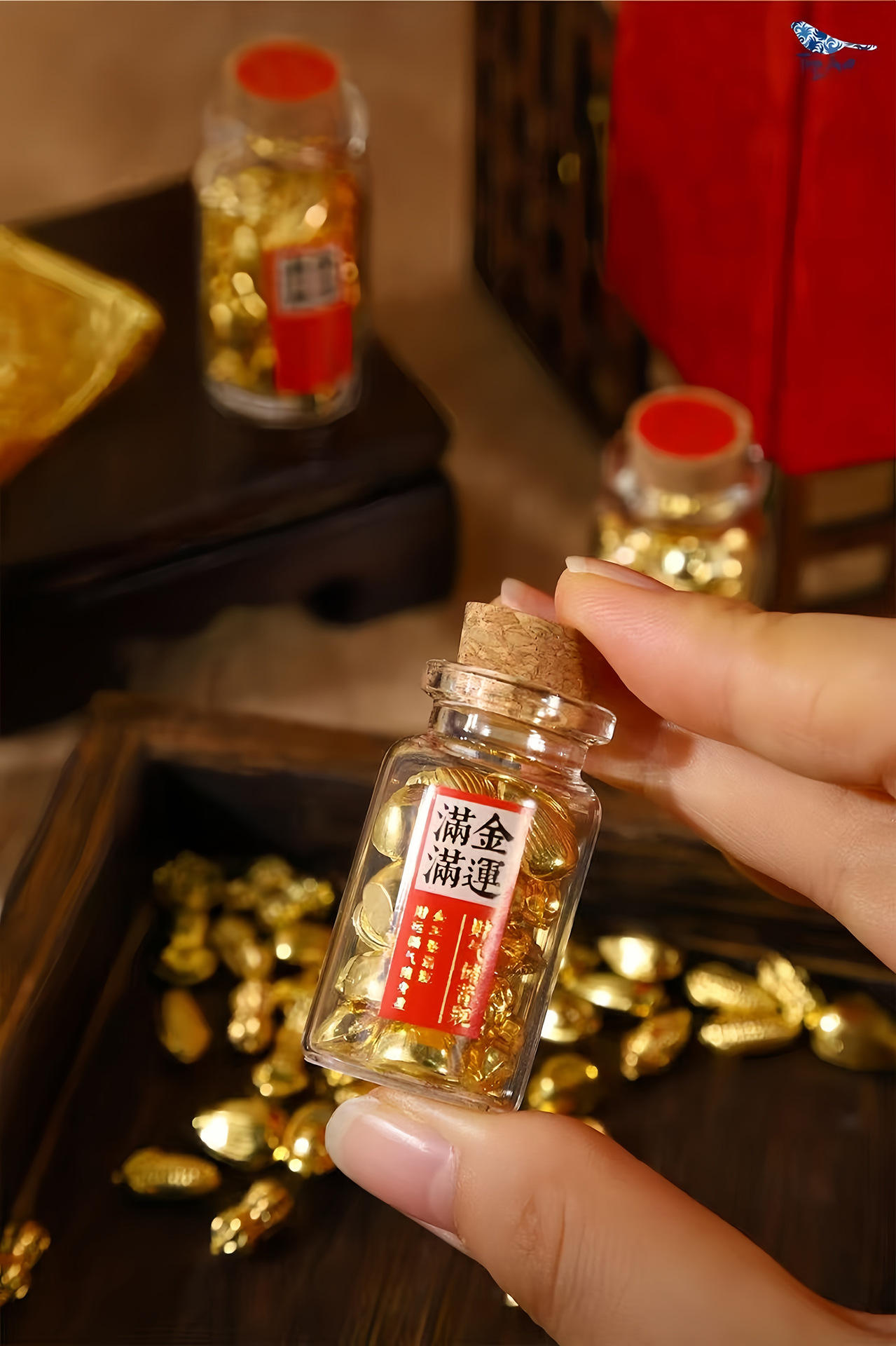 青壹坊来财金豆豆许愿瓶黄金幸运瓶新年礼物装饰桌面小摆件漂流瓶(混装1瓶装)