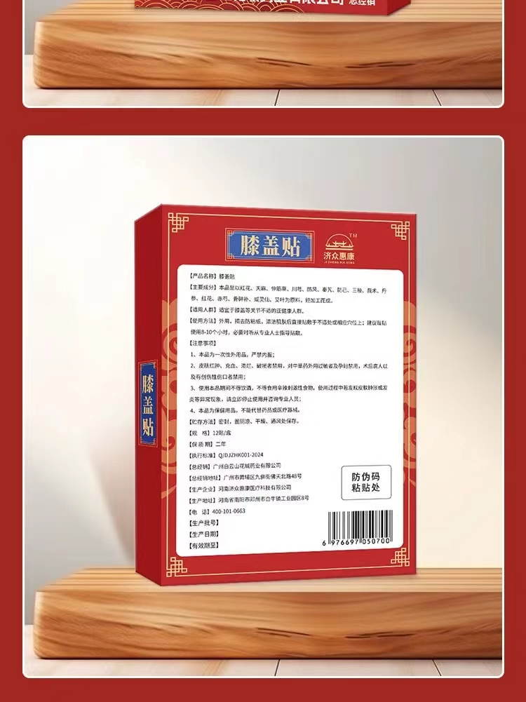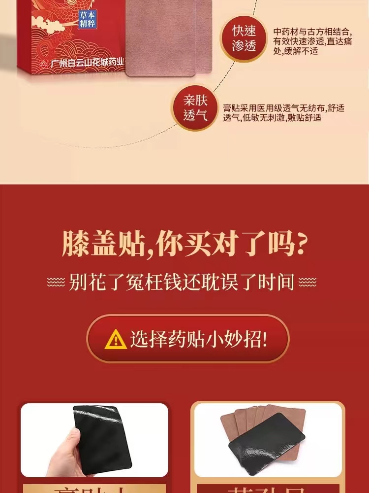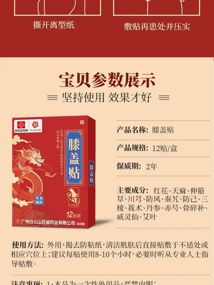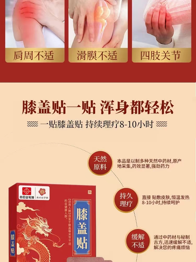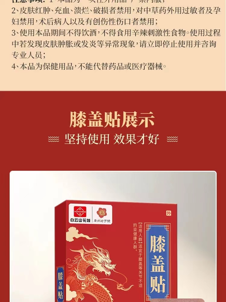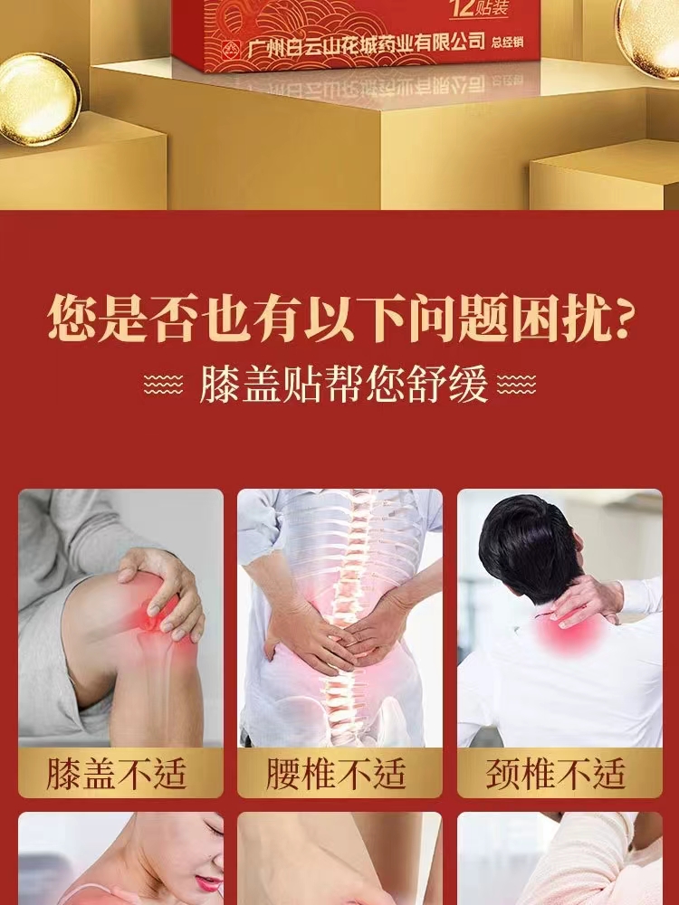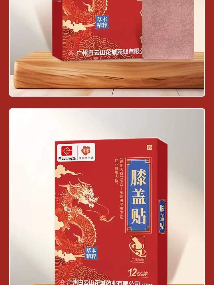 膝盖贴 白云山花城膝盖贴关节疼痛贴缓解膝关节不适艾草膝盖贴