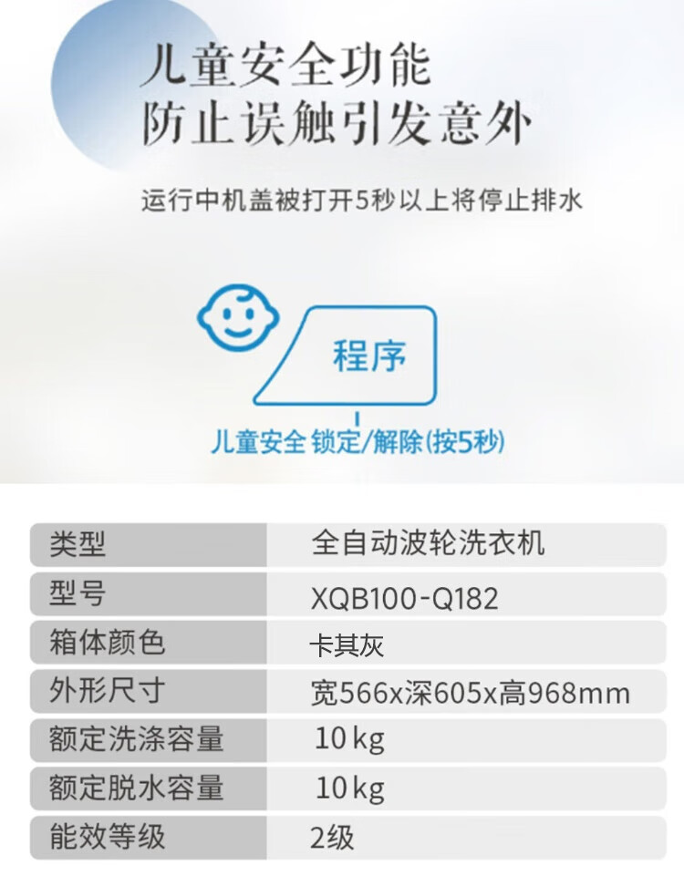 松下10KG全自动波轮洗衣机 双重线屑过滤 宽瀑布水流 XQB100-Q182 清乐净系列 深灰色