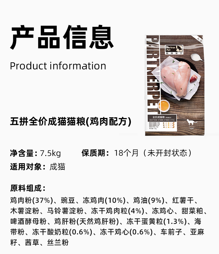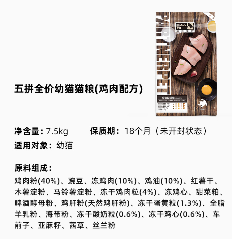 帕特【五拼系列】猫粮 1.5kg/7.5kg/袋