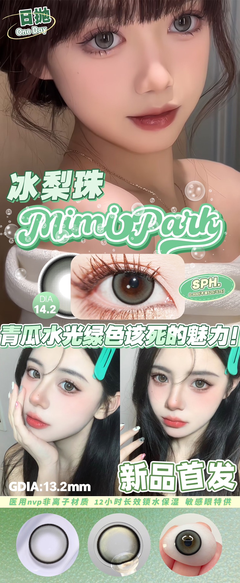 MIMIPARK 冰梨珠 日抛 十片 14.2mm 参考着色 13.2mm 基弧 8.5 含水 50% 新锐国货