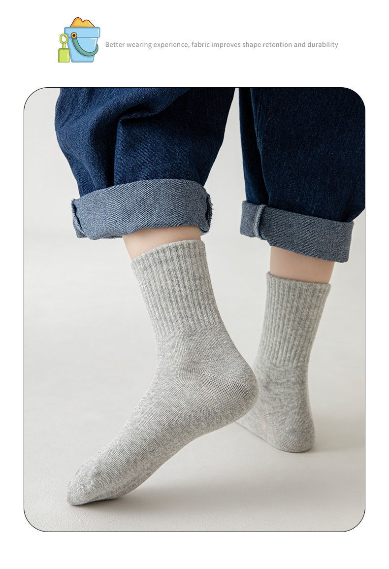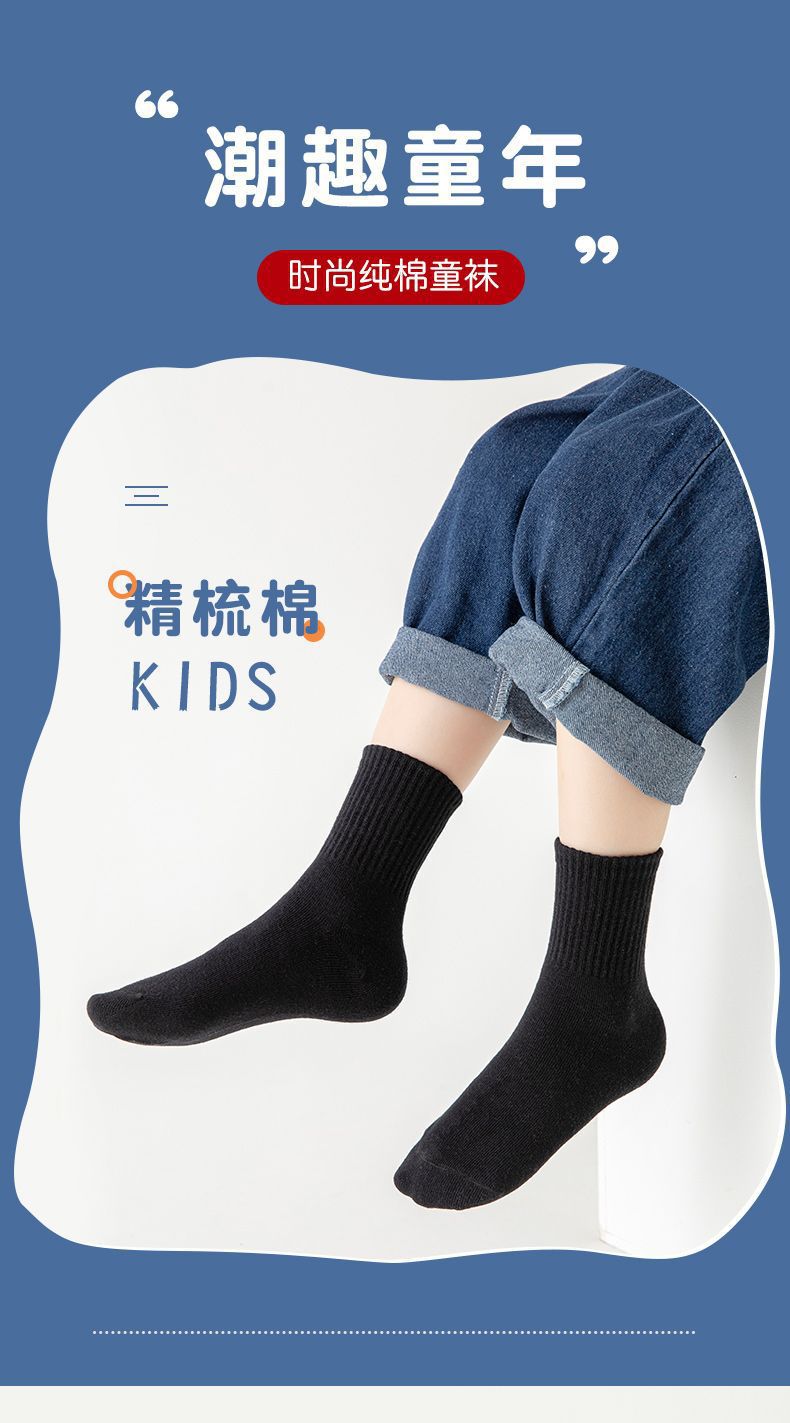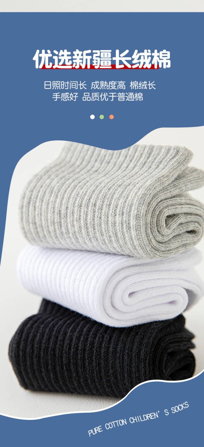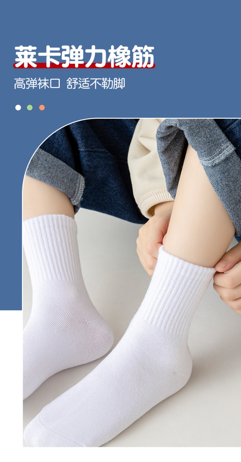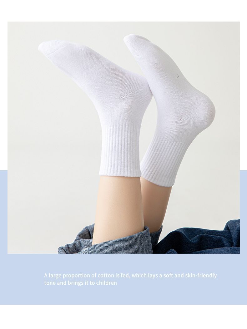 【秒!5对更划算!】儿童白色袜子 男童中筒秋季薄款 女孩运动大童中小学生袜 中童耐脏袜