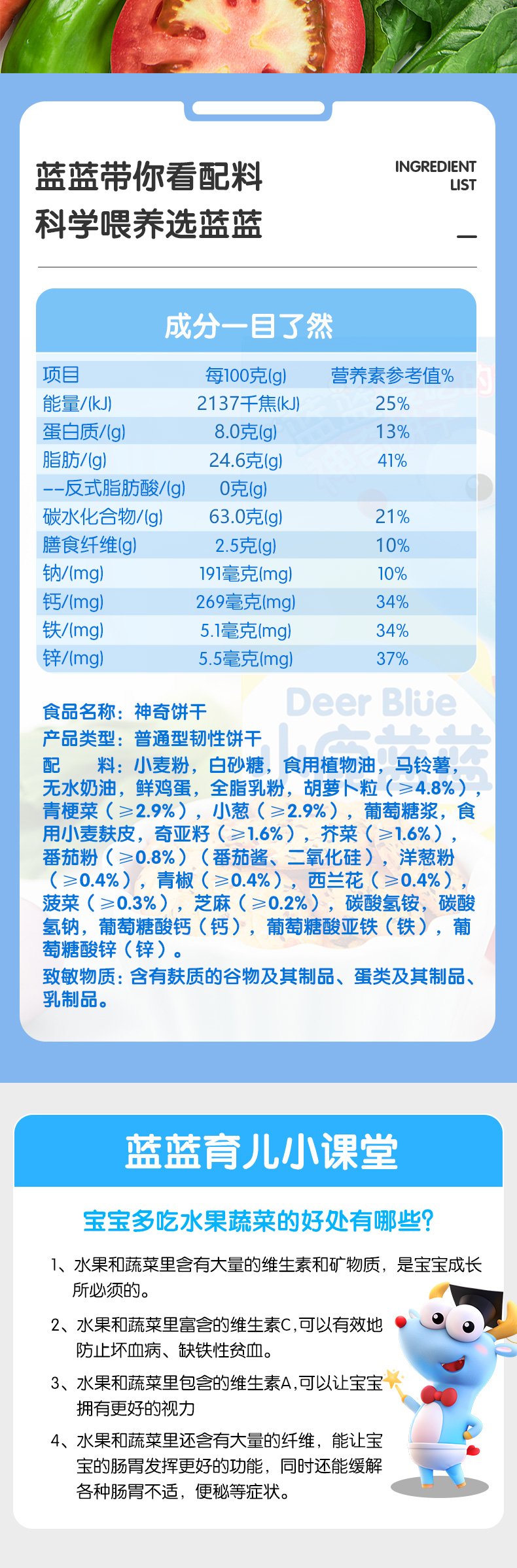 网店专用【小鹿蓝蓝_神奇饼干】宝宝零食不上火孕妇儿童3岁牛奶蔬菜饼干