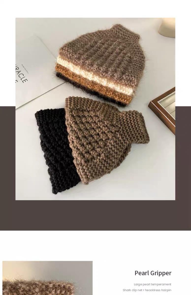 「9.9元包邮!数色可选」秋冬毛线针织发带帽宽边头巾女头饰护耳头套保暖发带围脖发箍两用配饰