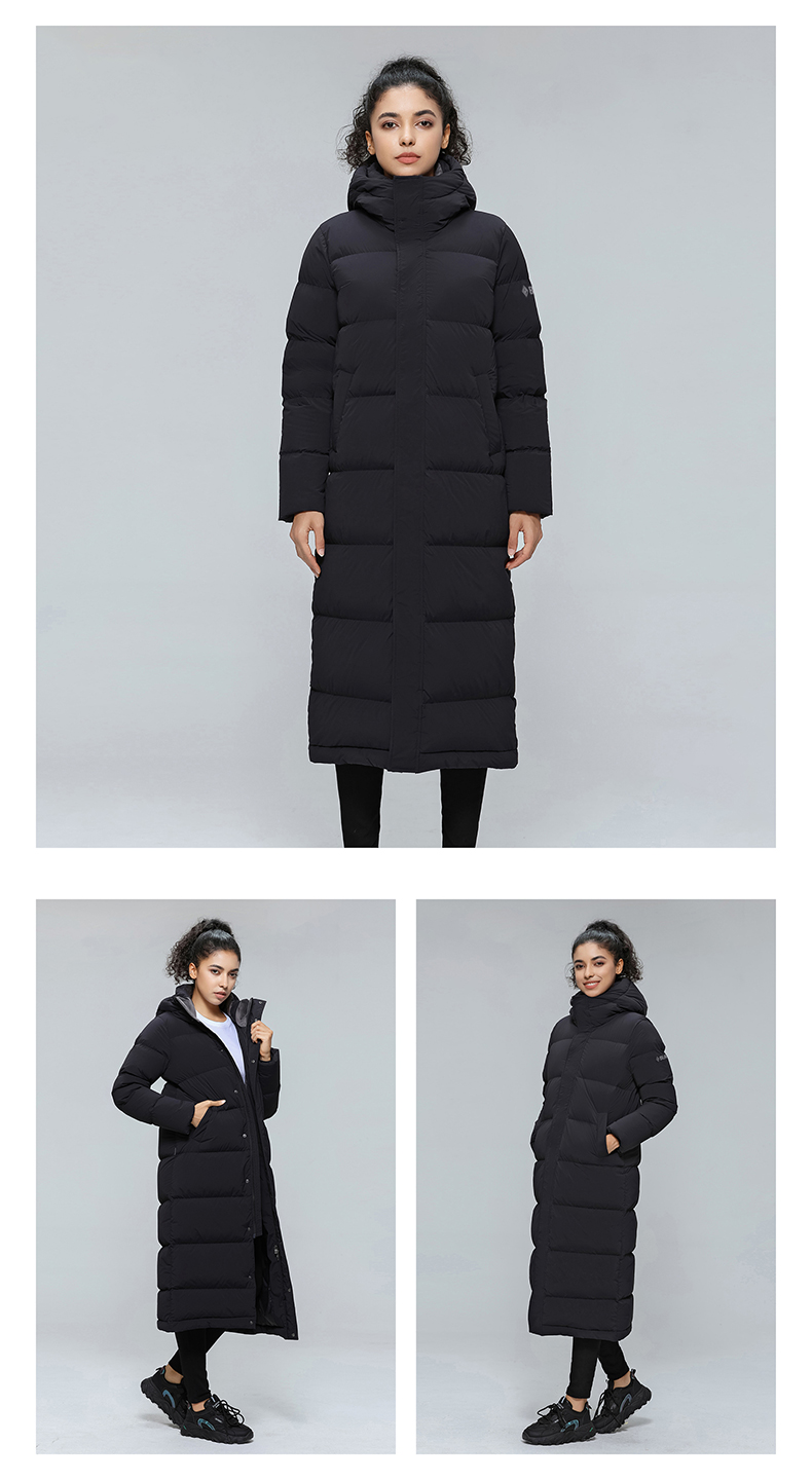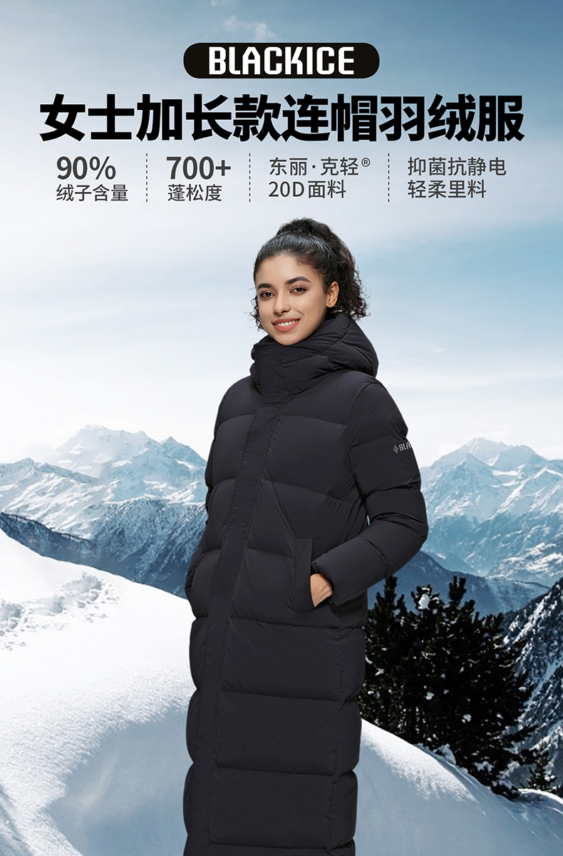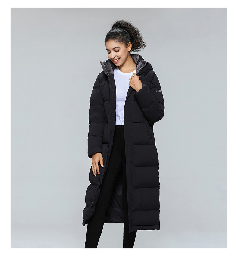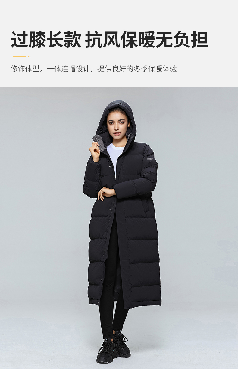黑冰700蓬连帽保暖羽绒服女款冬季过膝加长鹅绒大衣8569