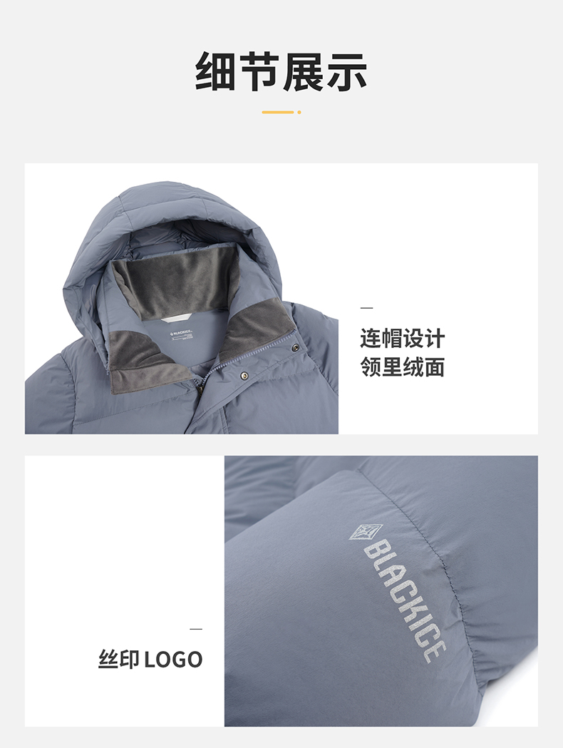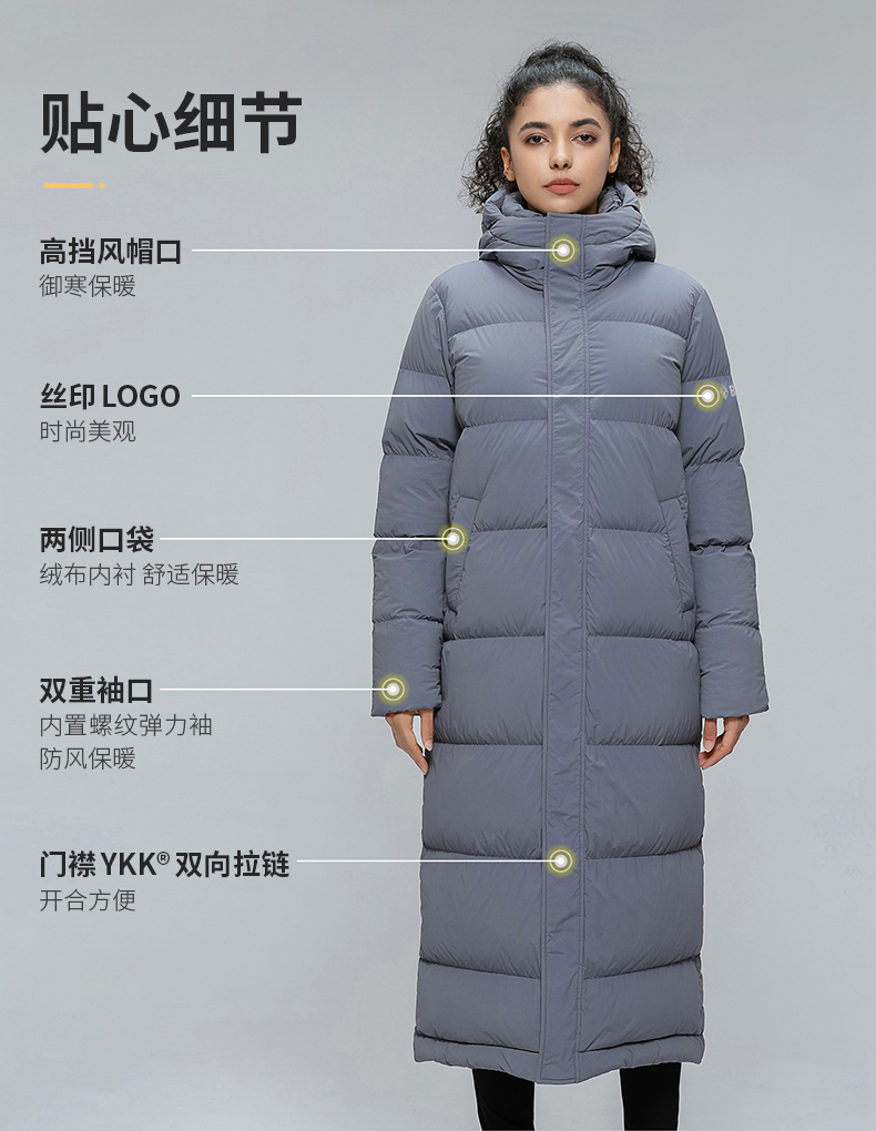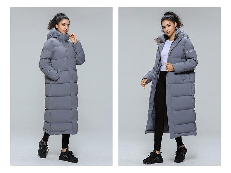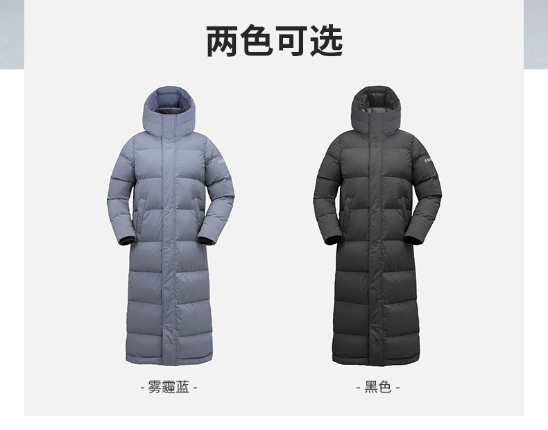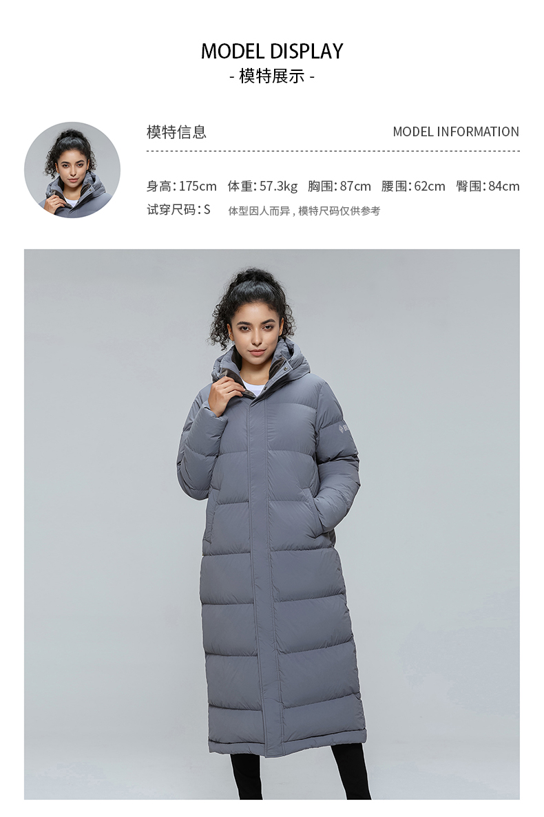 黑冰700蓬连帽保暖羽绒服女款冬季过膝加长鹅绒大衣8569