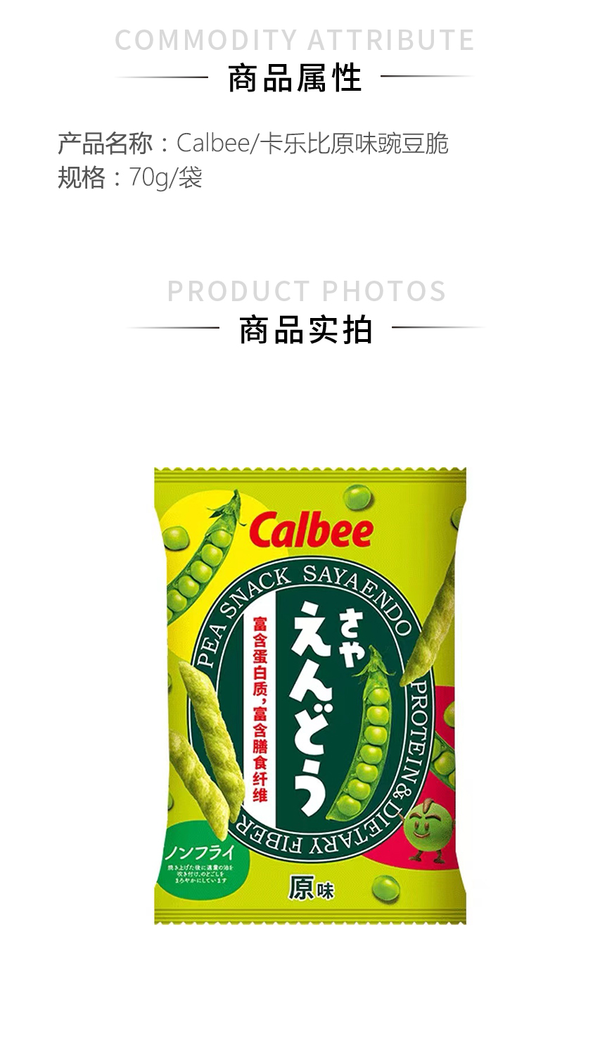 【3.8秒杀】Calbee/卡乐比原味豌豆脆70g/袋 儿童蔬菜薯条休闲零食品网红小吃