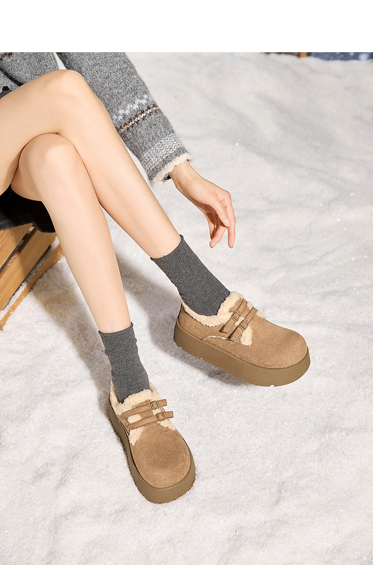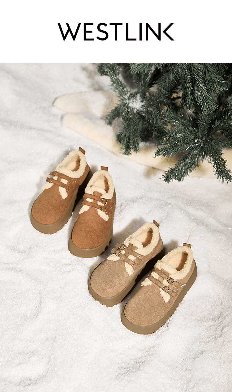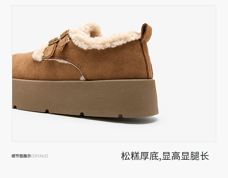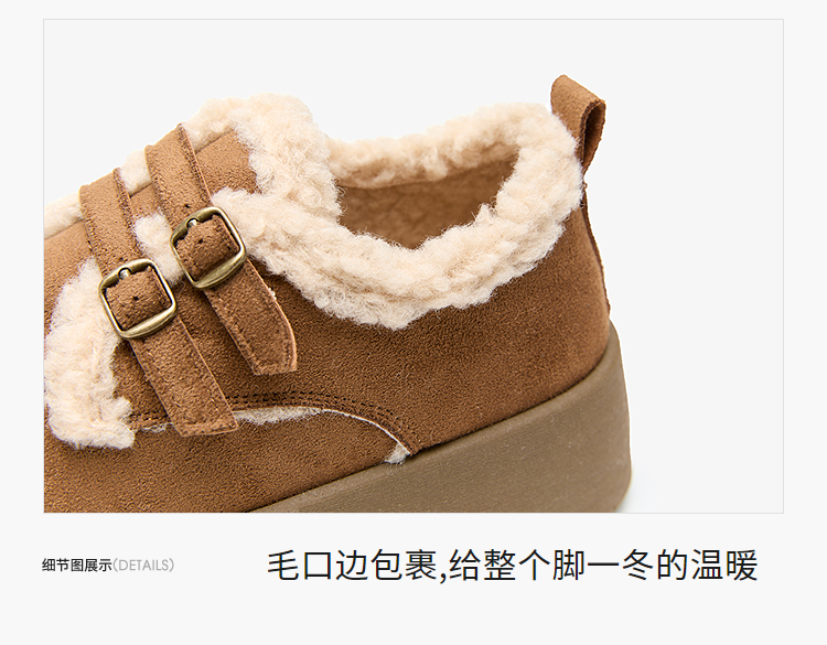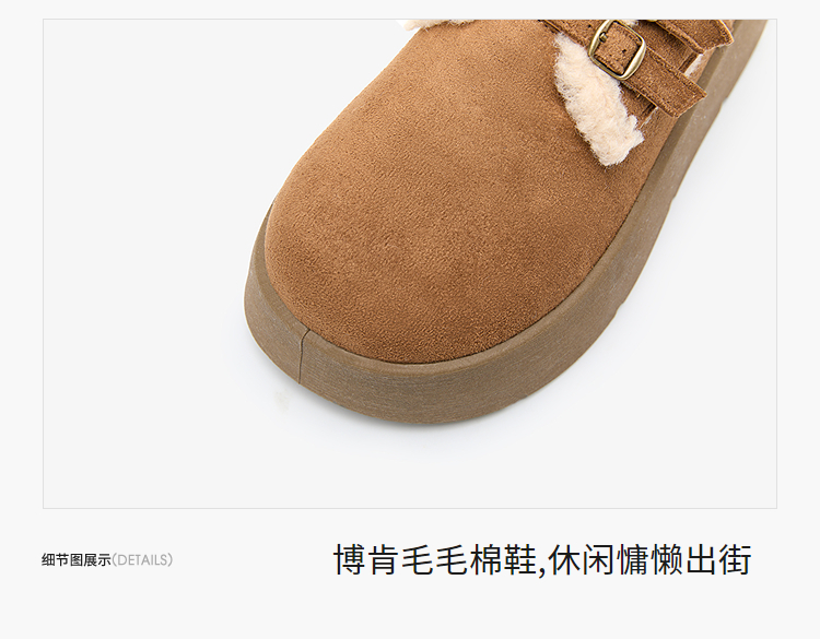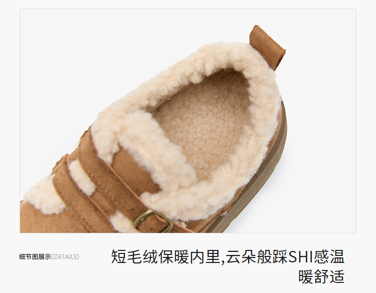 西遇厚底加绒勃肯鞋女新款冬季外穿棉鞋低帮保暖毛毛雪地靴V2457344