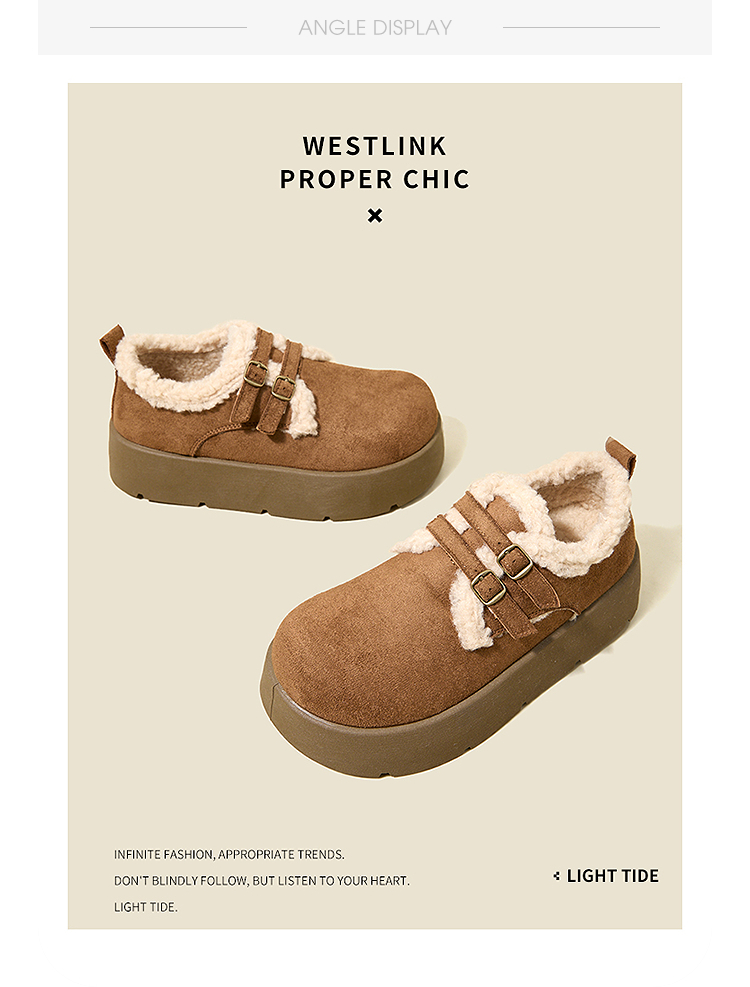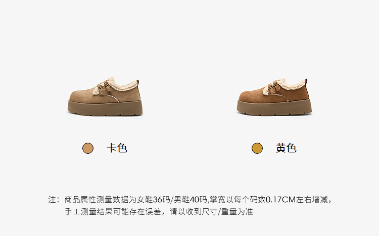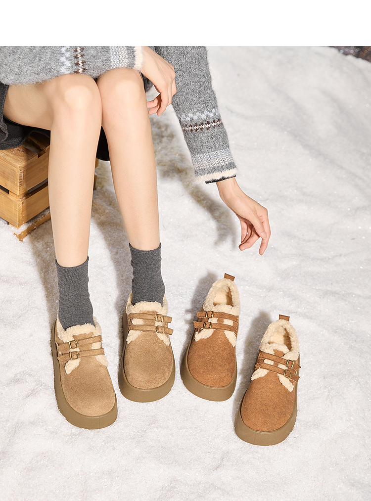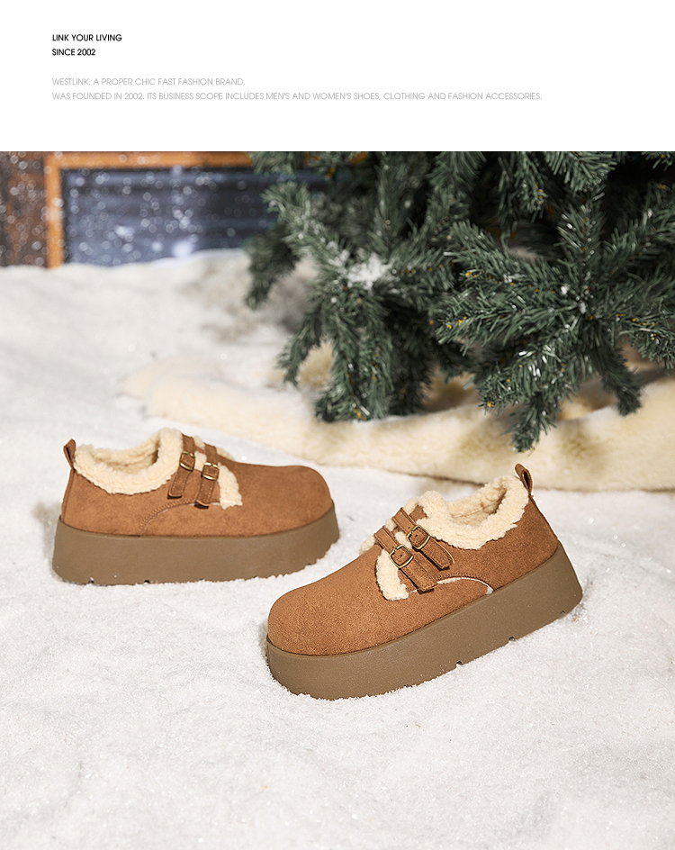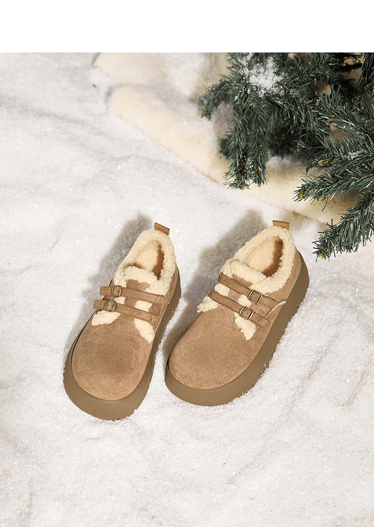 西遇厚底加绒勃肯鞋女新款冬季外穿棉鞋低帮保暖毛毛雪地靴V2457344