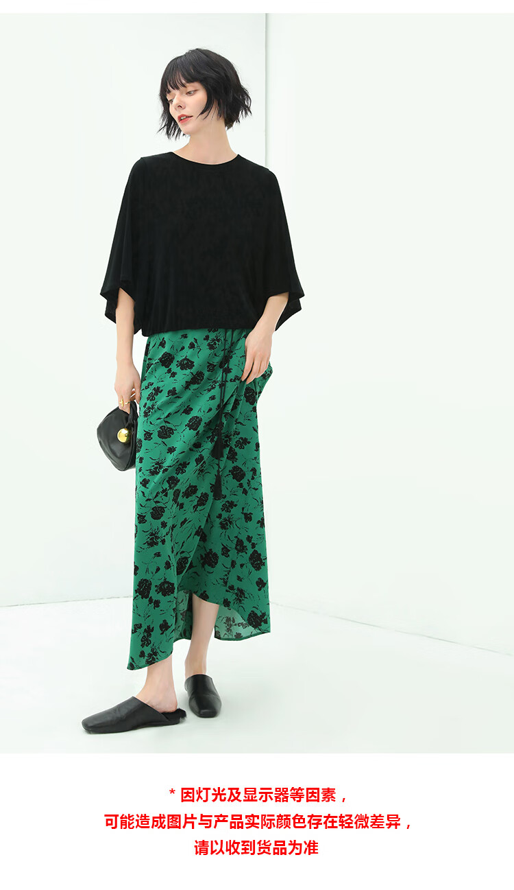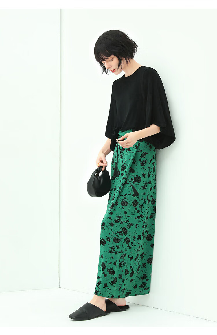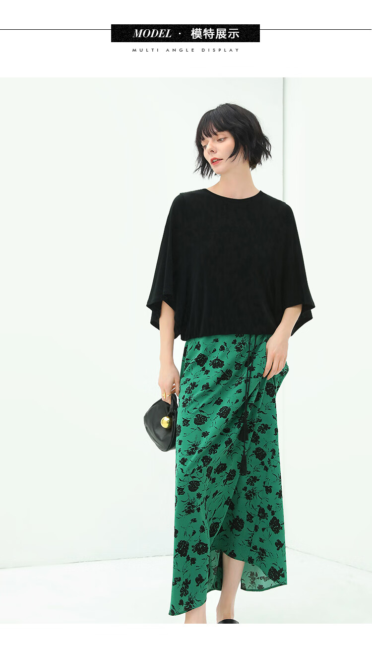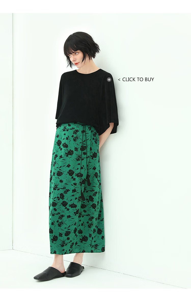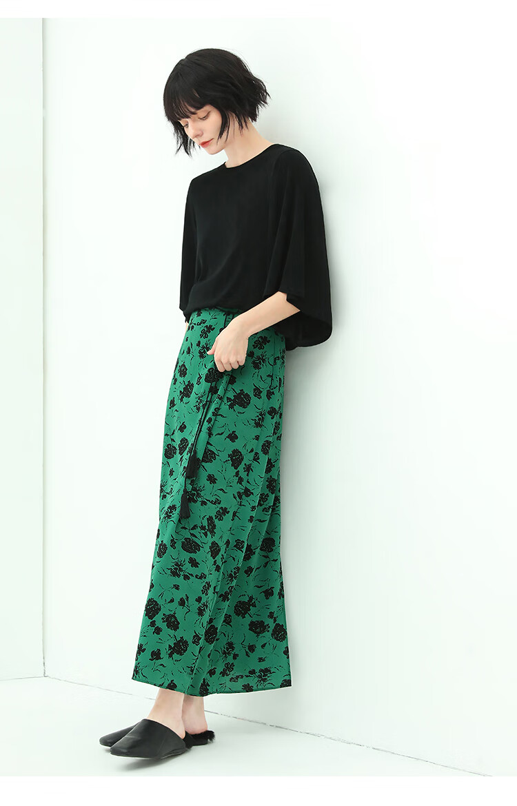 【有赞】COCOBELLA流苏飘带高腰捏褶剪影印花半身裙女夏开叉长裙HS91
