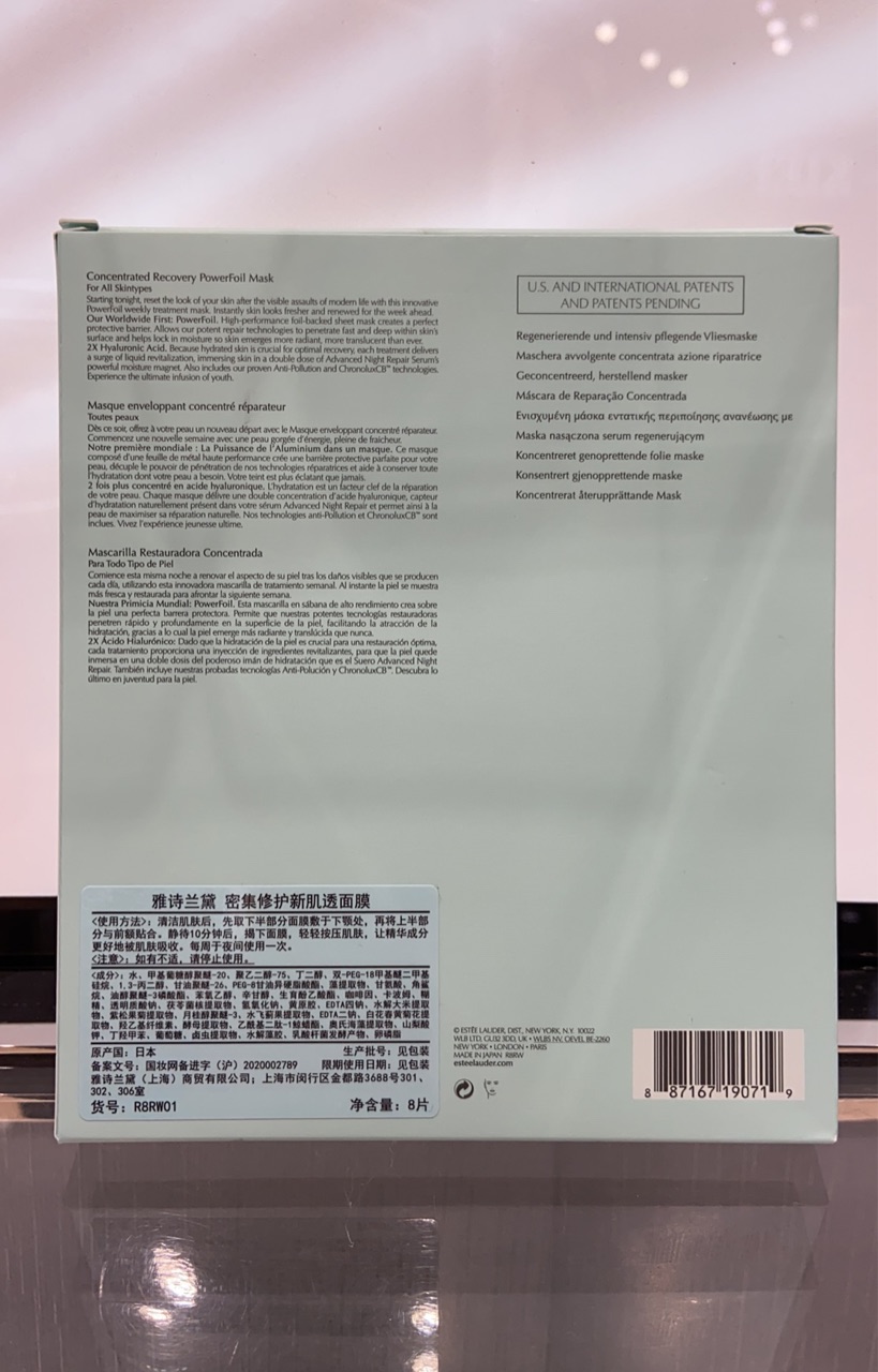 雅诗兰黛 密集修护肌透面膜 8片 r8rw010000-F