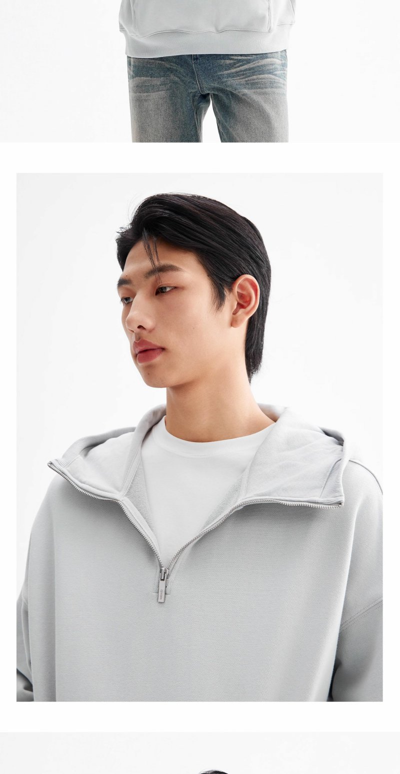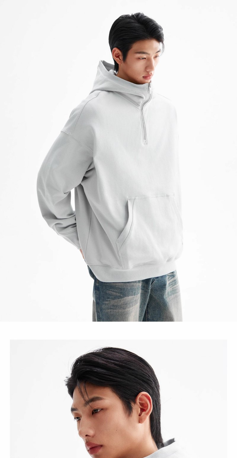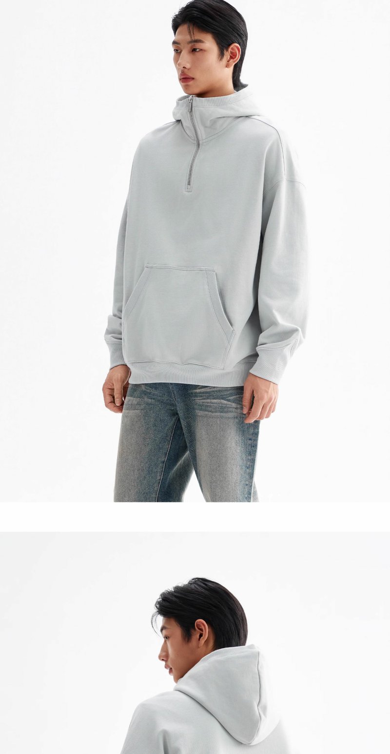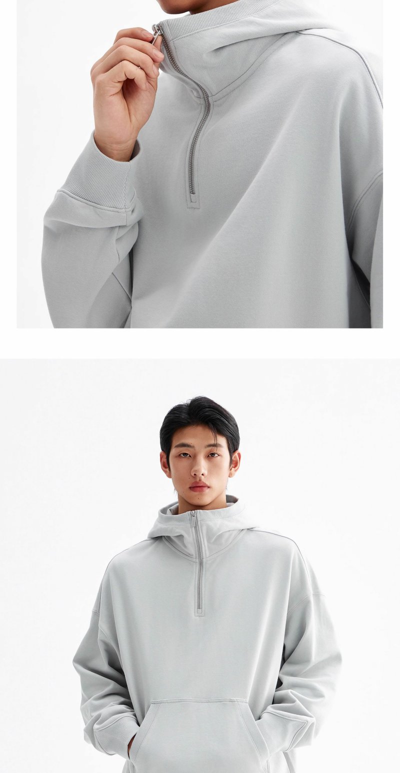 CHINISM赤尘 灰色立领连帽半拉链卫衣男春季美式男士宽松纯色帽衫