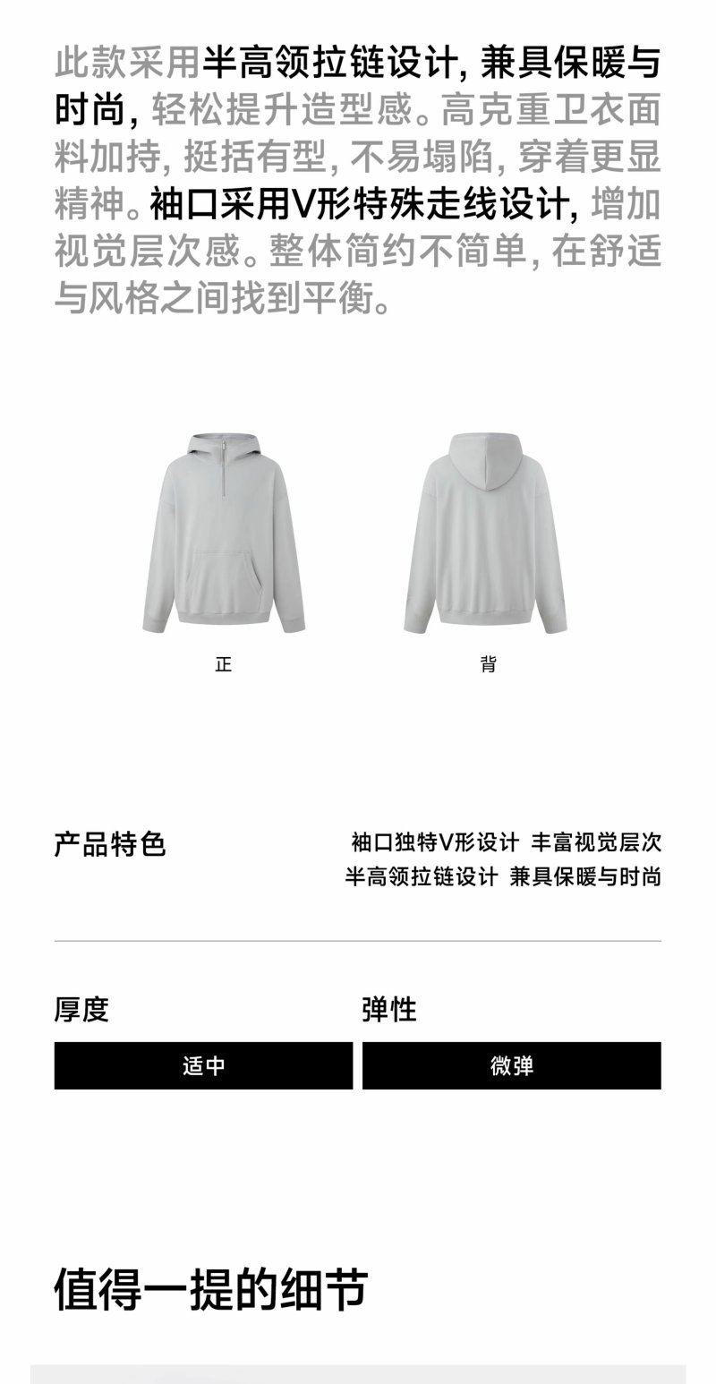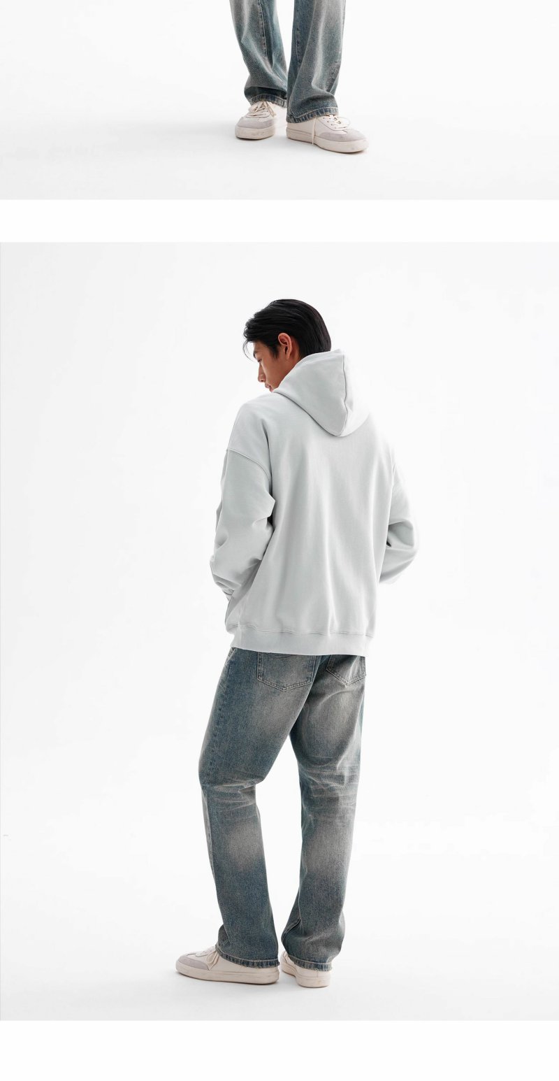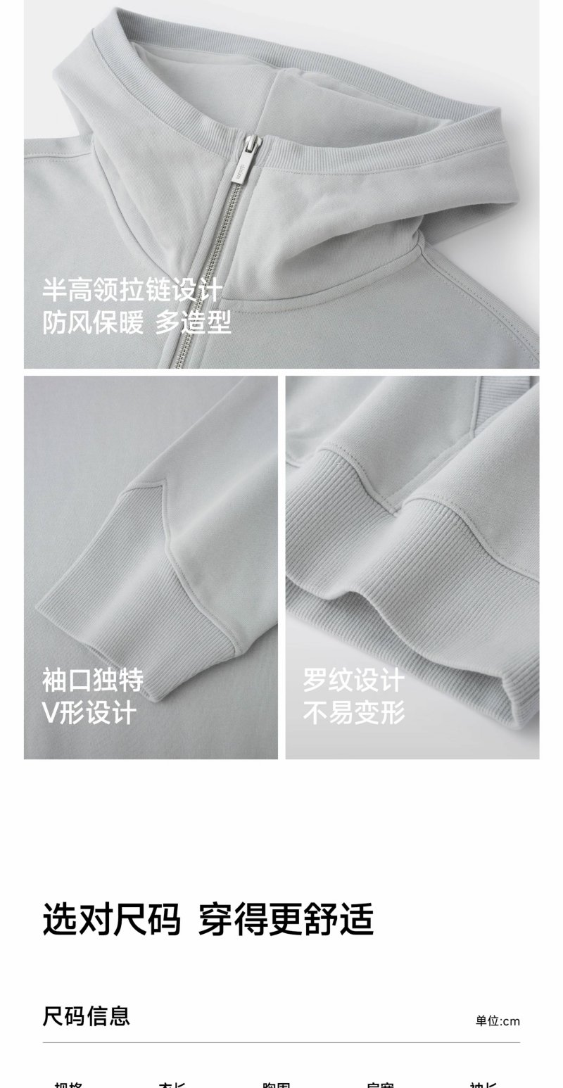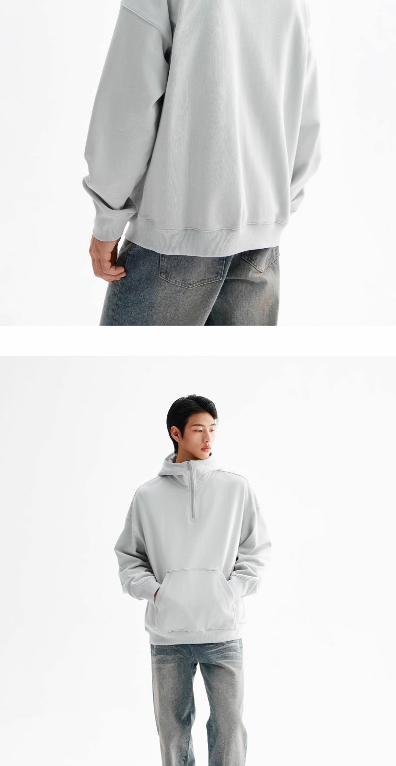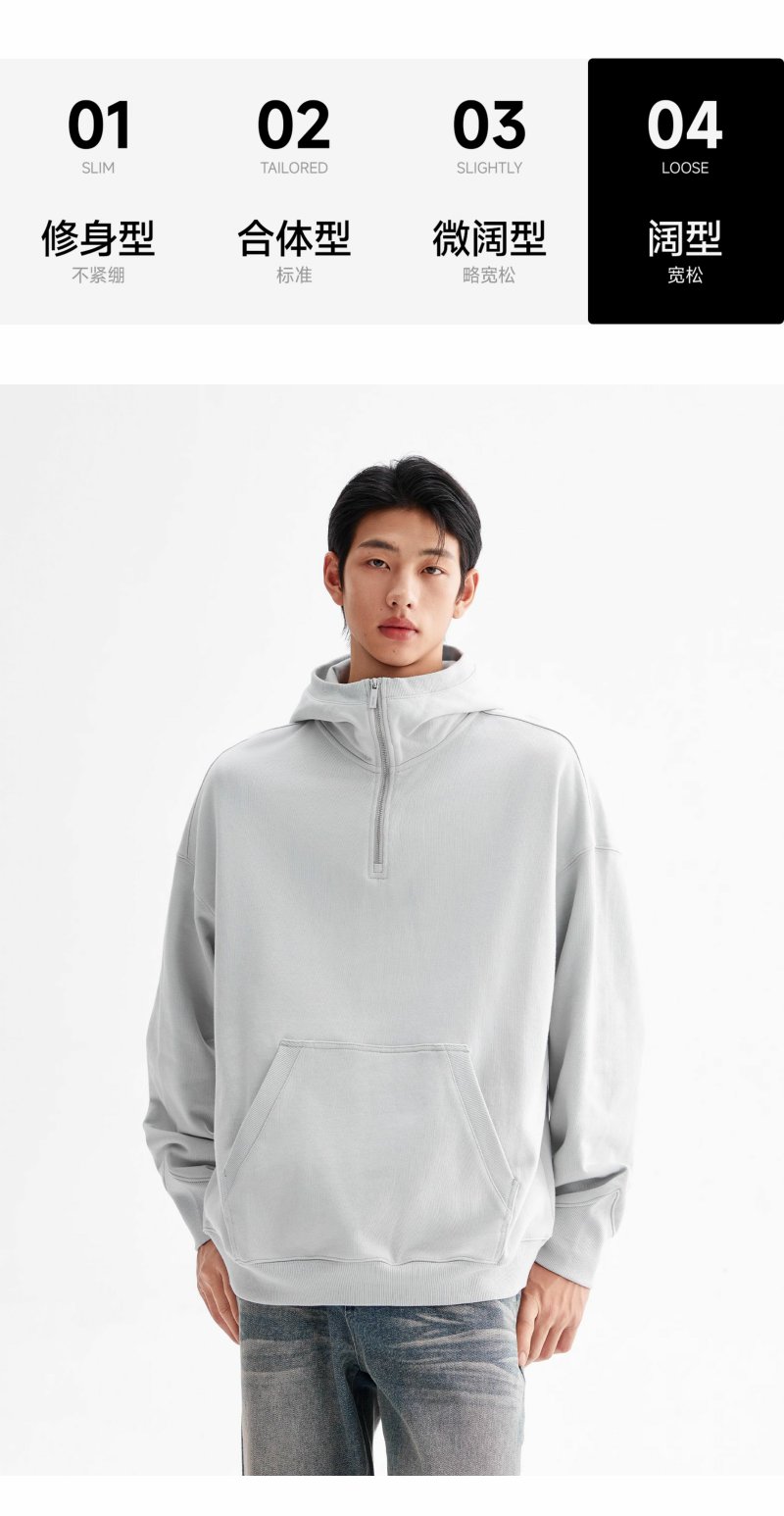 CHINISM赤尘 灰色立领连帽半拉链卫衣男春季美式男士宽松纯色帽衫