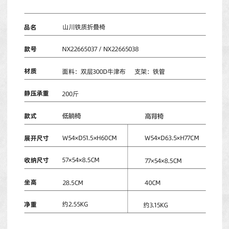 牧高笛(MOBIGARDEN) 山川铁质折叠高背椅 NX22665038