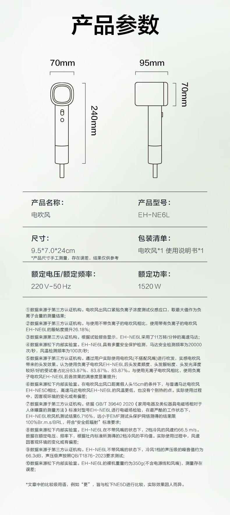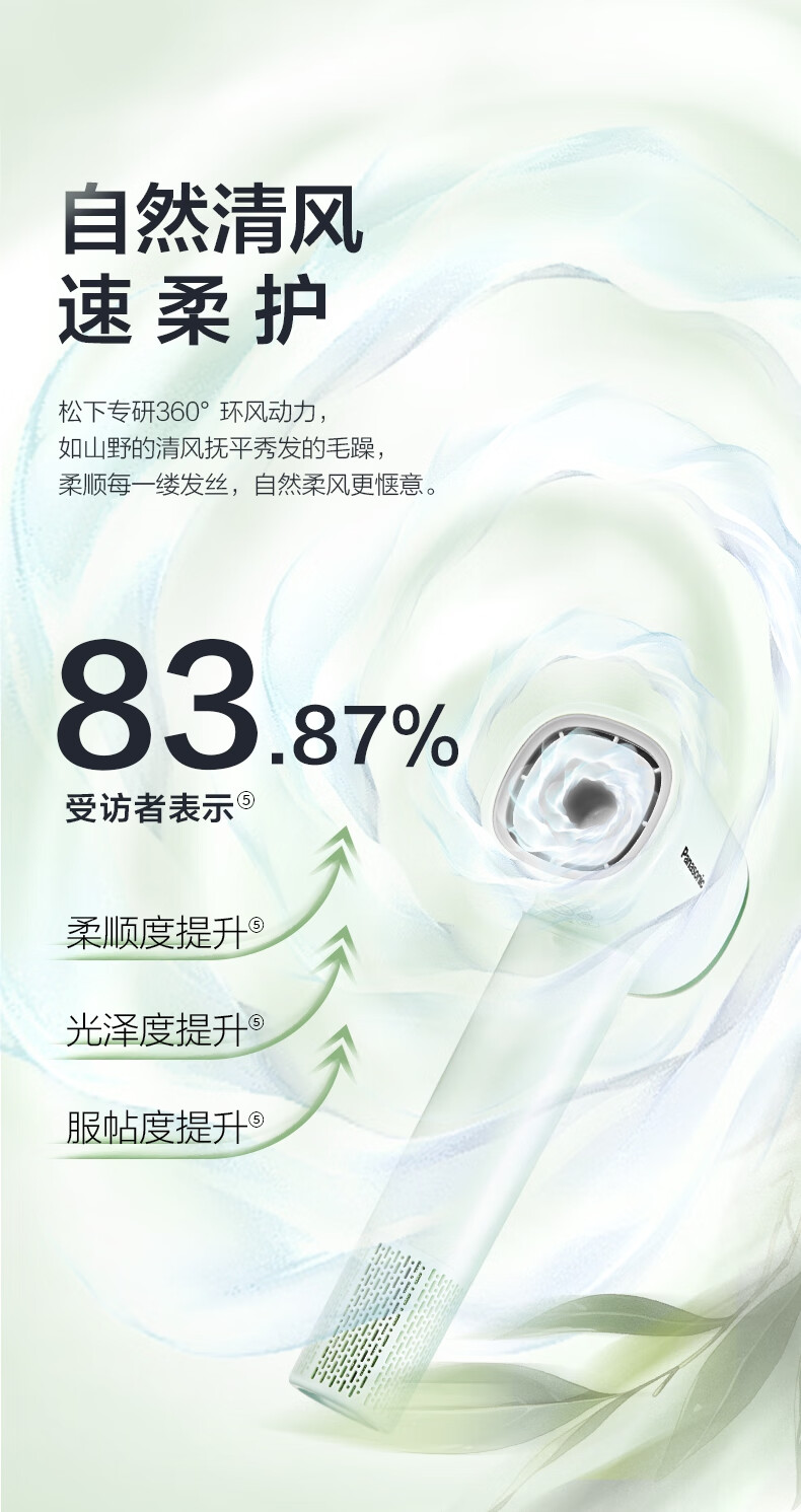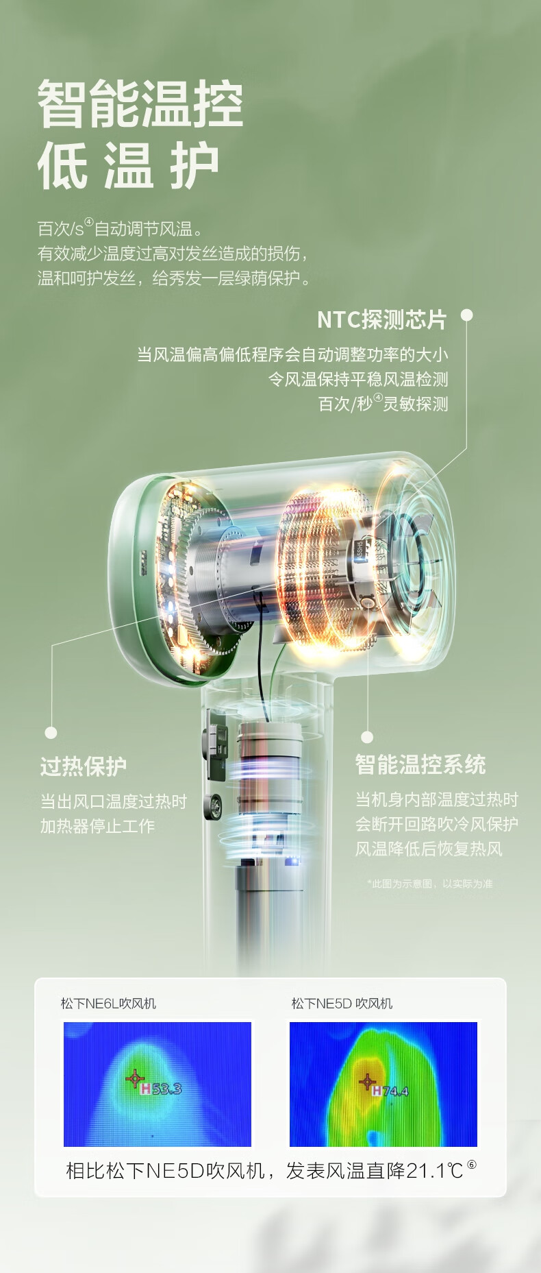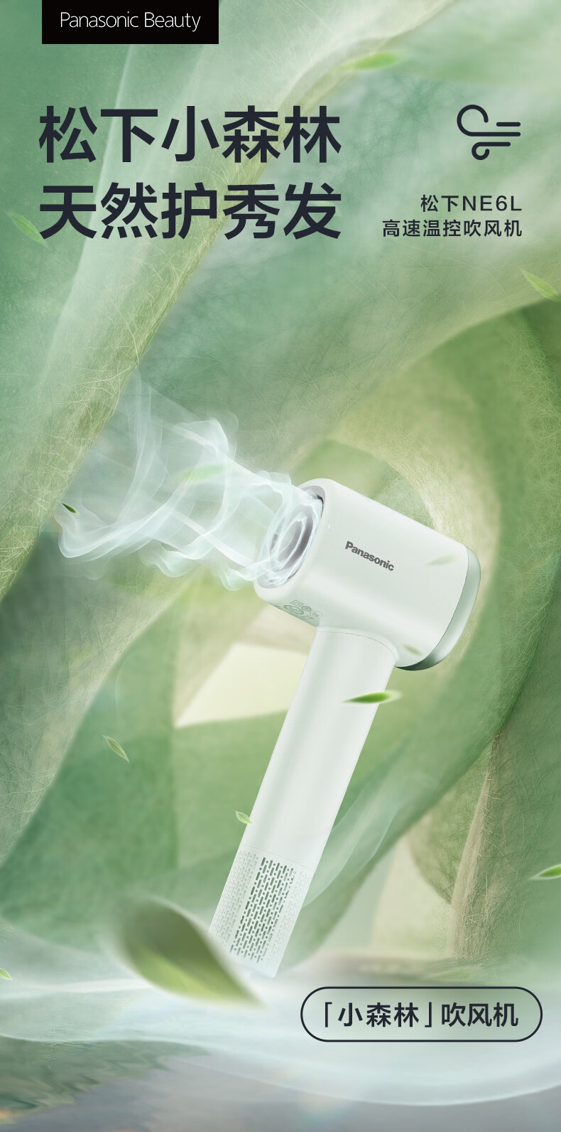 松下(Panasonic)家用高速电吹风机大功率速干负离子低噪便携温控护发吹风筒EH-NE6L小森林陶瓷白 100104316076