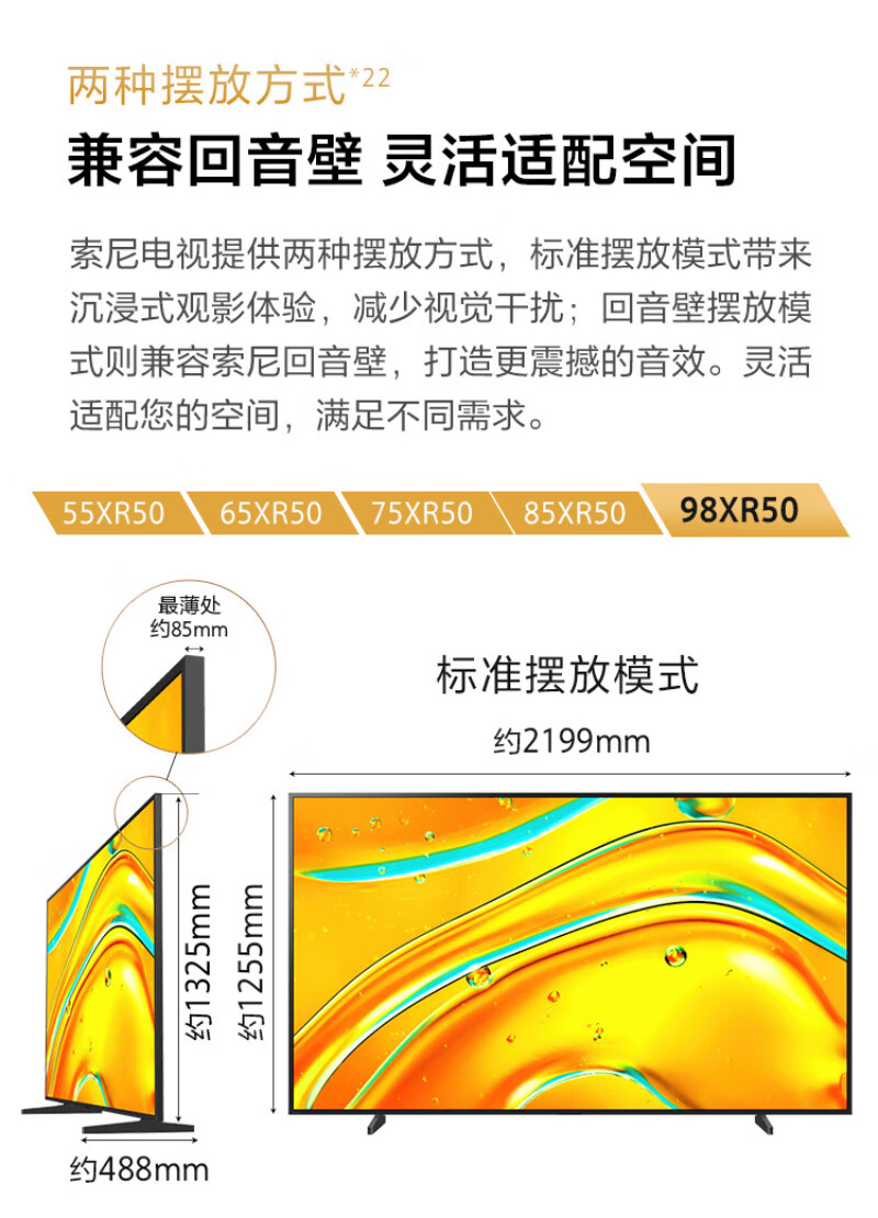 【国补15%】索尼电视5系98寸XR50 轻旗舰Mini LED 电影工业级音画 影院电视新标杆98英寸 98英寸 K-98XR50