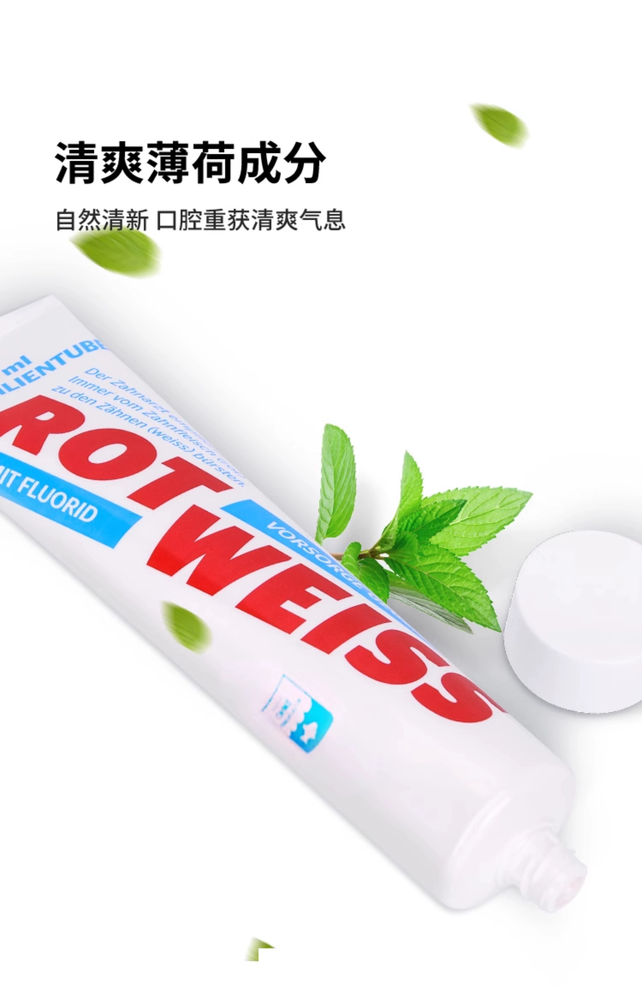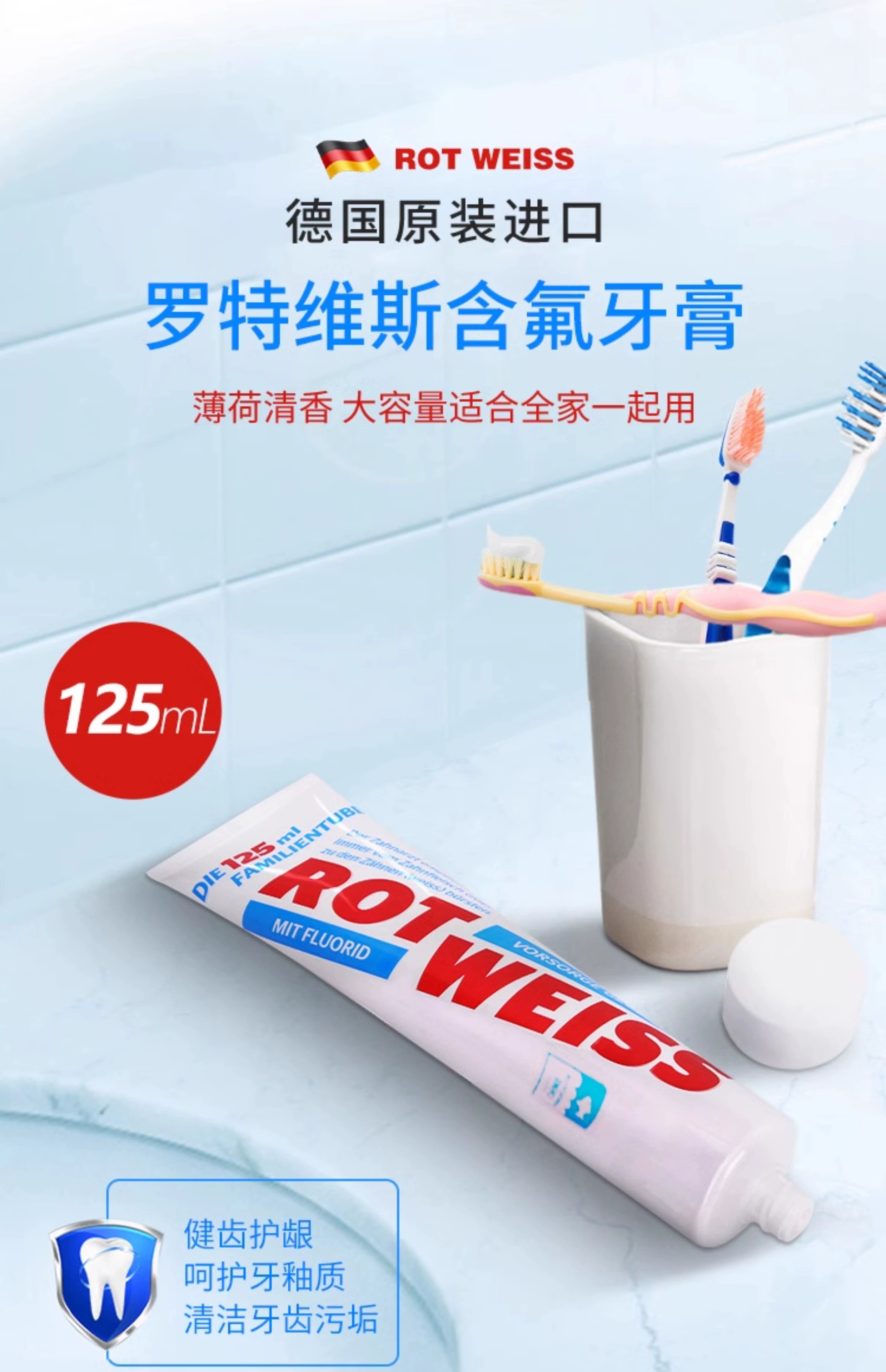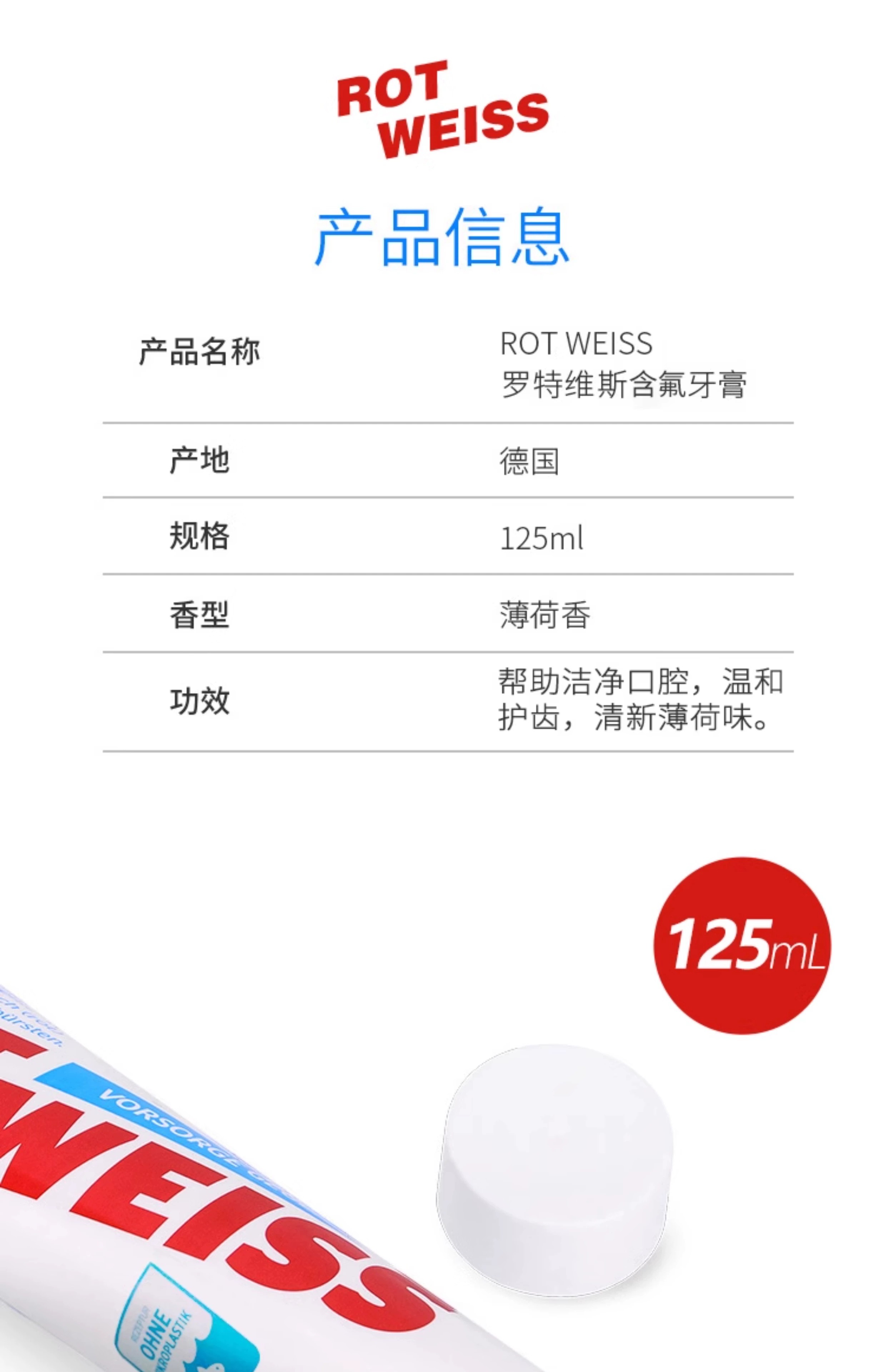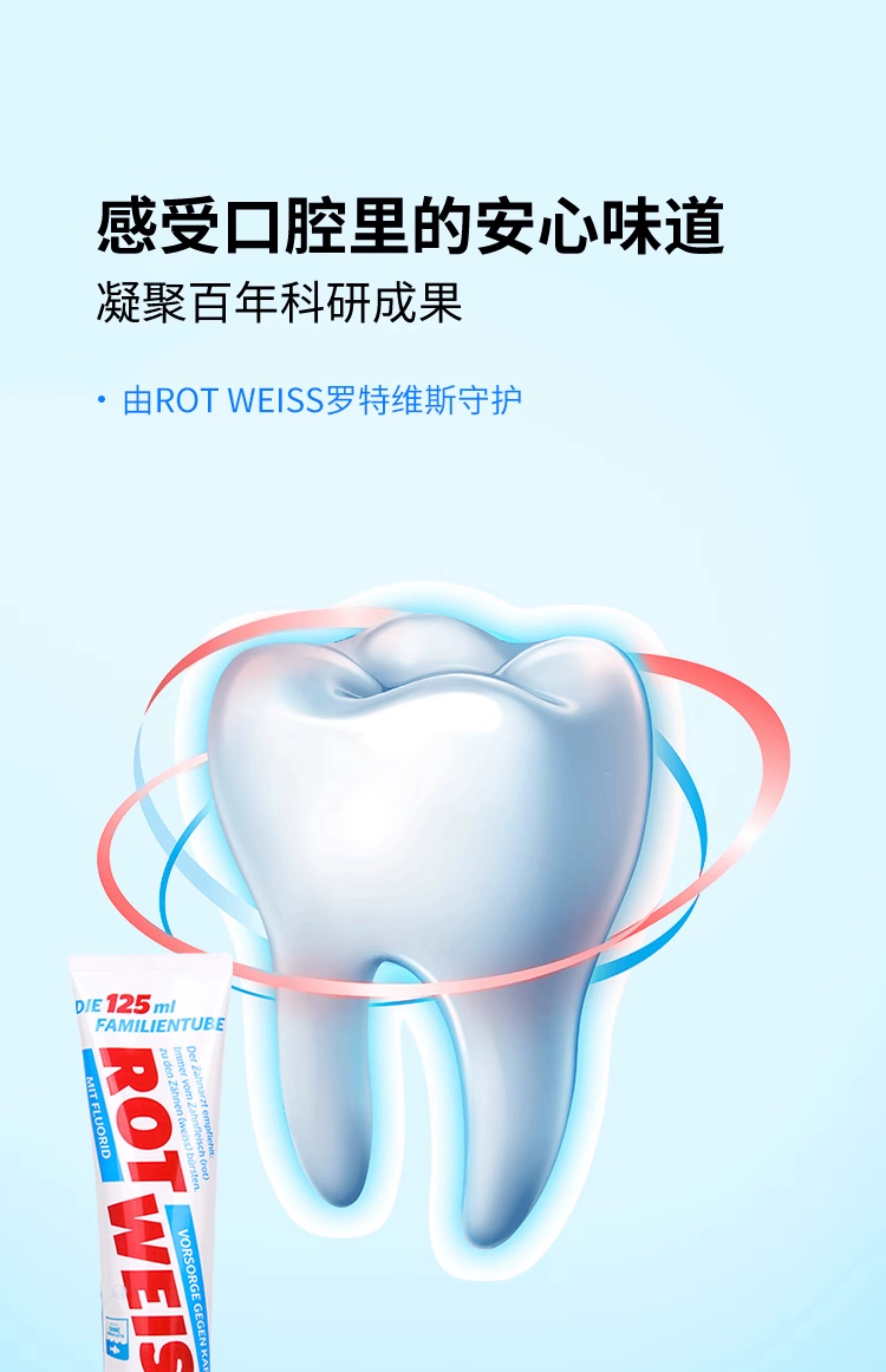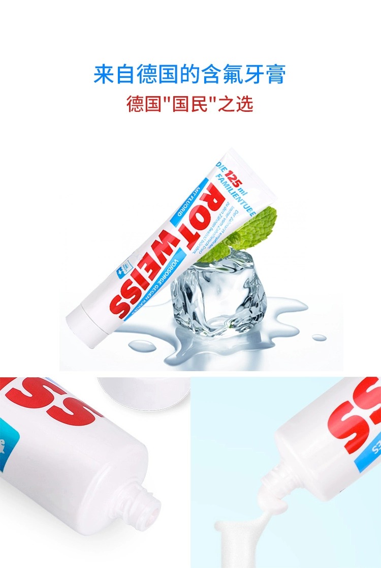 【中欧班列】德国原装进口ROTWELSS罗特维斯含氟防蛀牙膏125ml/支