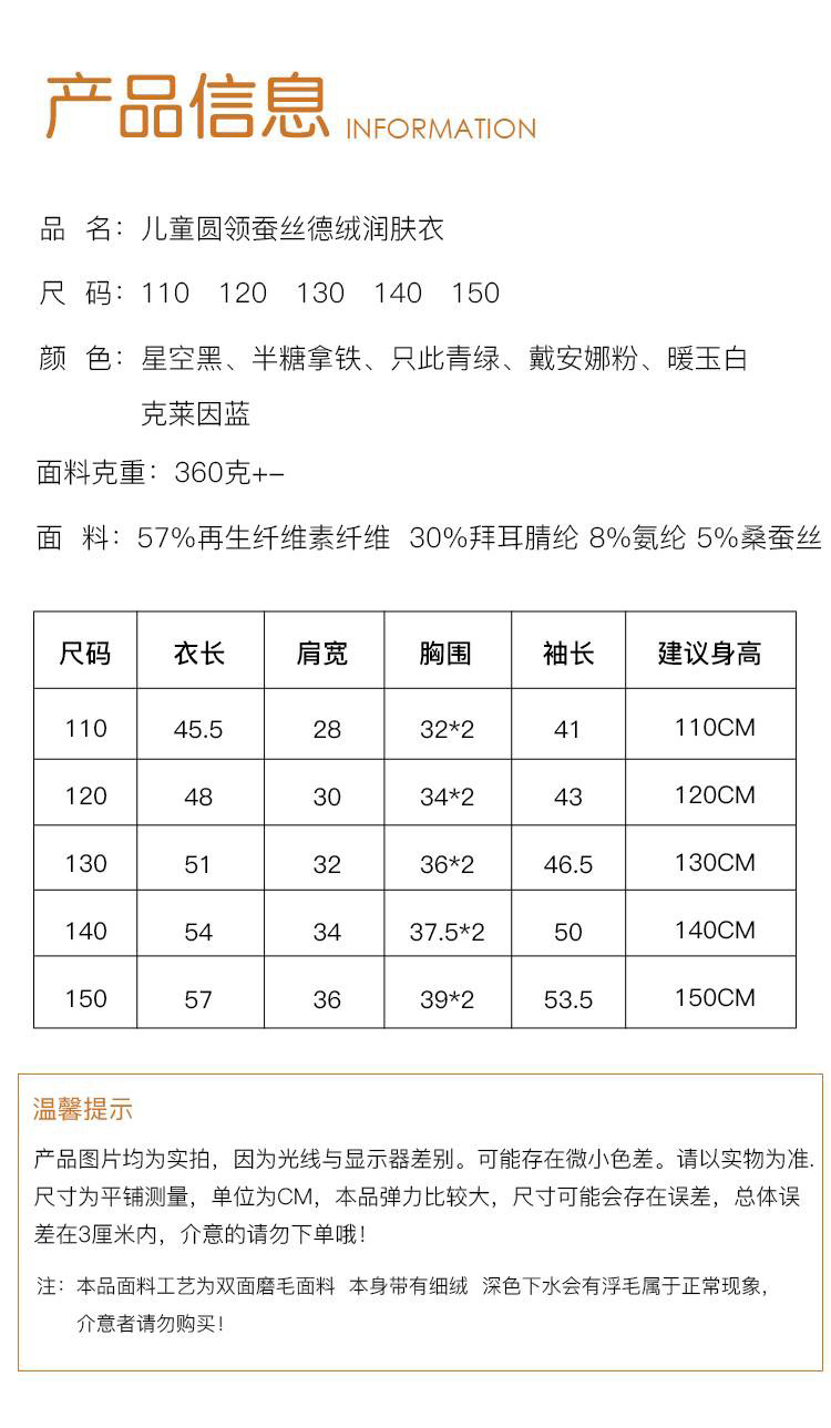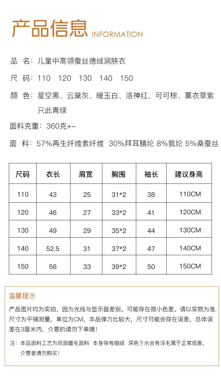 儿童德绒3.0版蚕丝恒温衣(圆领 / 中高领)