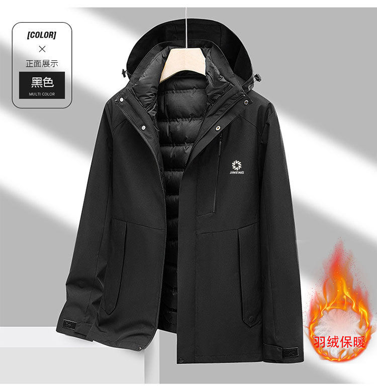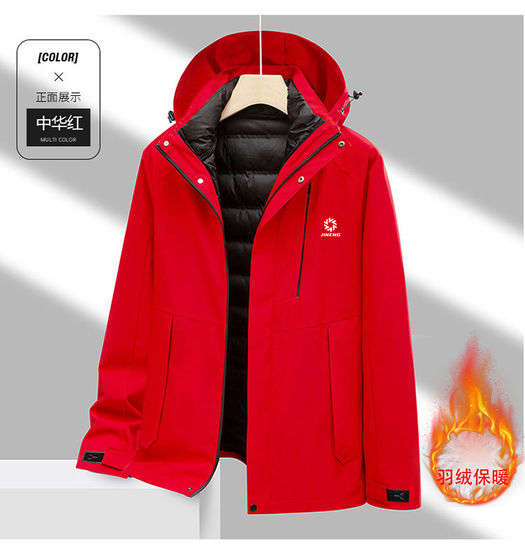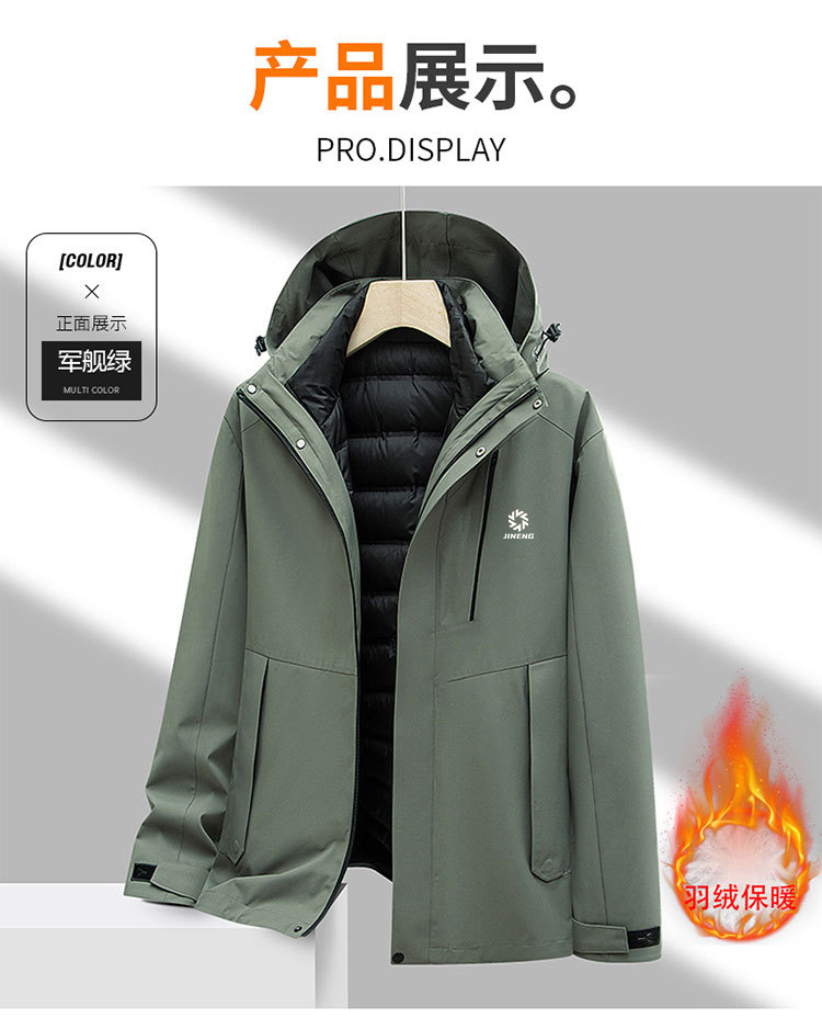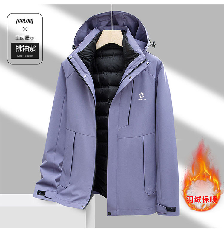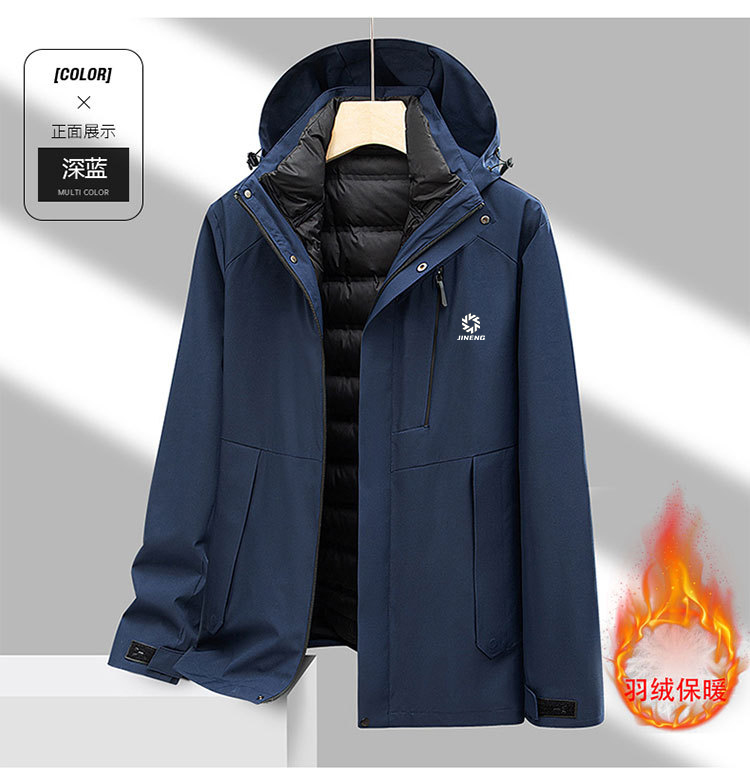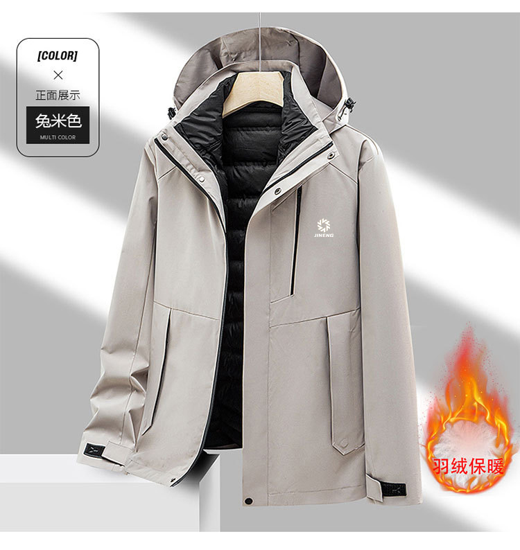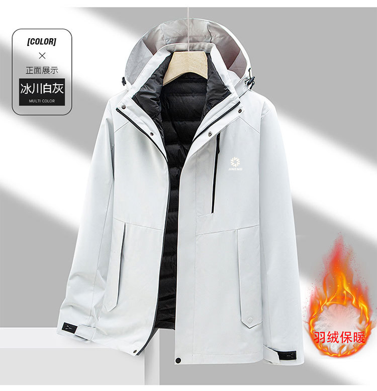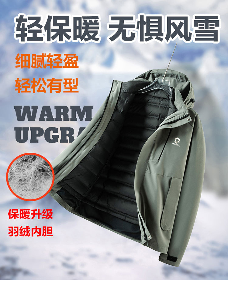 【积能】秋冬新款户外三合一冲锋衣防风防泼水80鸭绒通勤时尚登山服