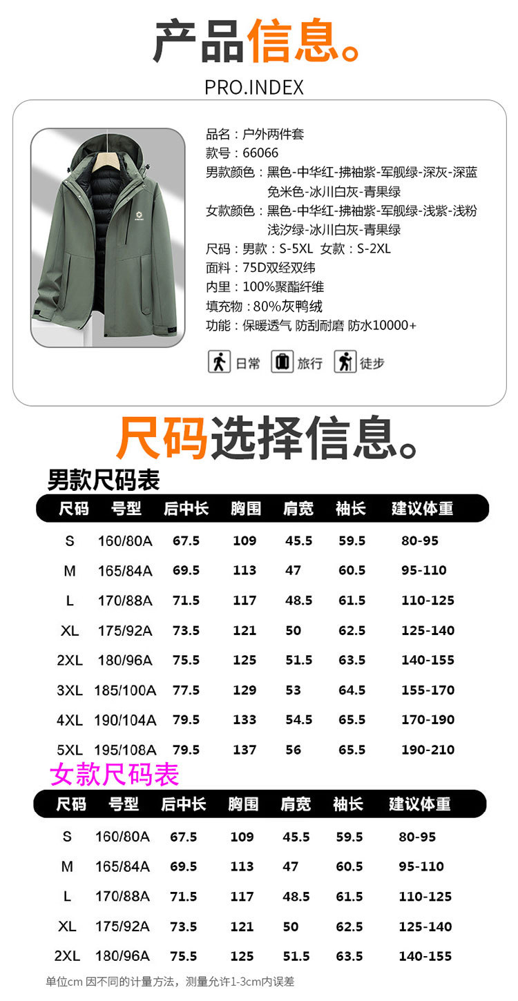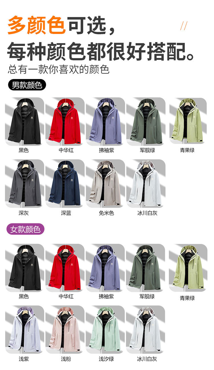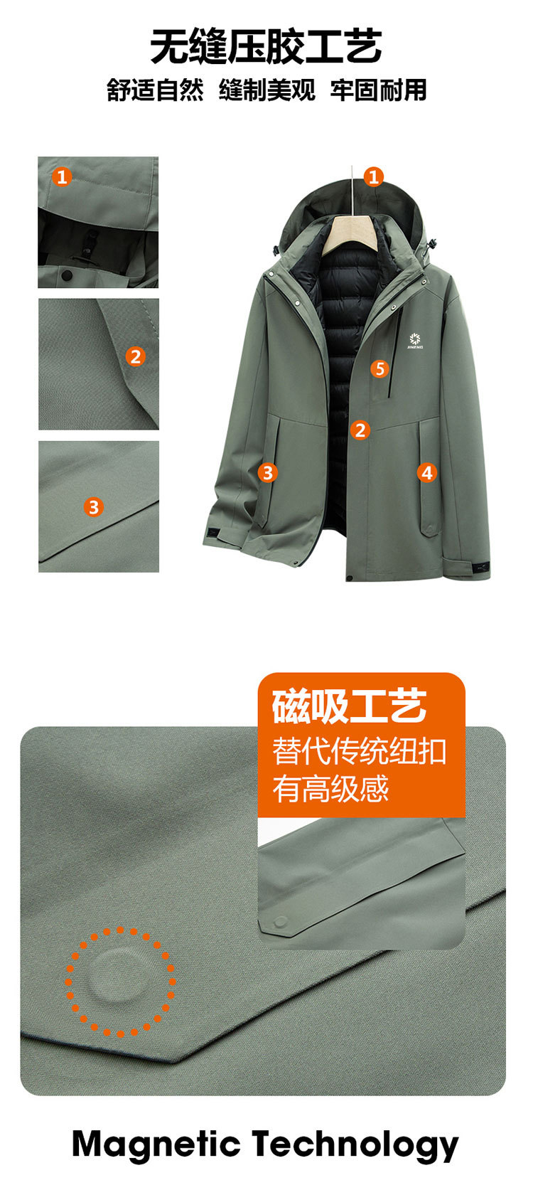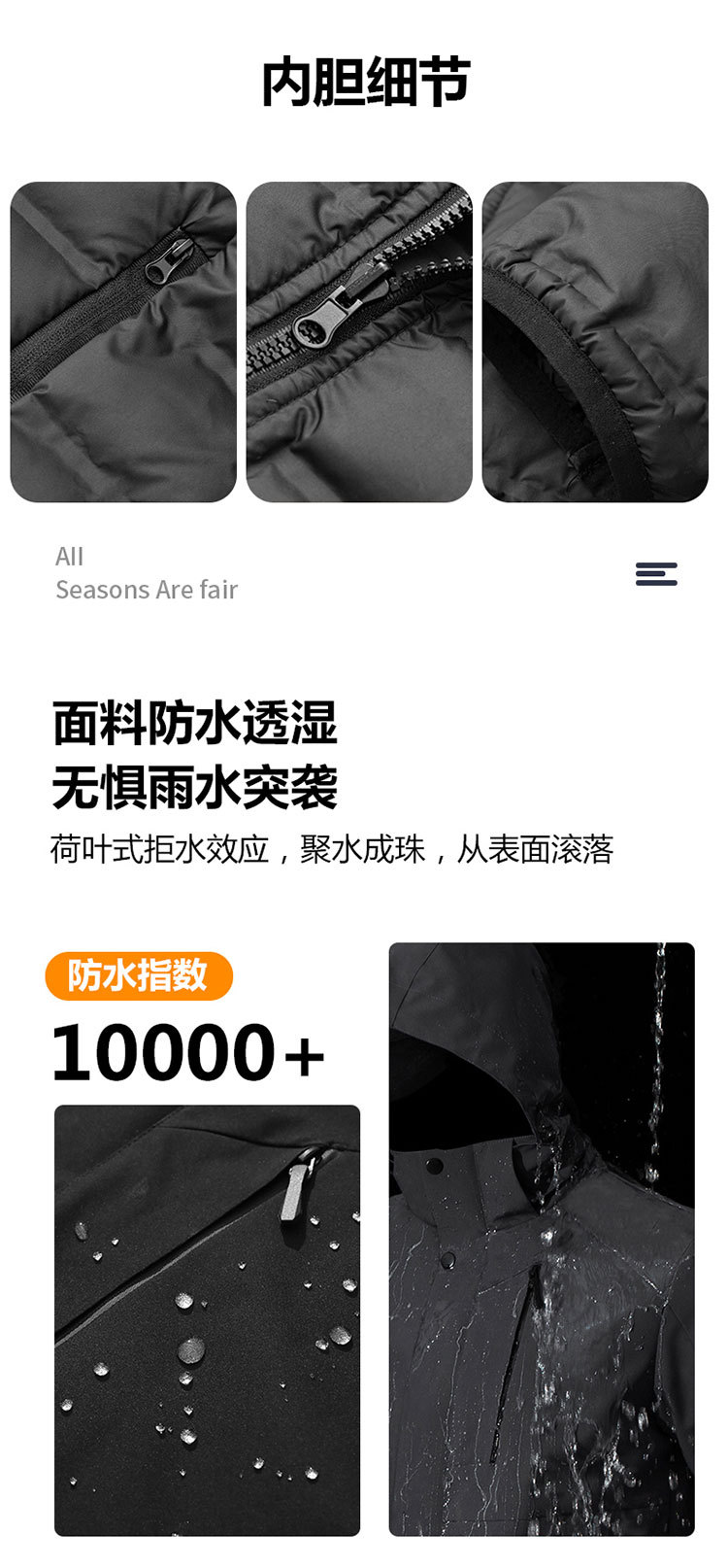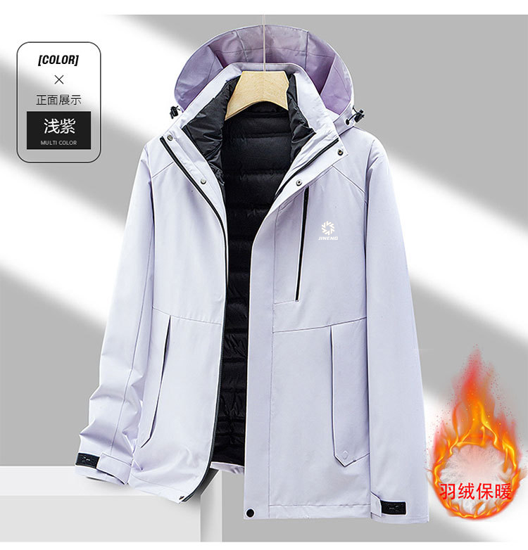 【积能】秋冬新款户外三合一冲锋衣防风防泼水80鸭绒通勤时尚登山服