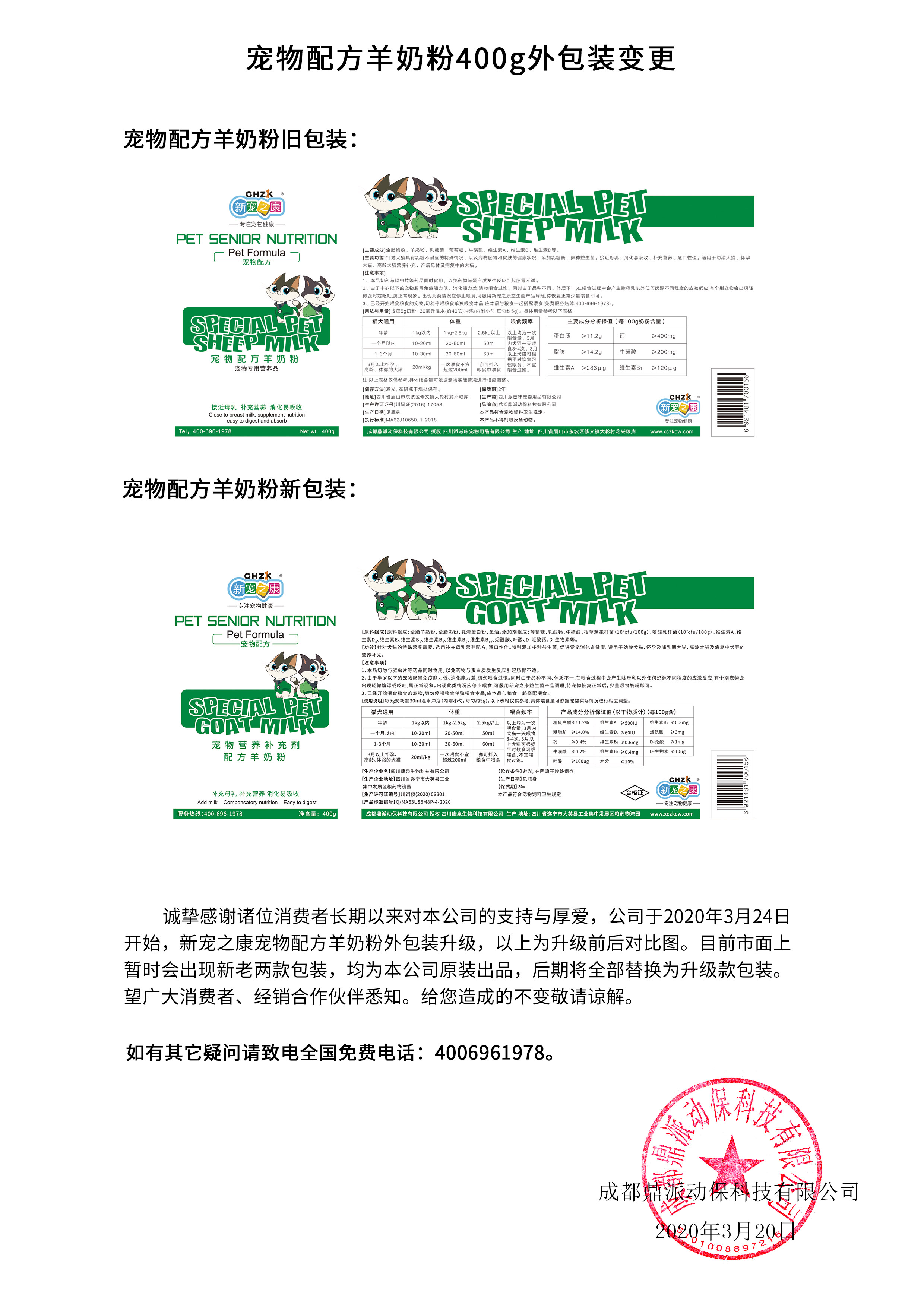 新宠之康宠物配方猫咪狗狗通用羊奶粉400g