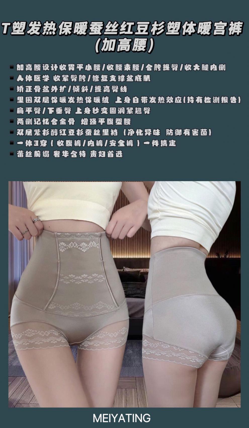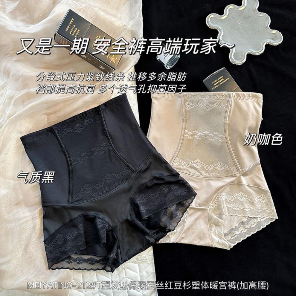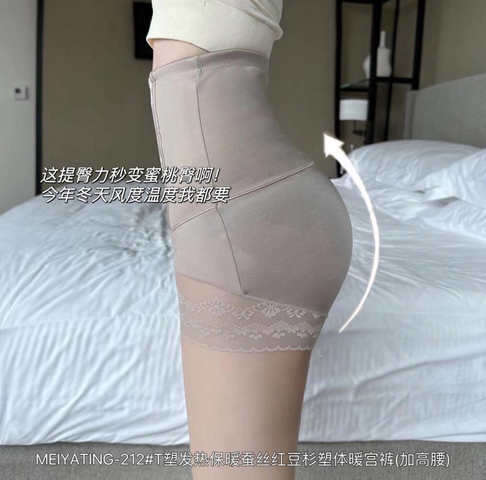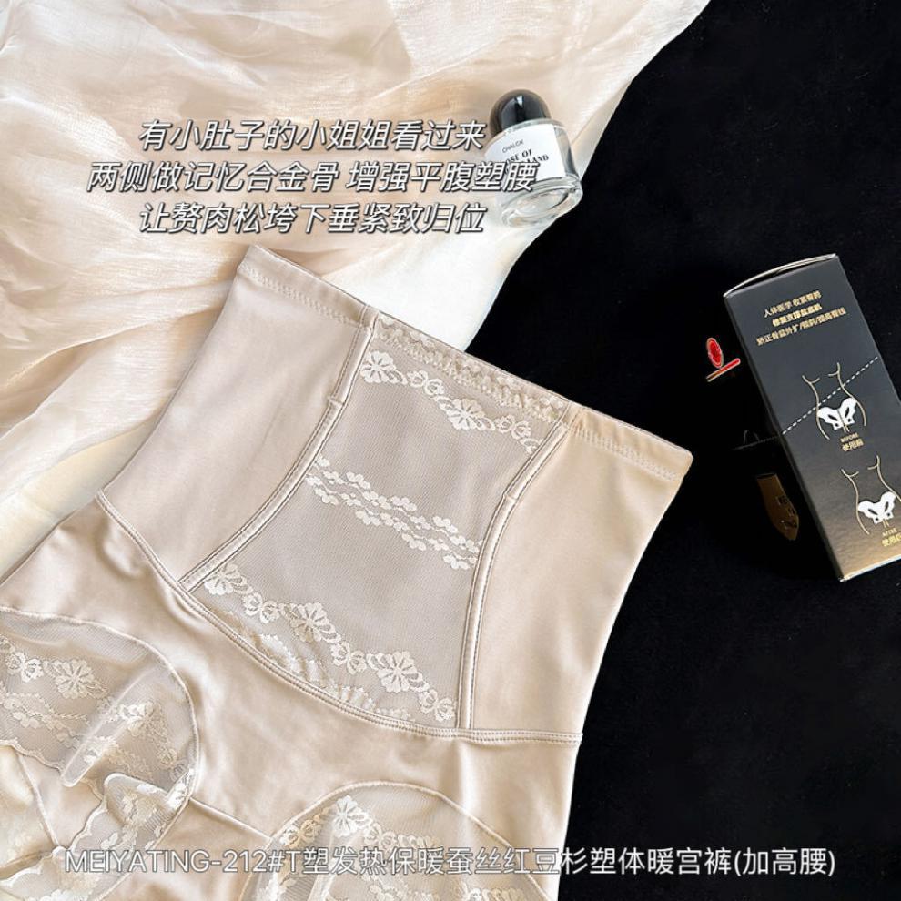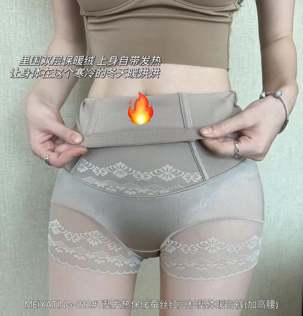 秋冬212T塑发热保暖蚕丝红豆杉塑体高腰无痕轻收蕾丝女内裤提臀裤