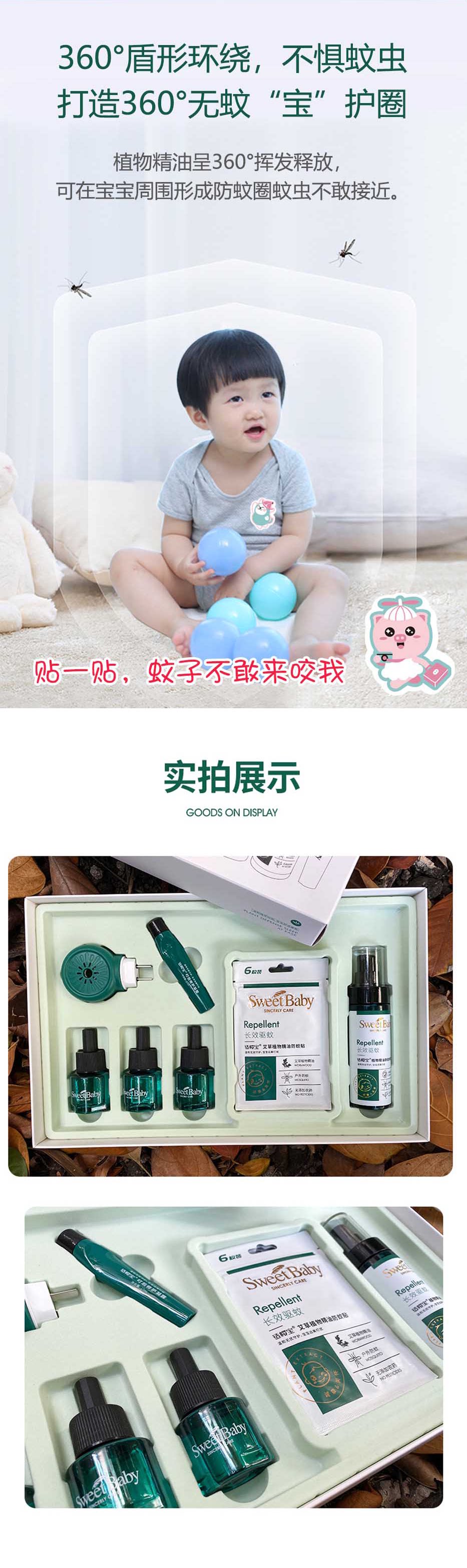 (新)适樱宝 防护礼盒(72枚艾草防蚊贴+喷雾120ml+凝露17ml+3液送器)