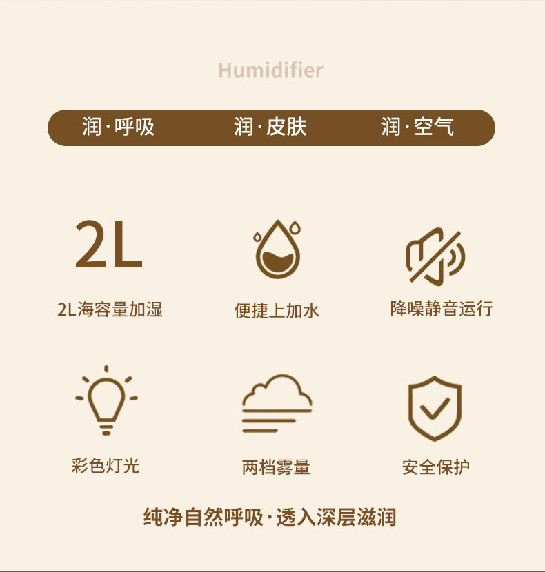 【🌬️超声波桌面加湿器 】保湿大雾香薰加湿器, 滋润补水静音触摸增湿器,2L大容量+静音设计,这款桌面加湿器让你的每一口呼吸都滋润💧!