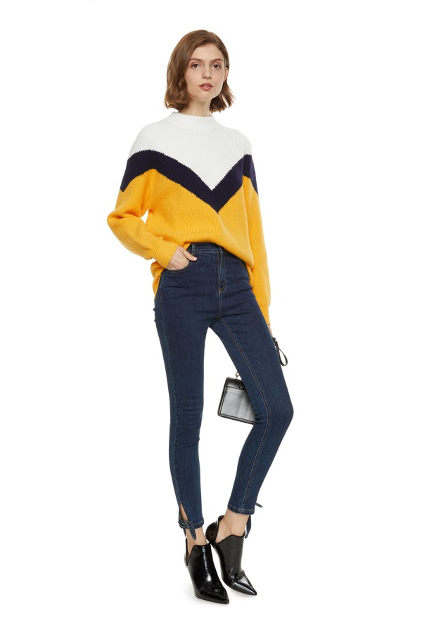 AVA 黄色夸张翻领修身毛衫 8764
