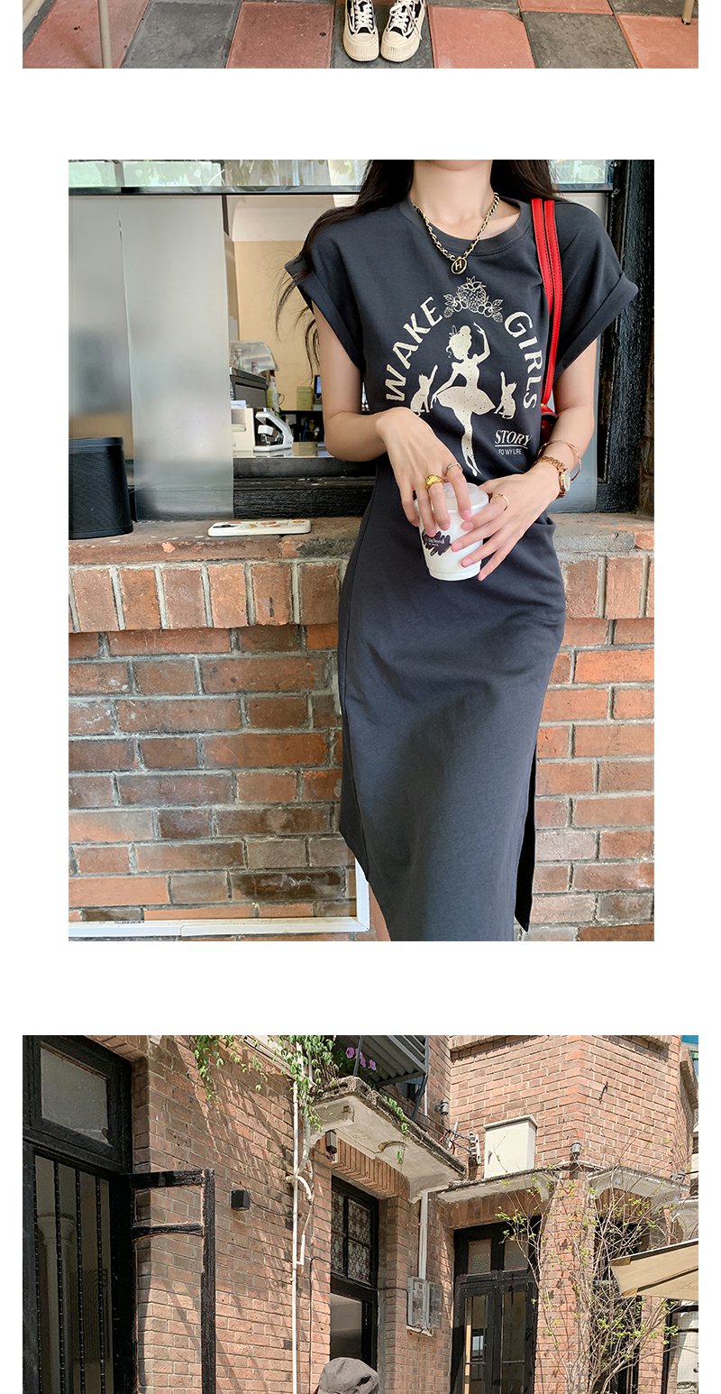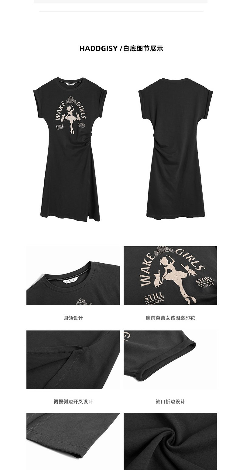 连衣裙2023新款女韩系别致小众设计感印花包臀短袖t恤长裙