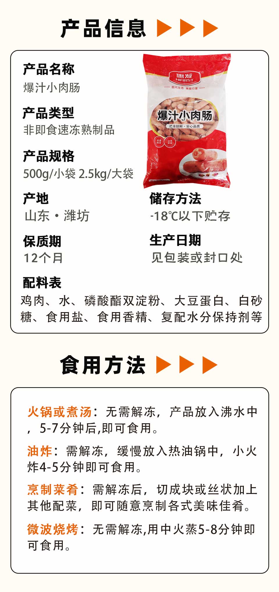 25B惠发爆汁小肉肠 500g/小袋 2.5kg/大袋 4袋/件