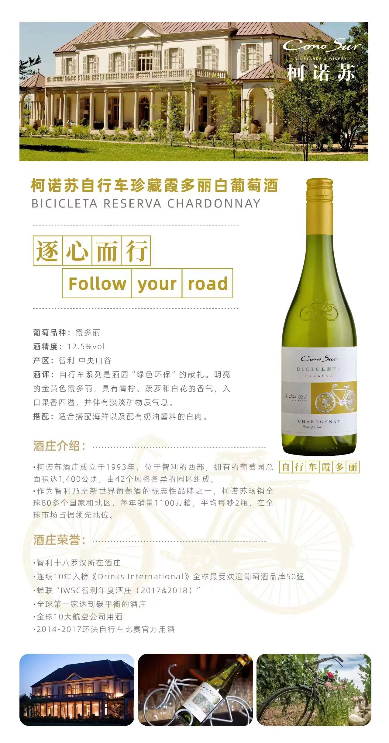 柯诺苏自行车珍藏霞多丽白葡萄酒750ml*6 【臻选好酒】