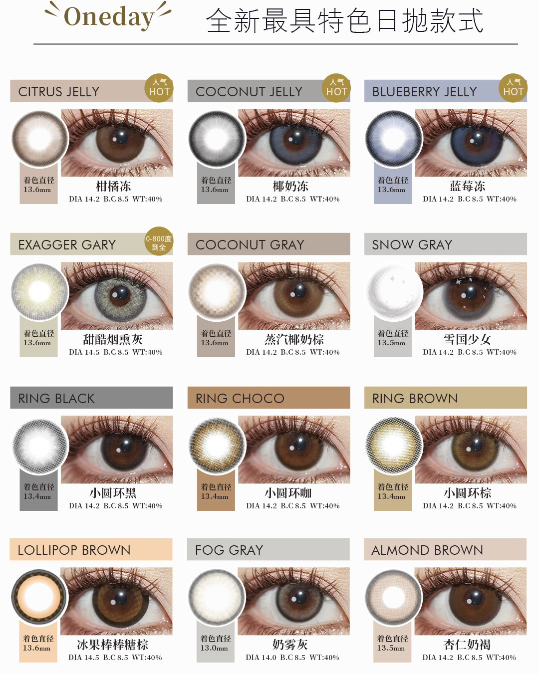 年抛是进口 品牌:Lilies Look日抛是国产 品牌:E-lensstyle