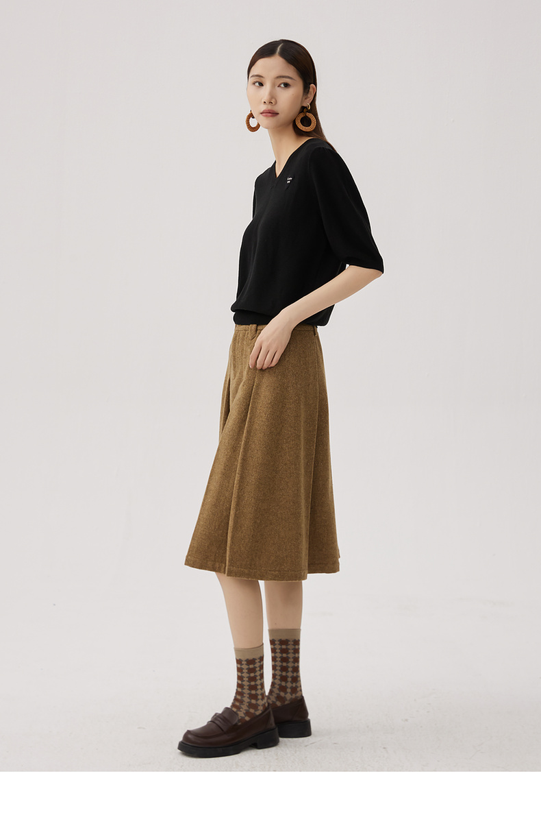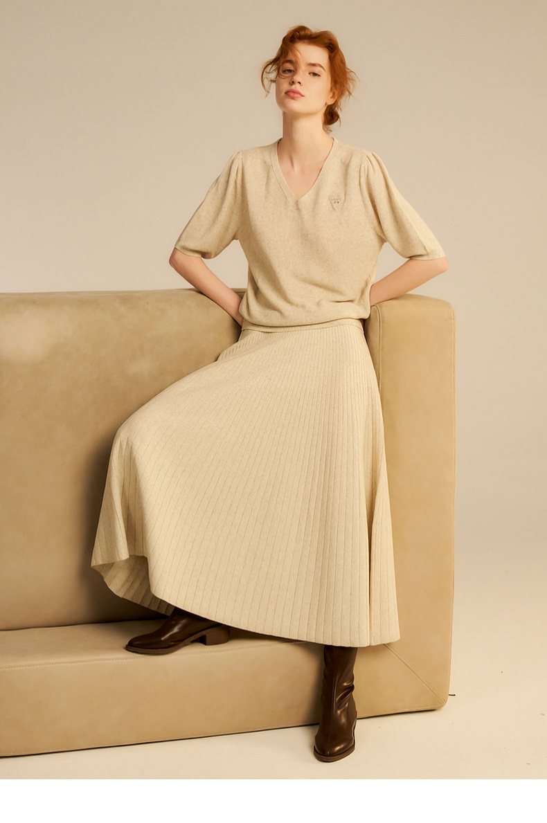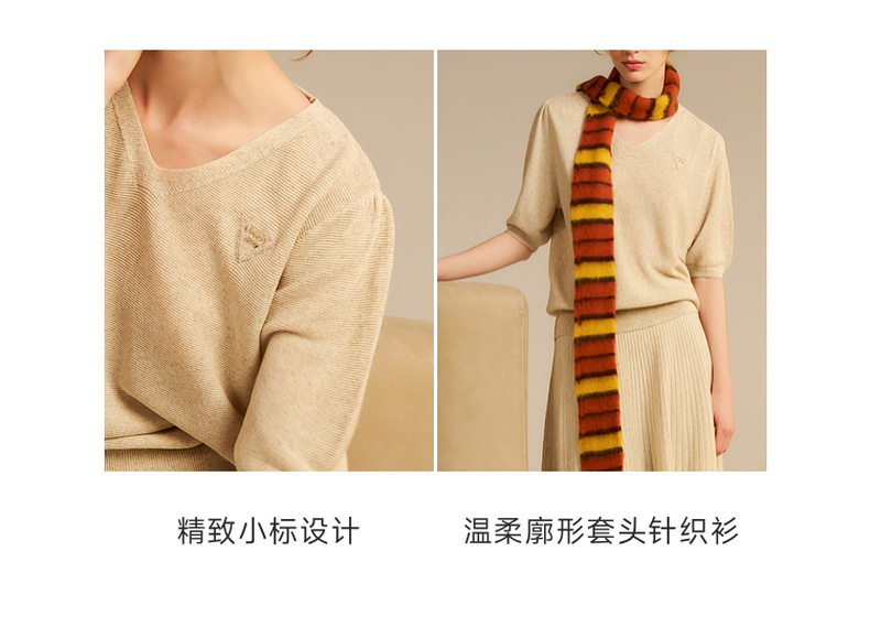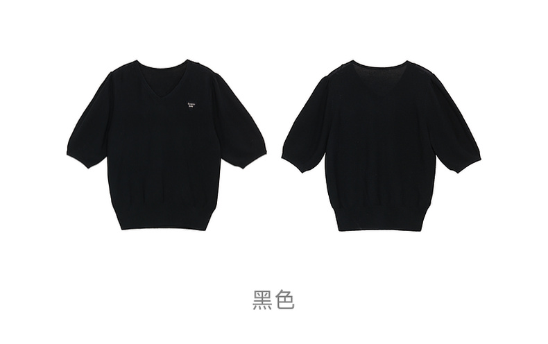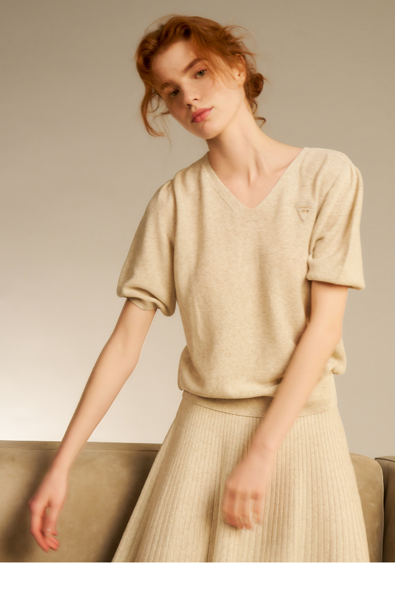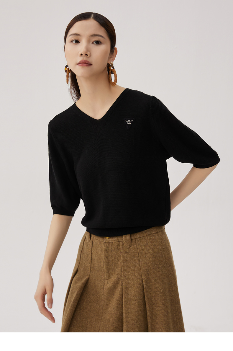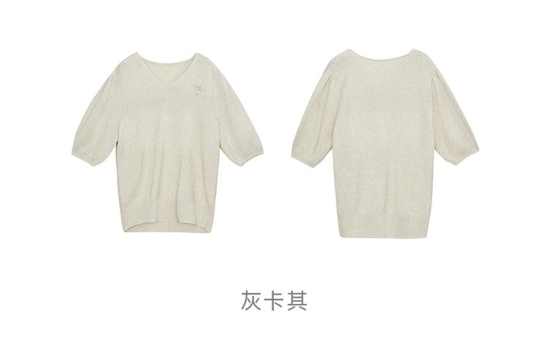 谜底V领套头针织衫短袖女2024秋新品极简风宽松亲肤上衣243MZ1266