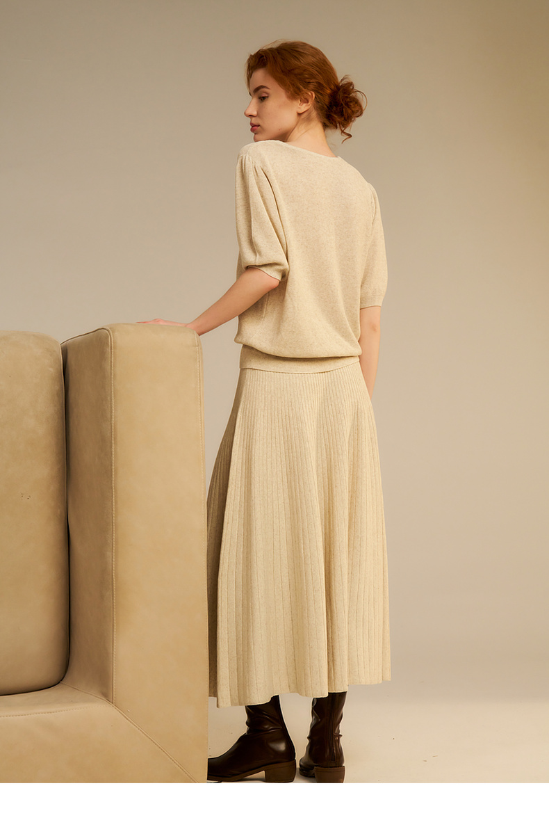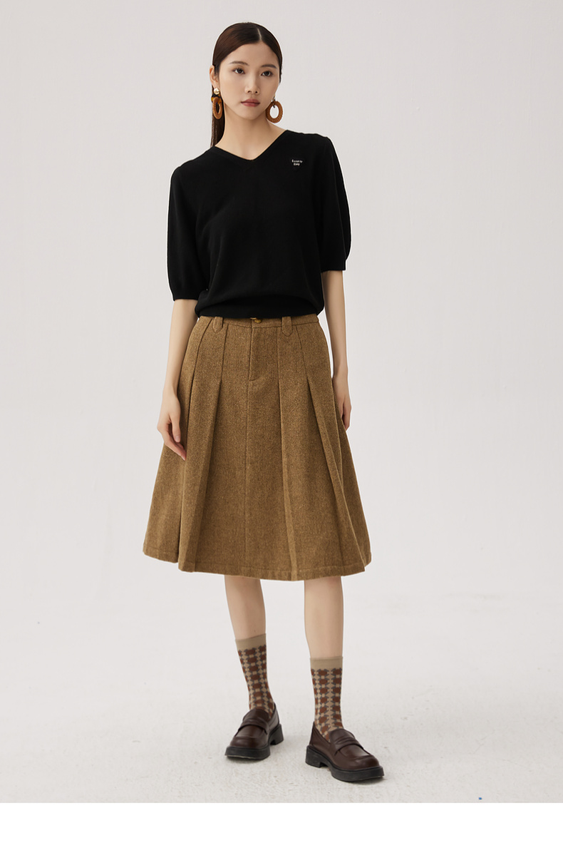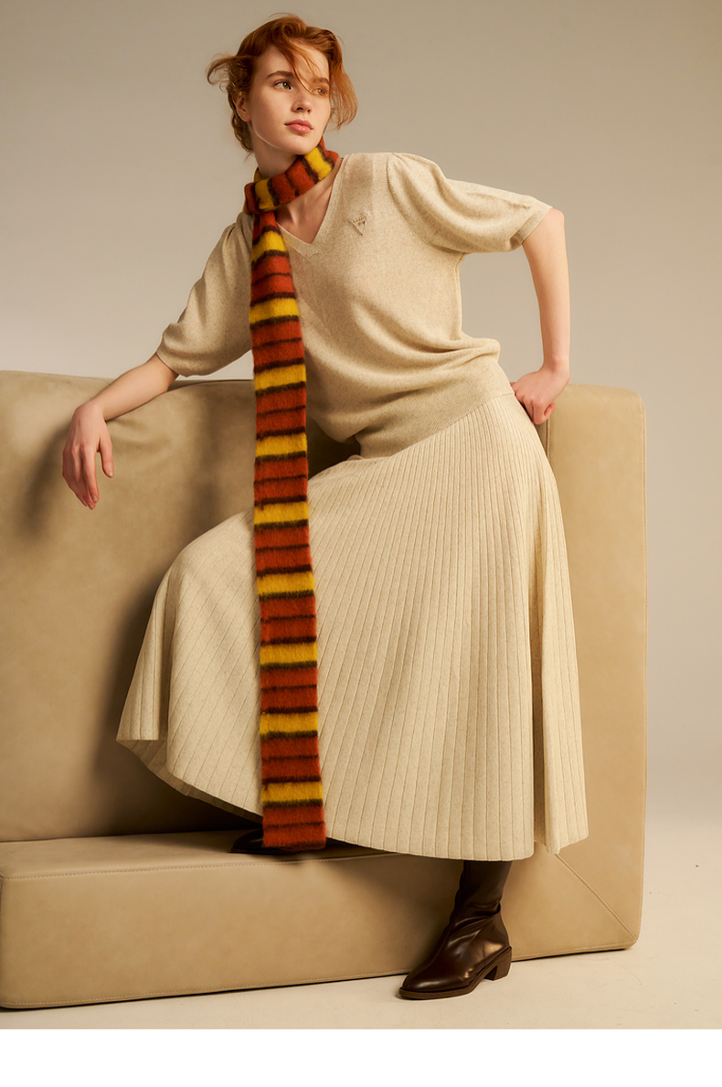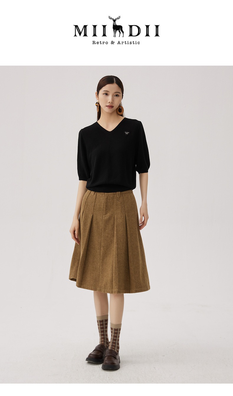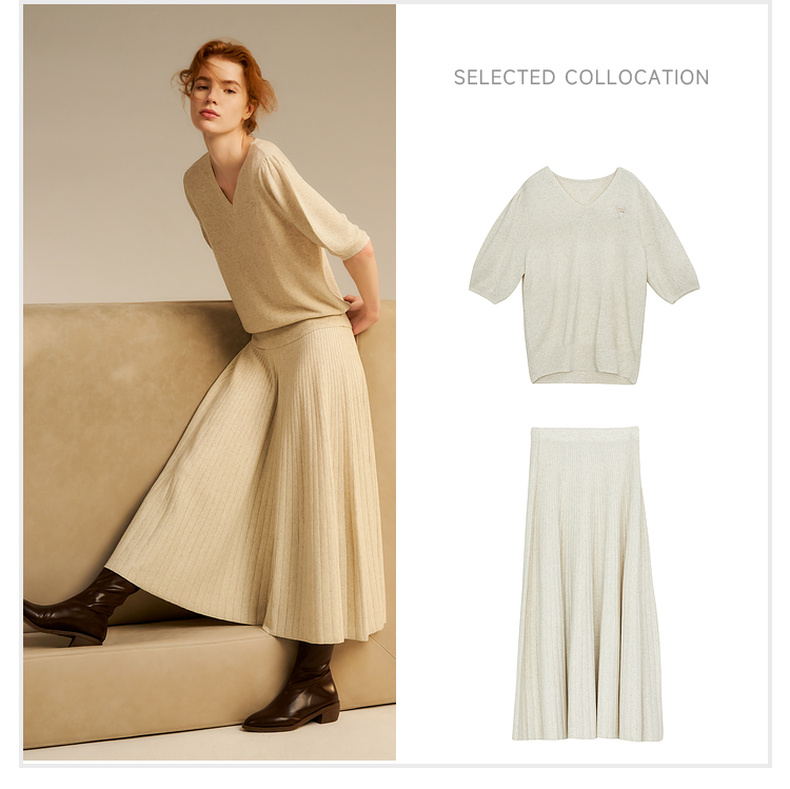 谜底V领套头针织衫短袖女2024秋新品极简风宽松亲肤上衣243MZ1266