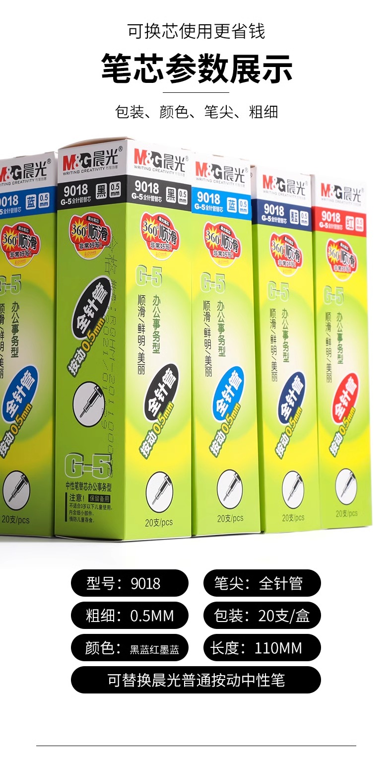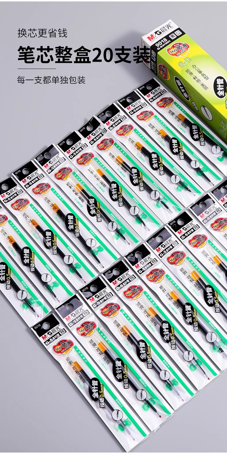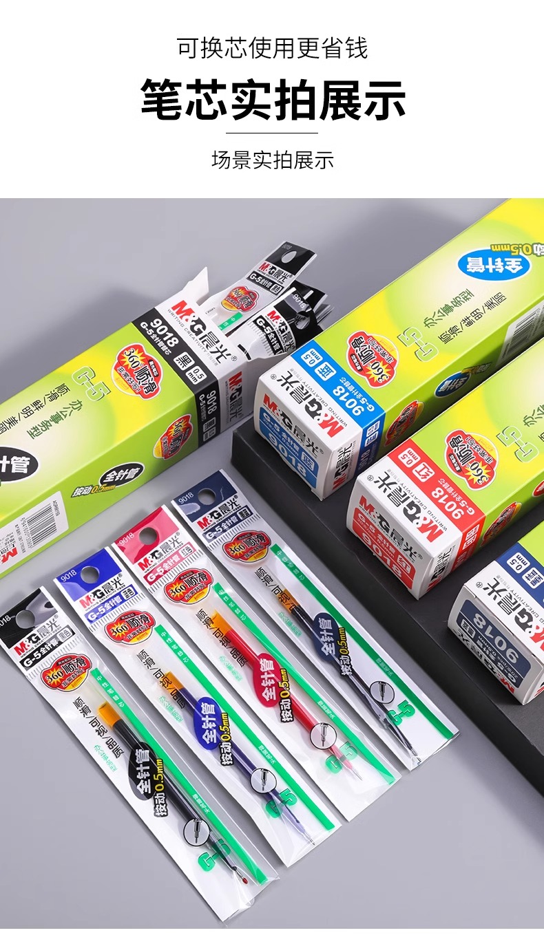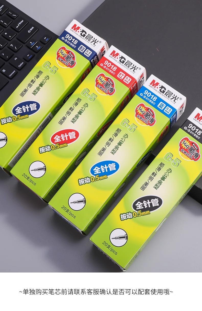 晨光 9018 G-5全针管黑0.5 经典替芯中性笔黑色/红色/蓝色/墨蓝 按 1PCS