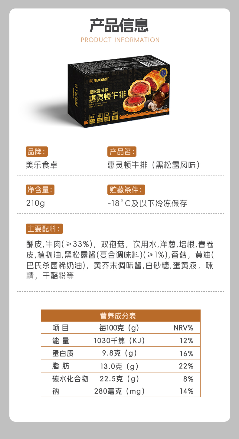 优选丨惠灵顿牛排(菲力黑松露风味) 210g/盒(美乐食卓)