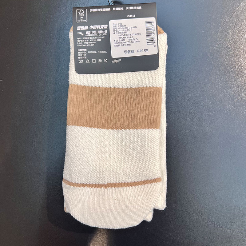 安踏篮球长袜毛圈专业篮球防护棉质透气舒适比赛高筒袜192431333