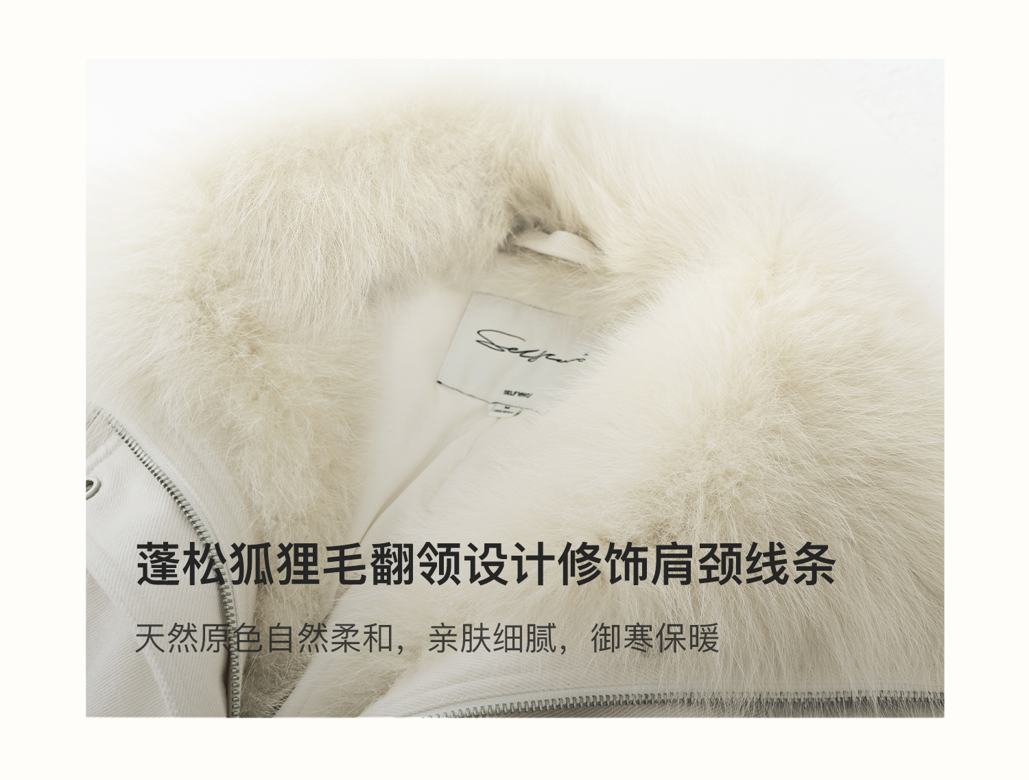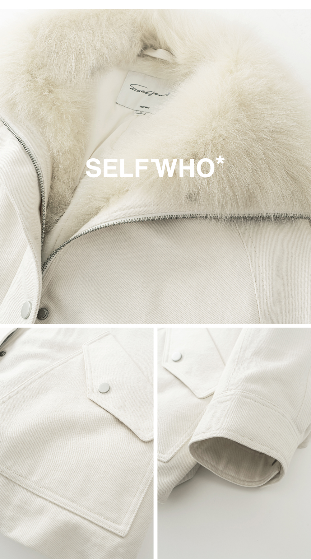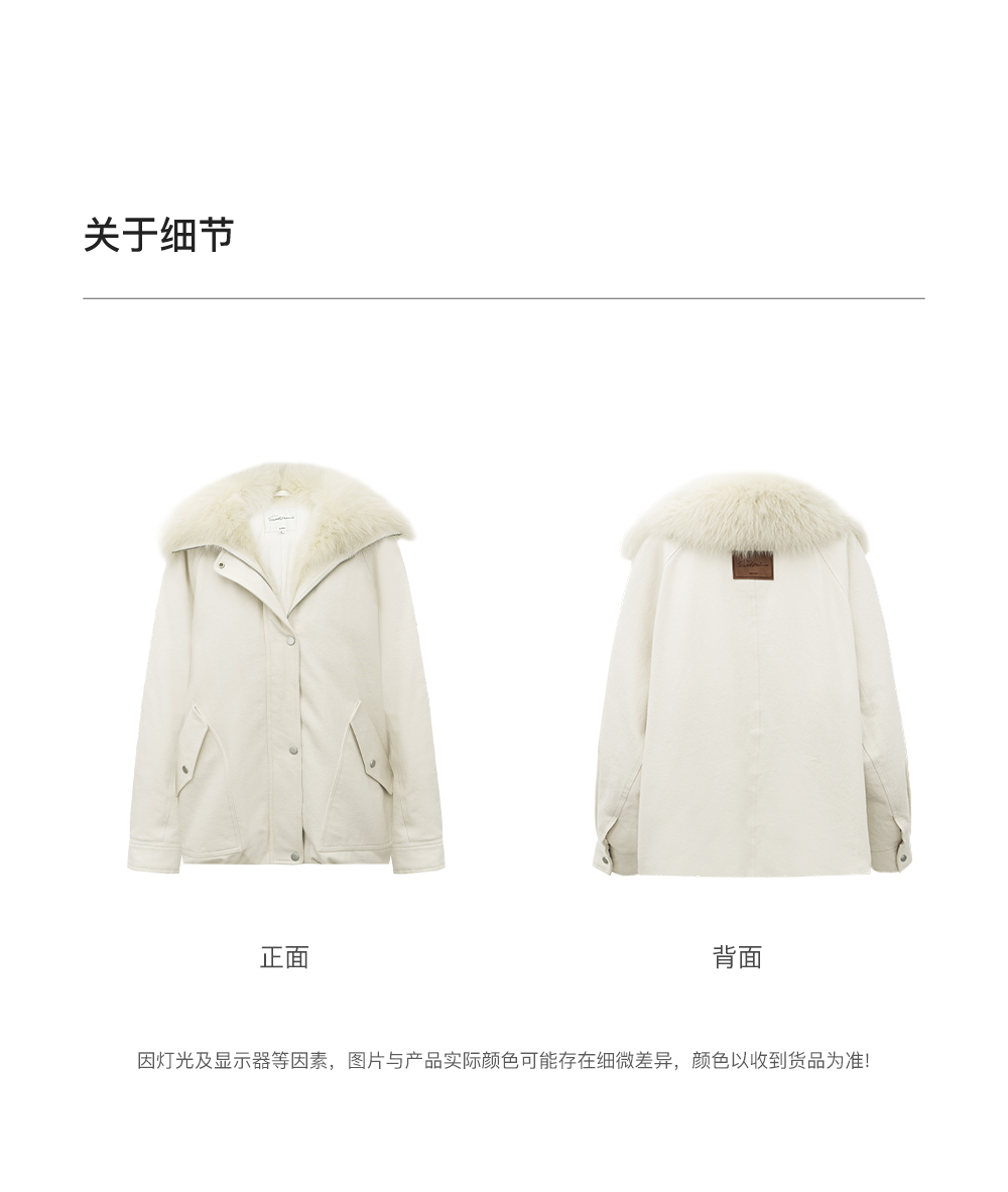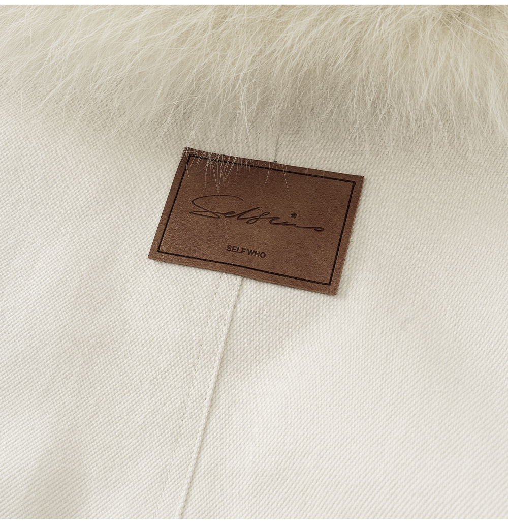 SELFWHO90白鸭绒狐狸毛翻领白色牛仔羽绒服女2025冬新款宽松外套
