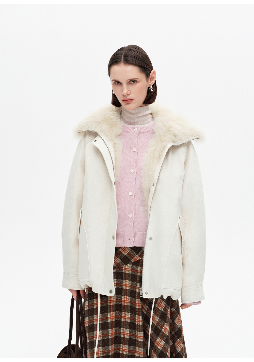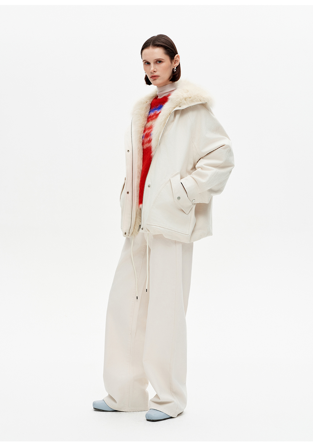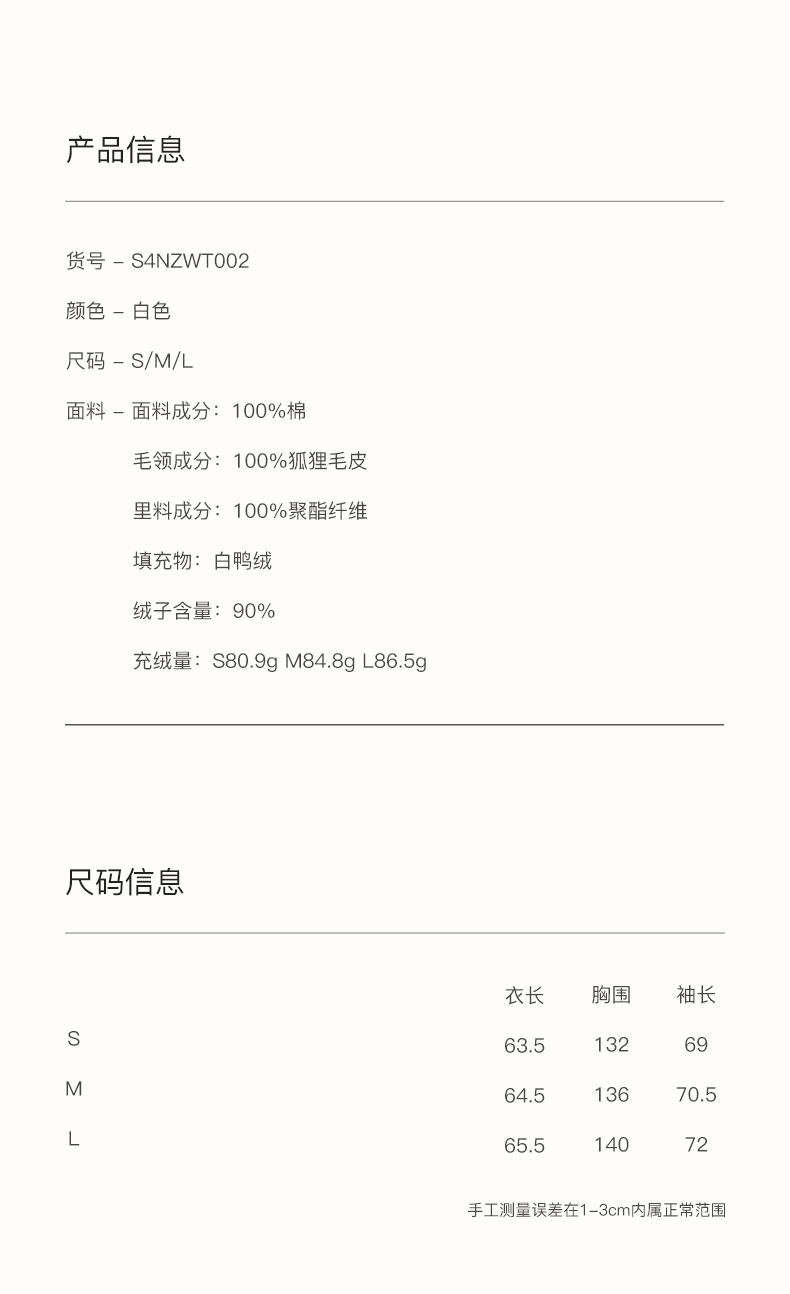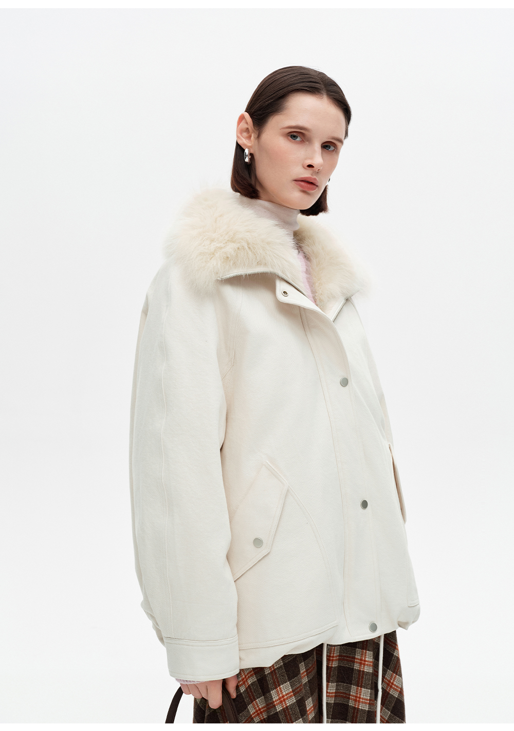 SELFWHO90白鸭绒狐狸毛翻领白色牛仔羽绒服女2025冬新款宽松外套